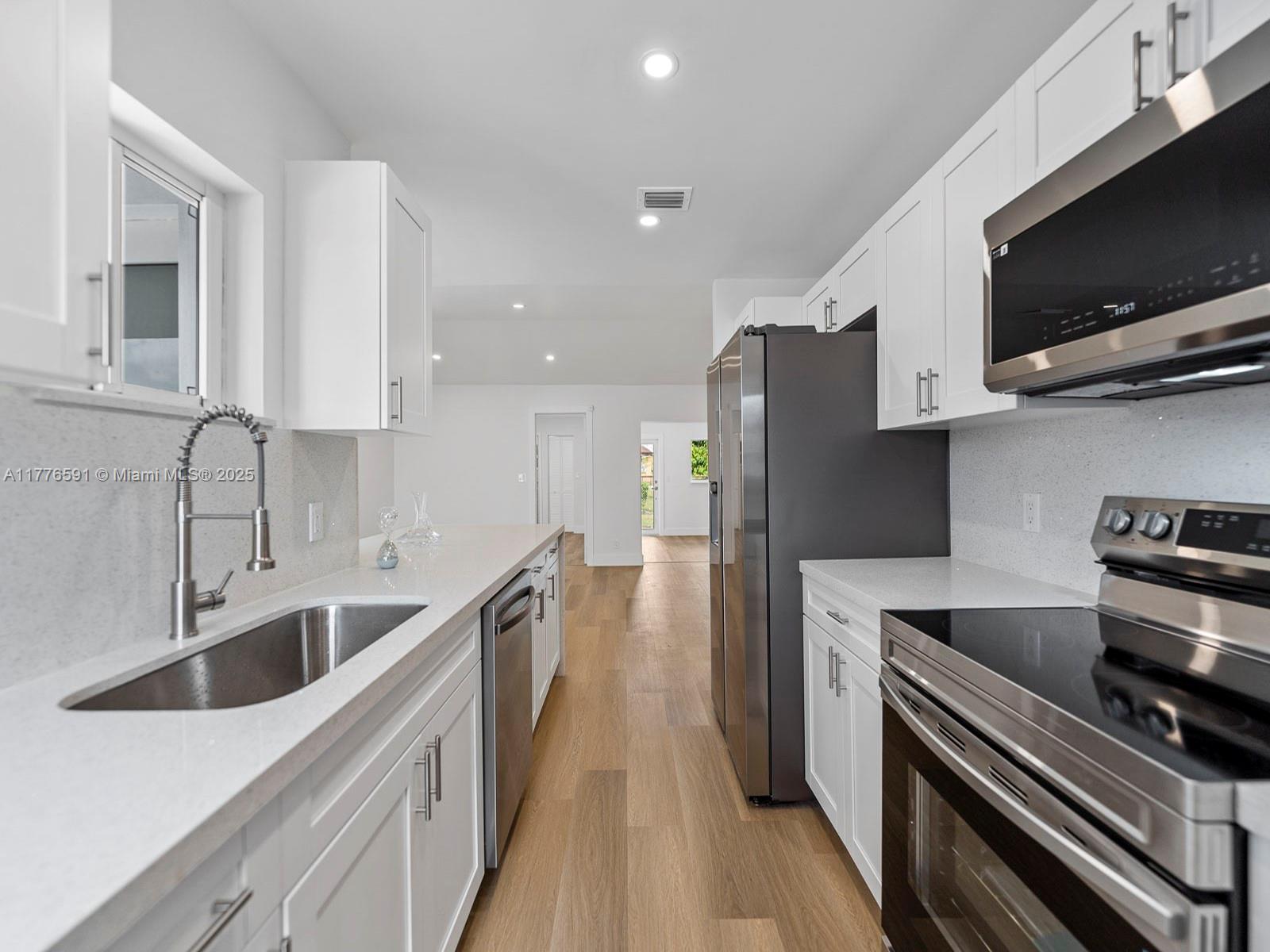Dream Home! Buyer financing fell through. Property has already appraised at $610,000 with FHA financing. Title is clear and ready to close, and the City’s Certificate of Re-Occupancy has been issued. This beautiful 4bed/3bath residence blends modern elegance with convenience. It features a brand-new roof, impact windows and doors, and ceiling lighting throughout. Enjoy a sleek, modern interior with smooth walls and ceilings, a fully updated kitchen with quartz countertops, and brand-new stainless steel appliances. Gorgeous flooring and two spacious primary suites, each with its own private bathroom. Large yard with space for a pool, room for a boat or RV, and a utility room. Tucked away on a cul-de-sac, just minutes from major highways, Hard Rock Stadium, shopping, dining, and beaches.
