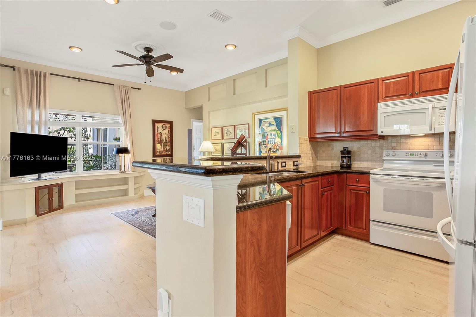 This well-maintained home in the highly desirable community of The Meadows in Weston, FL, offers a warm, inviting atmosphere with an open-concept design that blends living spaces seamlessly. The home features beautiful laminate floors, updated bathrooms, and granite countertops. The extended patio with a stunning pergola provides a perfect space for indoor-outdoor living, ideal for both entertaining and relaxing while enjoying the peaceful and private lake view. The landscaped yard complements the scenic surroundings. The community boasts amenities such as a pool, playground, and sports court. The Meadows is a 24-hour gated community, located off Glades Parkway, directly across from Gator Run Elementary School. Don't miss the chance to make this exceptional property your new home!
