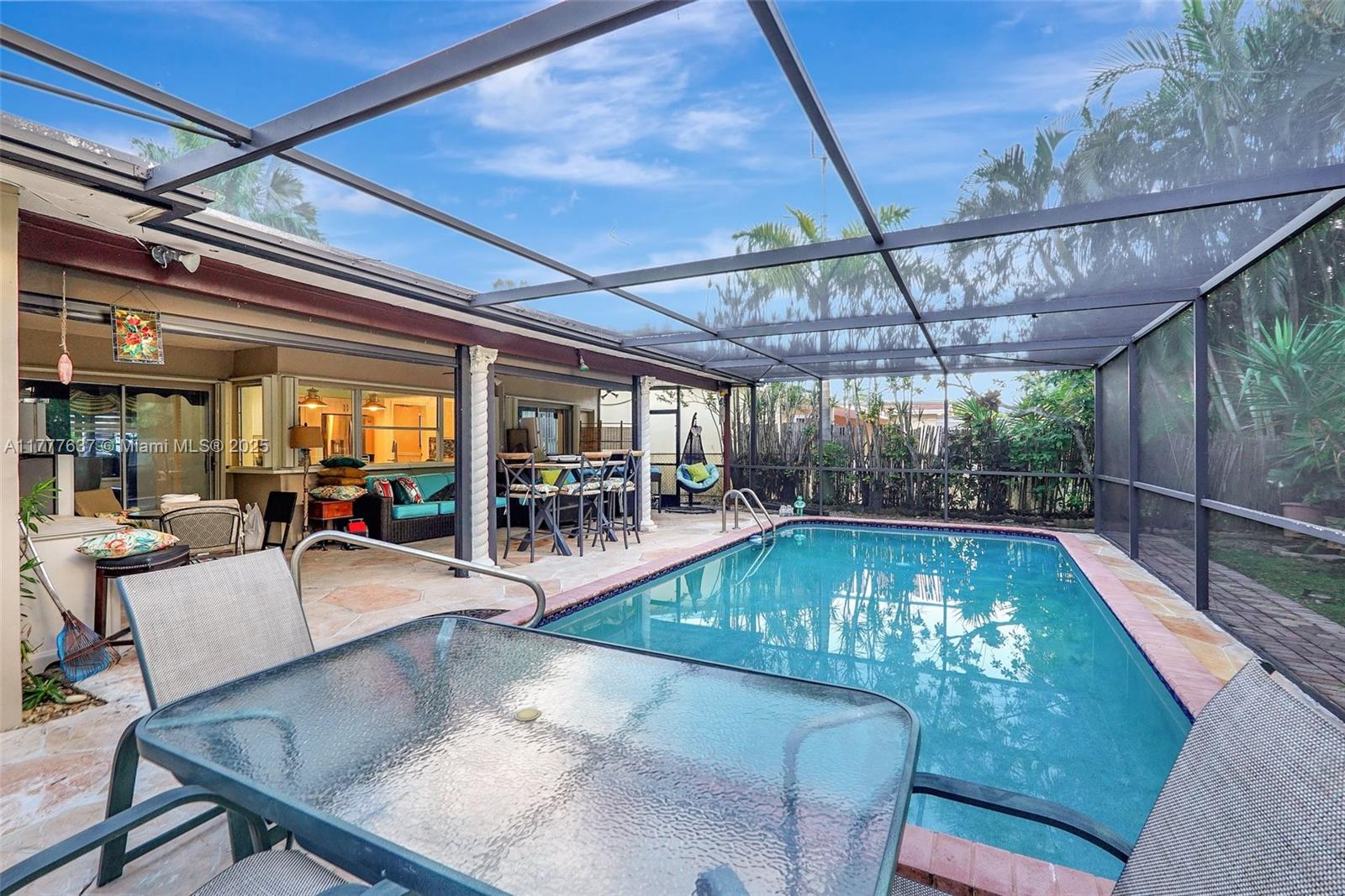 First time on market! This 3-bed, 2-bath home in Miramar offers 1,696 sq. ft. of living space, perfect for relaxation with serene pool views from multiple rooms. Enjoy an open layout, renovated kitchen and baths (5 years), gas stove, and new hurricane impact windows/doors (3 years). Features include a new electrical system, security system, screened patio with overhead fan and motorized hurricane-proof awning, and new pool enclosure. Conveniently located near Shirley Brancha Park, community pool, Miramar Civic Center, shopping, and more. Just 5-7 miles from Calder Casino, Hard Rock Stadium, and Hotel. Roof replaced in 2019. Move-in ready! A perfect blend of tranquility and accessibility. PRICED TO SELL |CHECH OUR OPEN HOUSE SAT 5-7 & SUN 2-4.