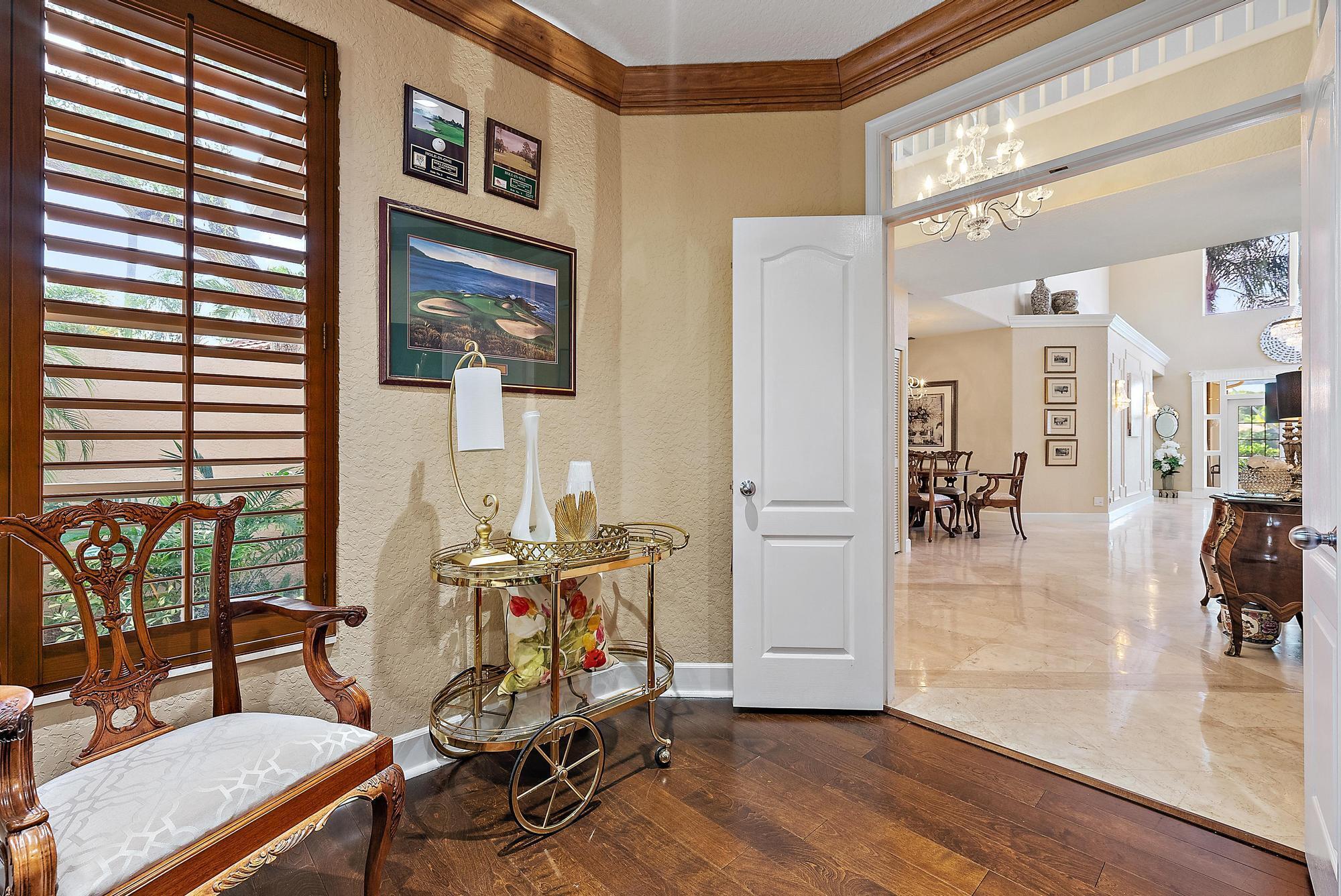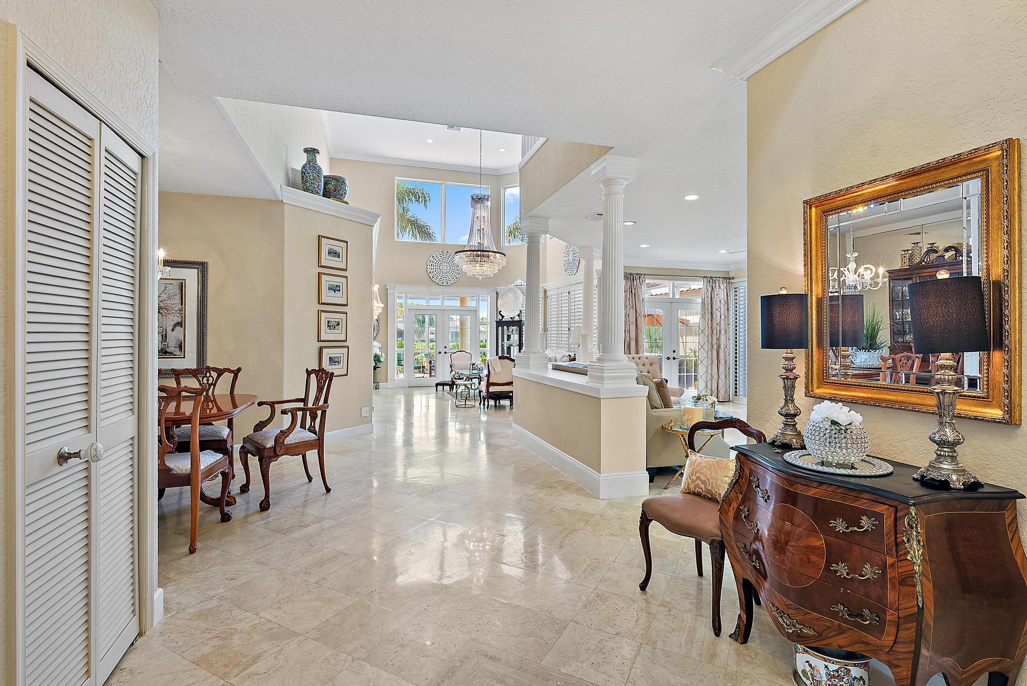 IMMEDIATE PREMIER GOLF MEMBERSHIP AVAILABLE WITH THE PURCHASE OF THIS HOME. Renovations and upgrades throughout this beautifully positioned 3BR/4BA+Den+Loft Ecclestone Signature Home located on the second fairway of the BRAND NEW, Nicklaus-designed Heritage Course. Boasting a NEW ROOF (December, 2023), and complete hurricane protection (Impact Glass + Accordian Shutters), this home is move-in perfect. Located in the epicenter of Ibis with a desirable southern exposure in the rear. Architectural grandeur, soaring ceilings, marble flooring throughout the main living areas and extensive moldings characterize this classic and timeless home. The kitchen was renovated in 2020 and features upgraded appliances, including a 1-year-old microwave, and fridge. The dishwasher is two years old.