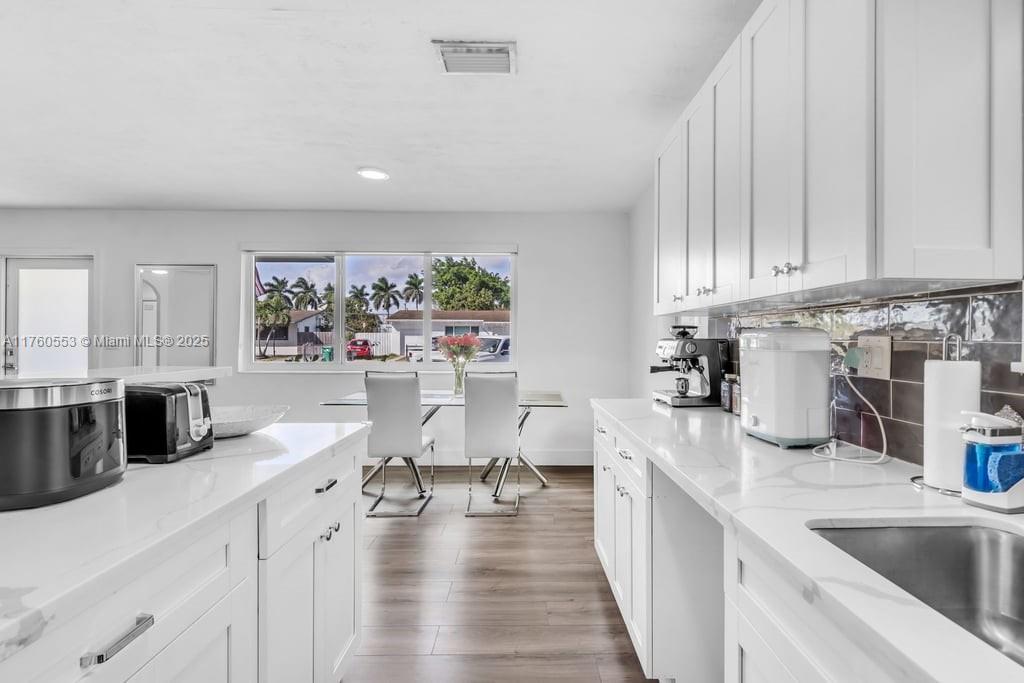 Discover this elegantly upgraded 4-bedroom, 2-bath home with no HOA! Remodeled in 2020, it features a modern kitchen with sleek appliances, stunning white marble countertops, and stylish finishes. The master bedroom boasts an en-suite bath for added privacy and comfort. Enjoy the convenience of a full-size washer and dryer. Step outside to a generous backyard with a charming terrace, perfect for entertaining and gatherings, with plenty of room for a pool. Located near schools, shopping, and major highways, this home is a rare find. Don’t miss out on this incredible opportunity—schedule your showing today!
