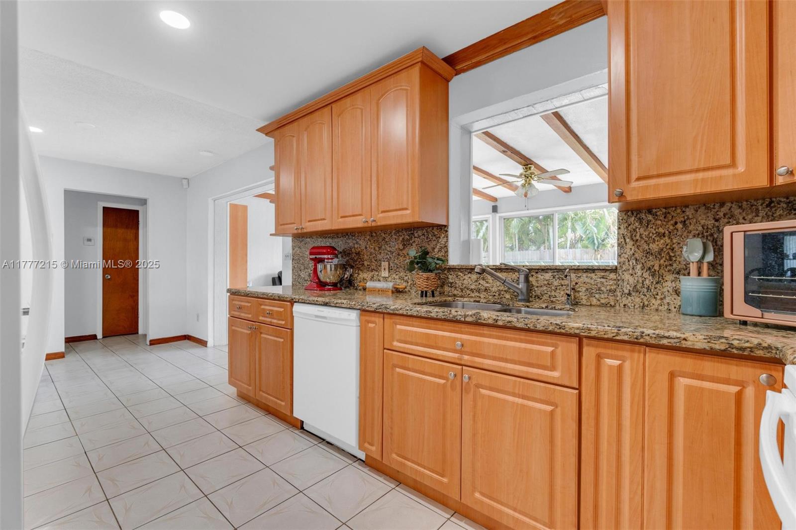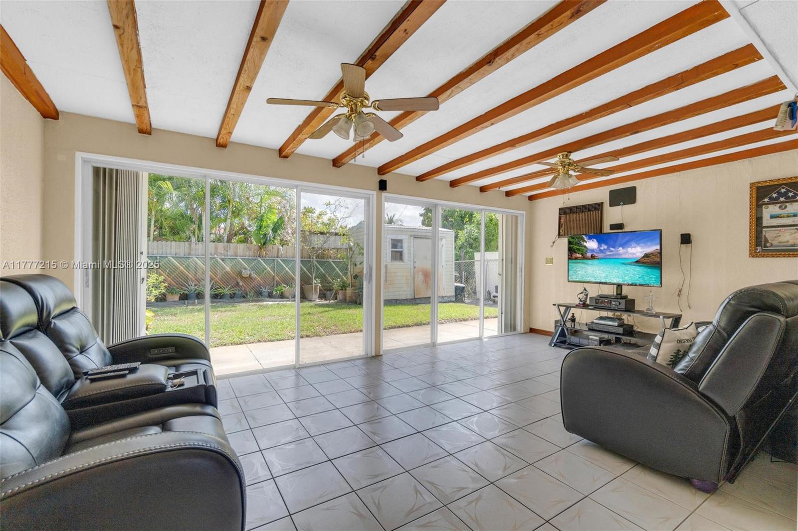 Beautiful Corner-Lot Gem in the Heart of Miramar! This spacious 3/2 home features a Lg family room w/exposed wood beam ceilings & a versatile flex room w/closet—perfect as a 4th bdrm, office, or craft room. The kitchen is a chef’s delight w/granite counter, newer appliances & recess lighting. Enjoy peace of mind with a recently replaced roof, impact windows, & upgraded front & side doors. The exterior has also been re-stuccoed. The property is situated on a fenced corner lot, w/storage shed, sprinkler system & ample space for an RV/boat. In addition, The neighborhood has just completed the installation of underground electricity. This move-in-ready home has it all!