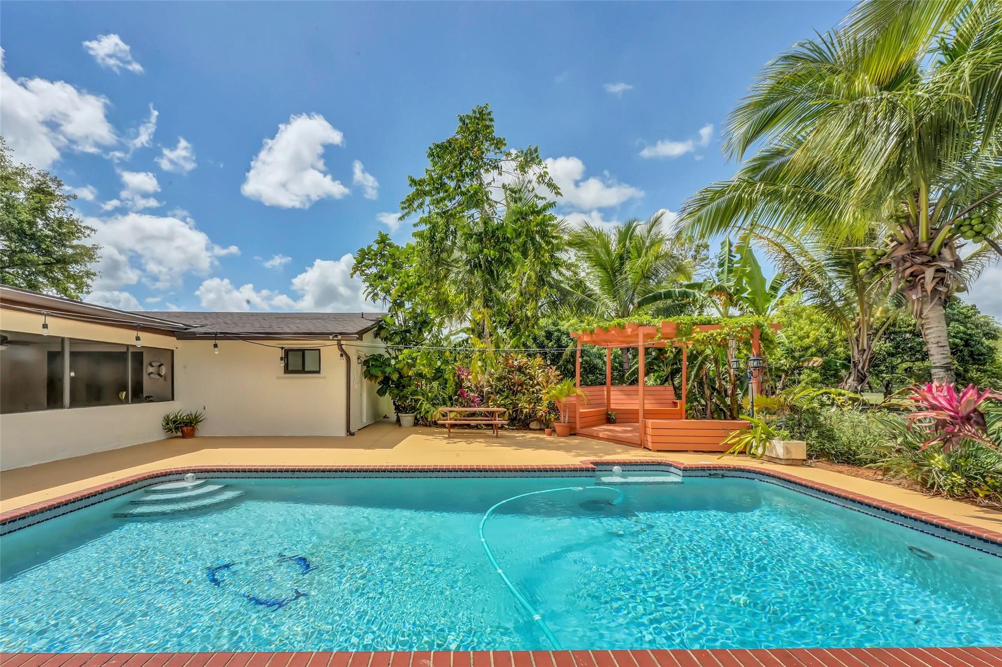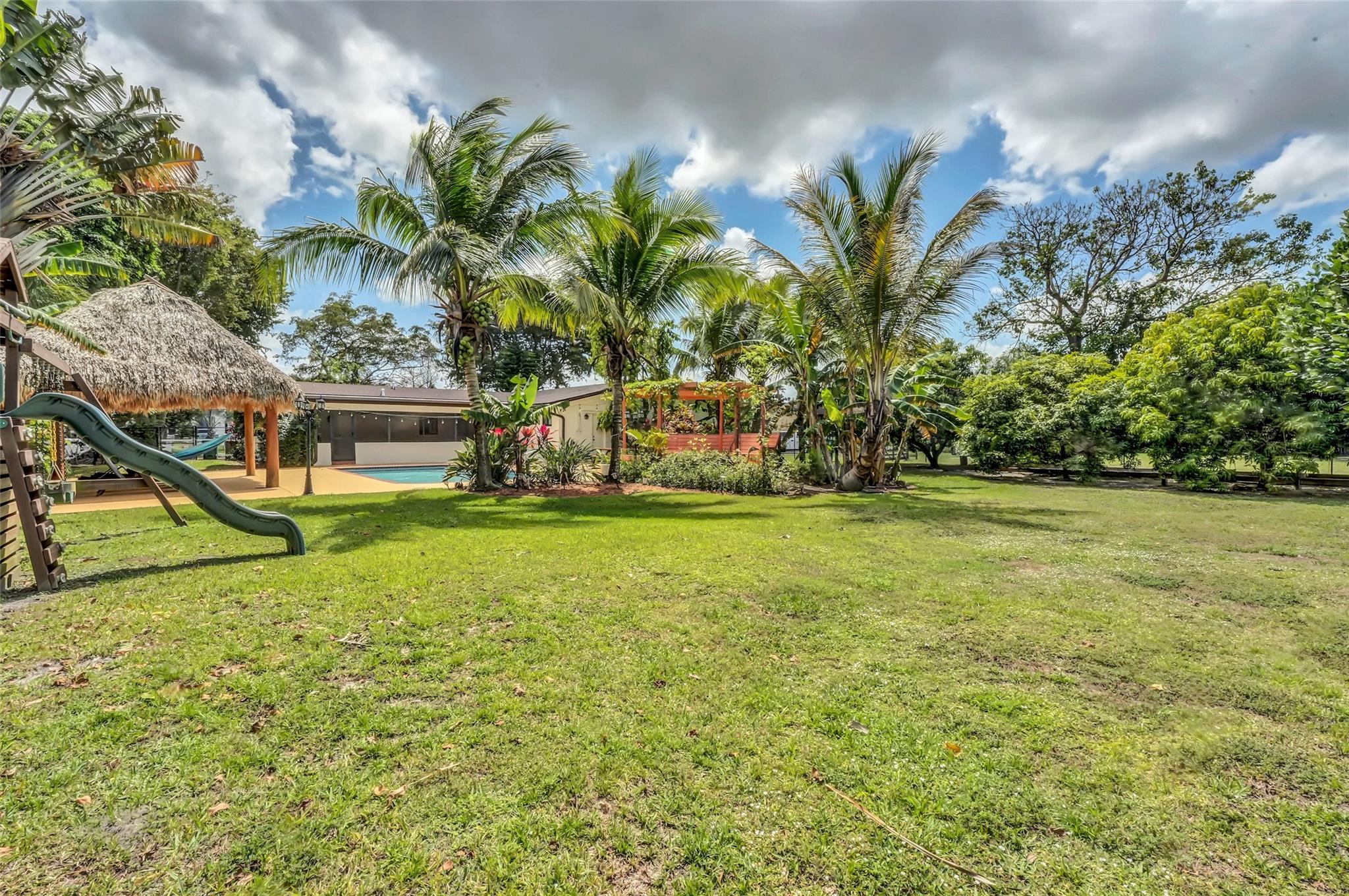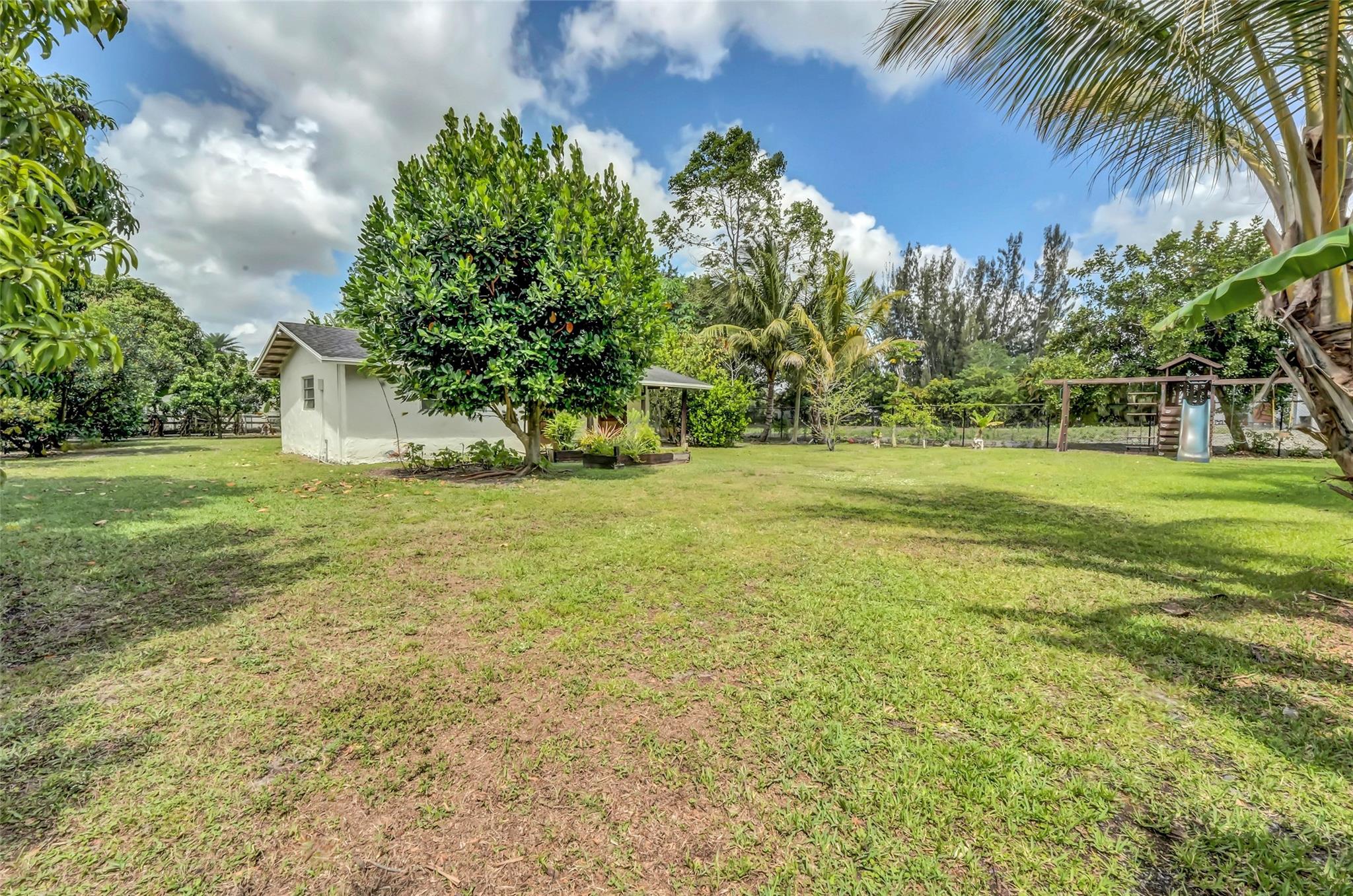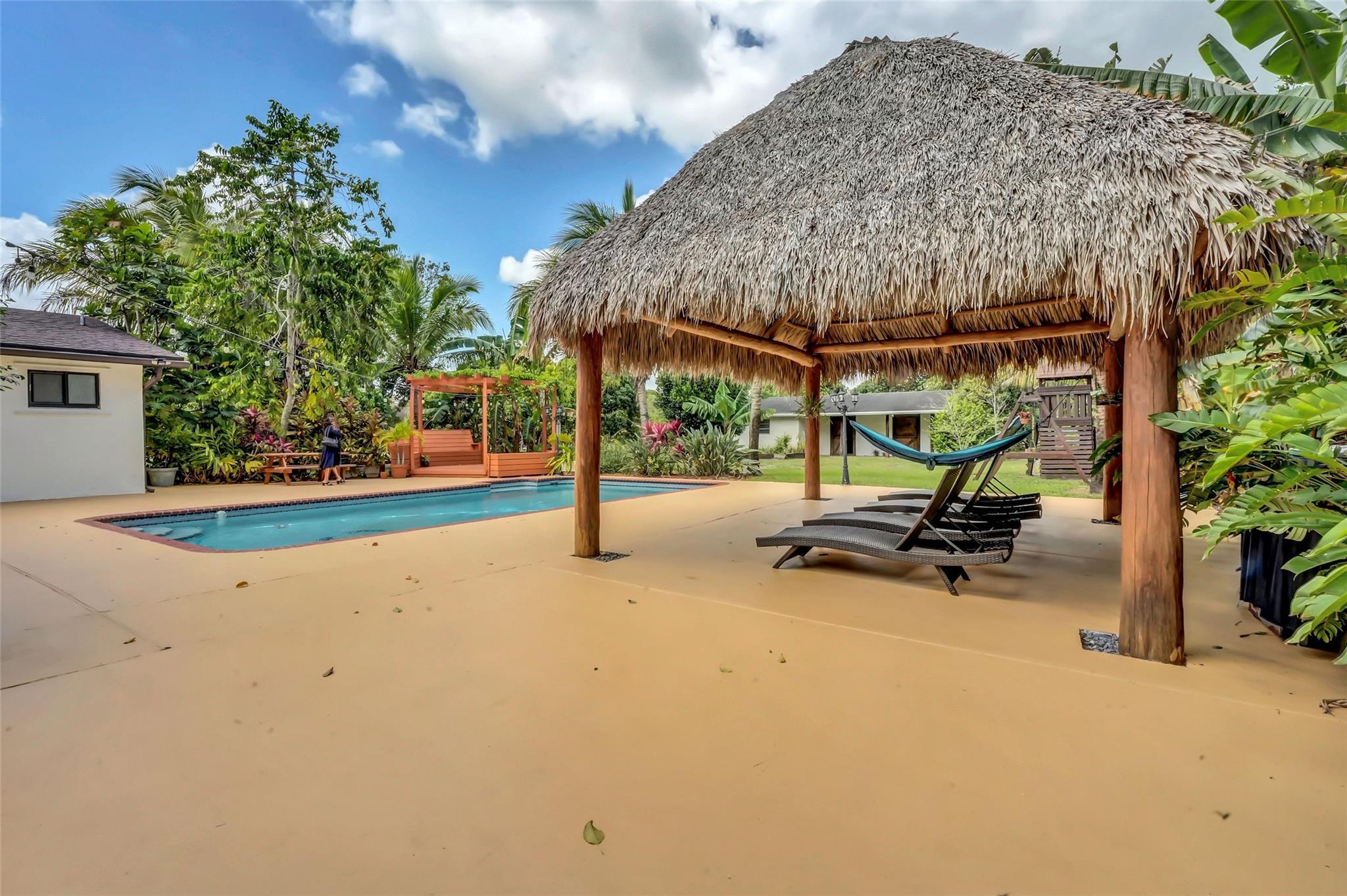 Welcome to Your Private Oasis in a Premier Equestrian Community. Impeccably maintained estate, tucked away in a serene community surrounded by lush exotic and rare fruit trees, herbs, and spices sourced worldwide. Offers peace and privacy with no HOA. Spacious,updated main house features a NEW roof, NEW deck, NEW appliances, central A/C, luxuriously renovated bathrooms and kitchen, marble flooring, and impact windows and doors. A customizable barn keep it as-is for equestrian use or explore converting it to suit your personal vision. Step into your resort-style backyard, complete with pool, patio, and a new tiki hut, new pergola, new bocce ball court, and new gate and fencing surrounding the entire property. This retreat is a rare gem. One-of-a-kind haven near Fort Lauderdale and Miami.