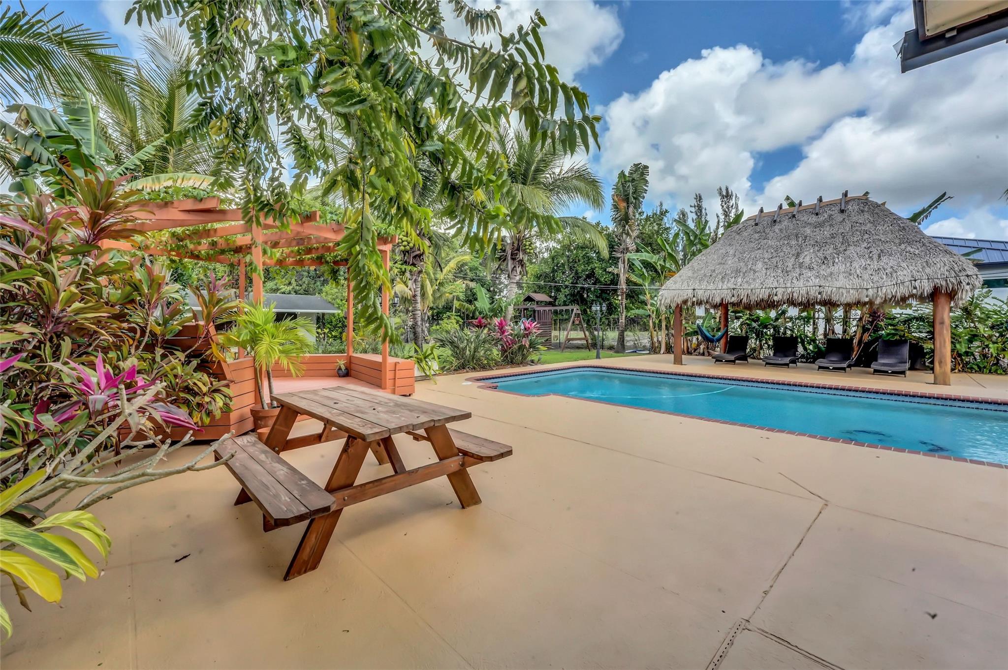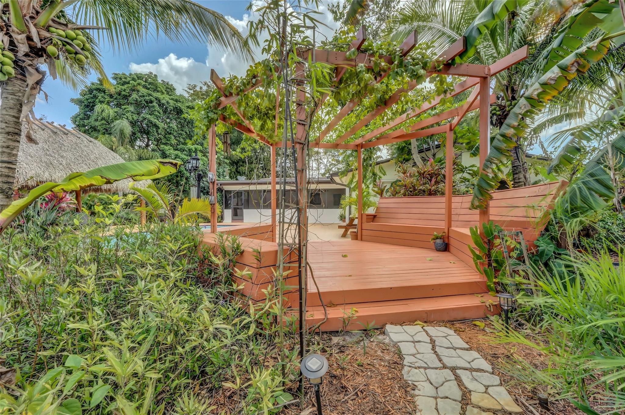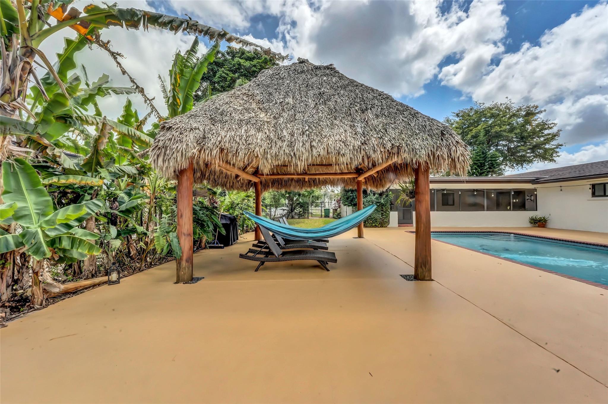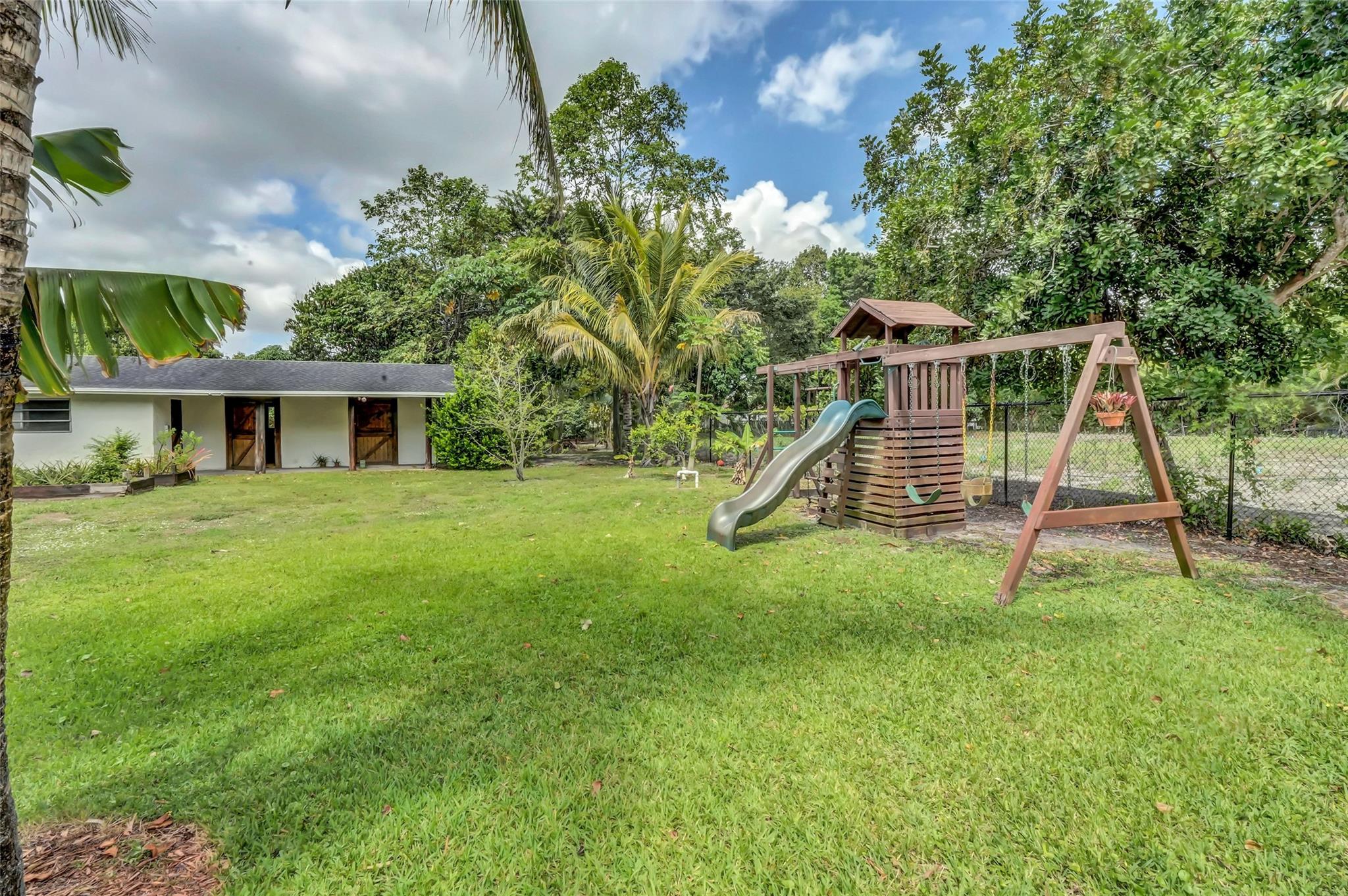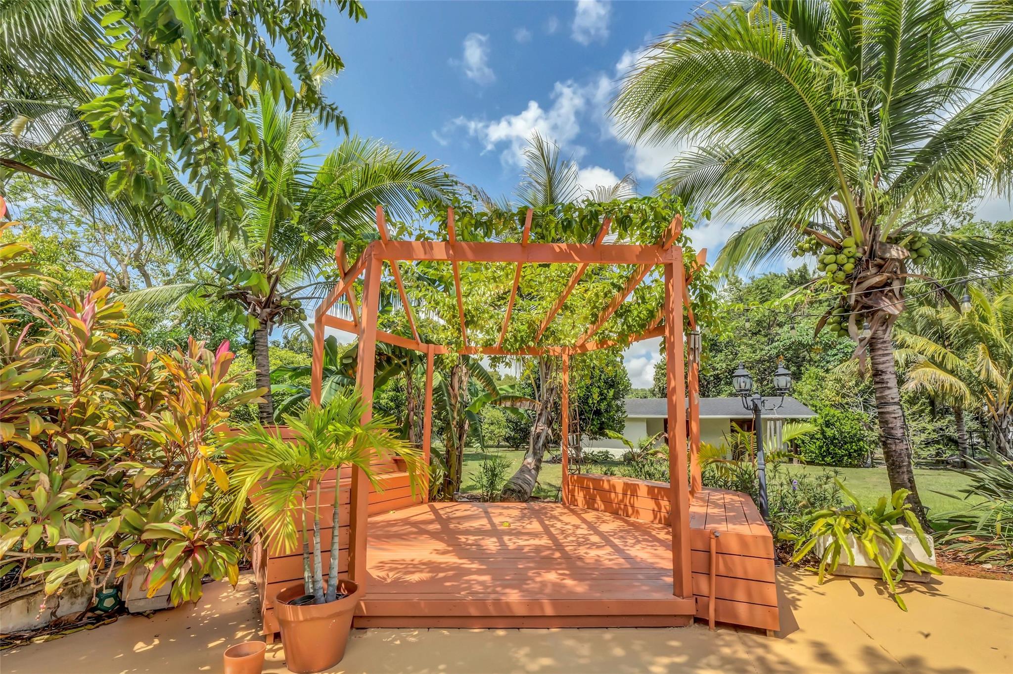 Welcome to Your Private Oasis in a Premier Equestrian Community. Impeccably maintained estate, tucked away in a serene community surrounded by lush exotic and rare fruit trees, herbs, and spices sourced worldwide. Offers peace and privacy with no HOA. Spacious,updated main house features a NEW roof, NEW deck, NEW appliances, central A/C, luxuriously renovated bathrooms and kitchen, marble flooring, and impact windows and doors. A customizable barn keep it as-is for equestrian use or explore converting it to suit your personal vision. Step into your resort-style backyard, complete with pool, patio, and a new tiki hut, new pergola, new bocce ball court, and new gate and fencing surrounding the entire property. This retreat is a rare gem. One-of-a-kind haven near Fort Lauderdale and Miami.