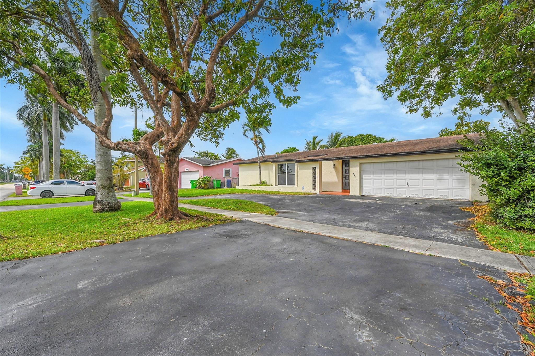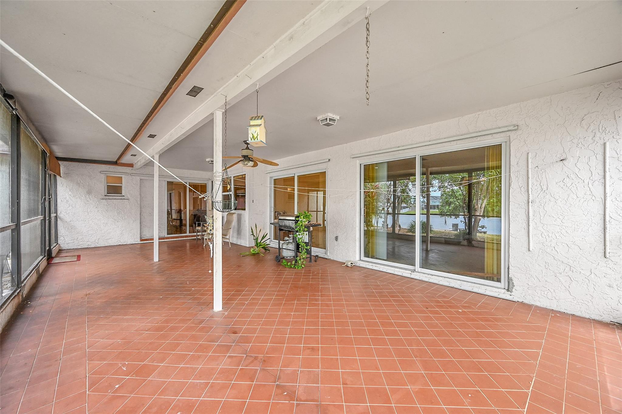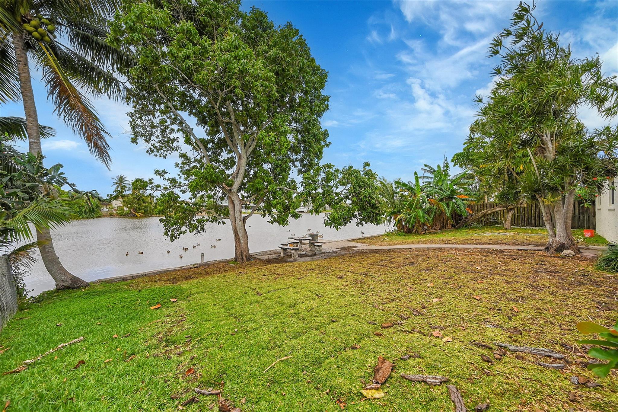 Gorgeous water view from this 3 Bedroom/ 2 Bathroom house with 2-car garage on the wide canal in Sunrise Golf Village. No HOA! Kitchen has Granite countertops, wood cabinetry, and a gas range. Neutral tile flooring throughout with carpet in the master bedroom. Gas water heater. Central AC 2021. New sprinkler pump which is fed off the canal. Split bedroom plan. Combination of hurricane panels and a few Impact windows. Huge screened in back patio with insulated roof and gutters. Circle driveway. Big back yard with plenty of room for a pool.