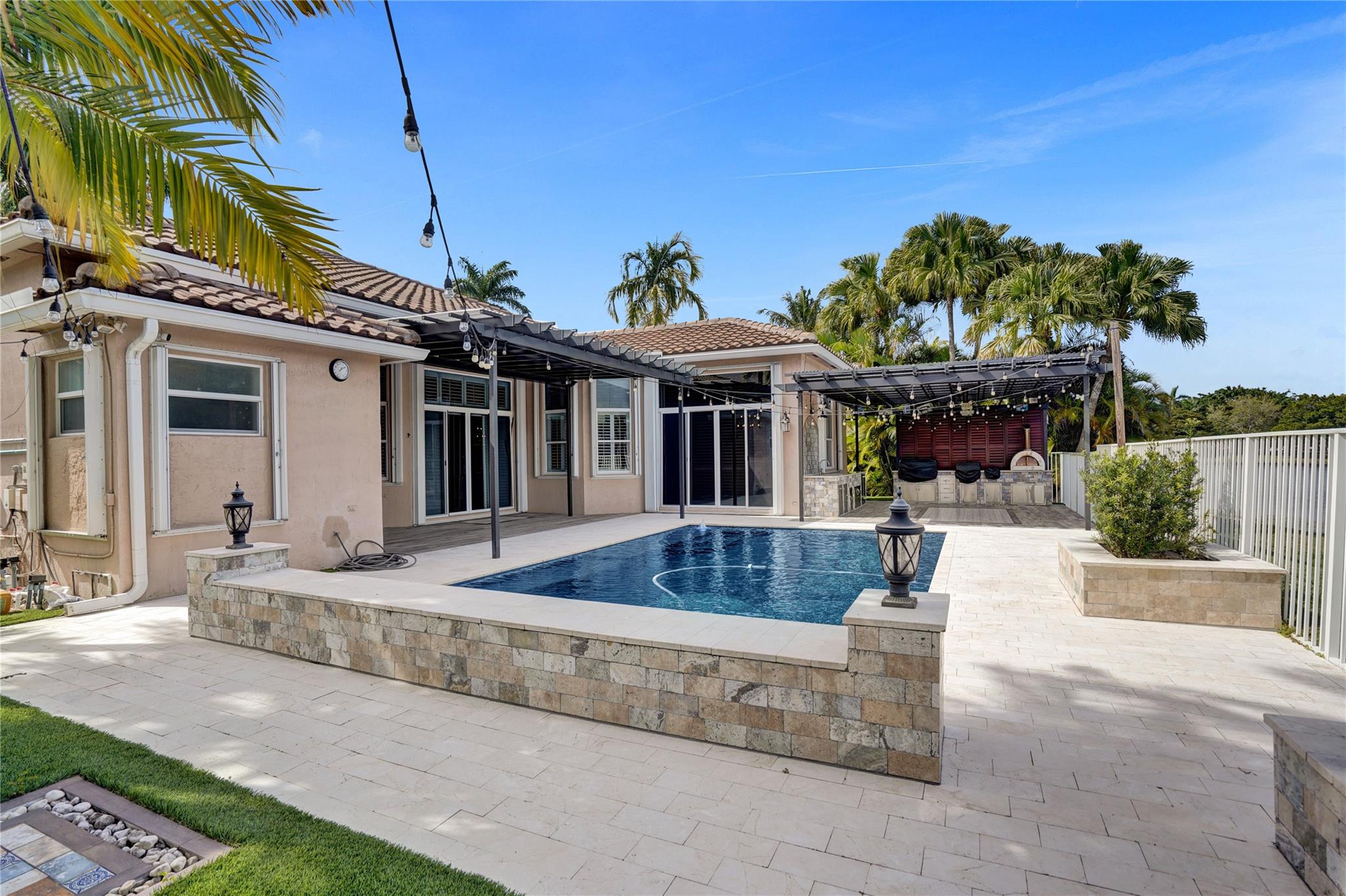 Located in the most sought-after Weston Hills Country Club. Updated, upgraded Farmhouse Style elegance, boasting newer roof, High impact windows in the front and front door. Open, bright and airy floor plan with seamless integration of living, dining and kitchen areas. The upgraded kitchen, a dream for culinary enthusiasts, equipped with high end appliances and ample counter space. 4 bedrooms offering the flexibility of converting additional space into a 5th bedroom or an office, catering to those in need of an office or creative space. Updated bathrooms throughout ensure a spa-like experience right at home. Step outside to the highlight of the property: a breathtaking modern pool and a gourmet outdoor kitchen, relaxing lake views creating an ideal oasis for relaxation and entertainment.