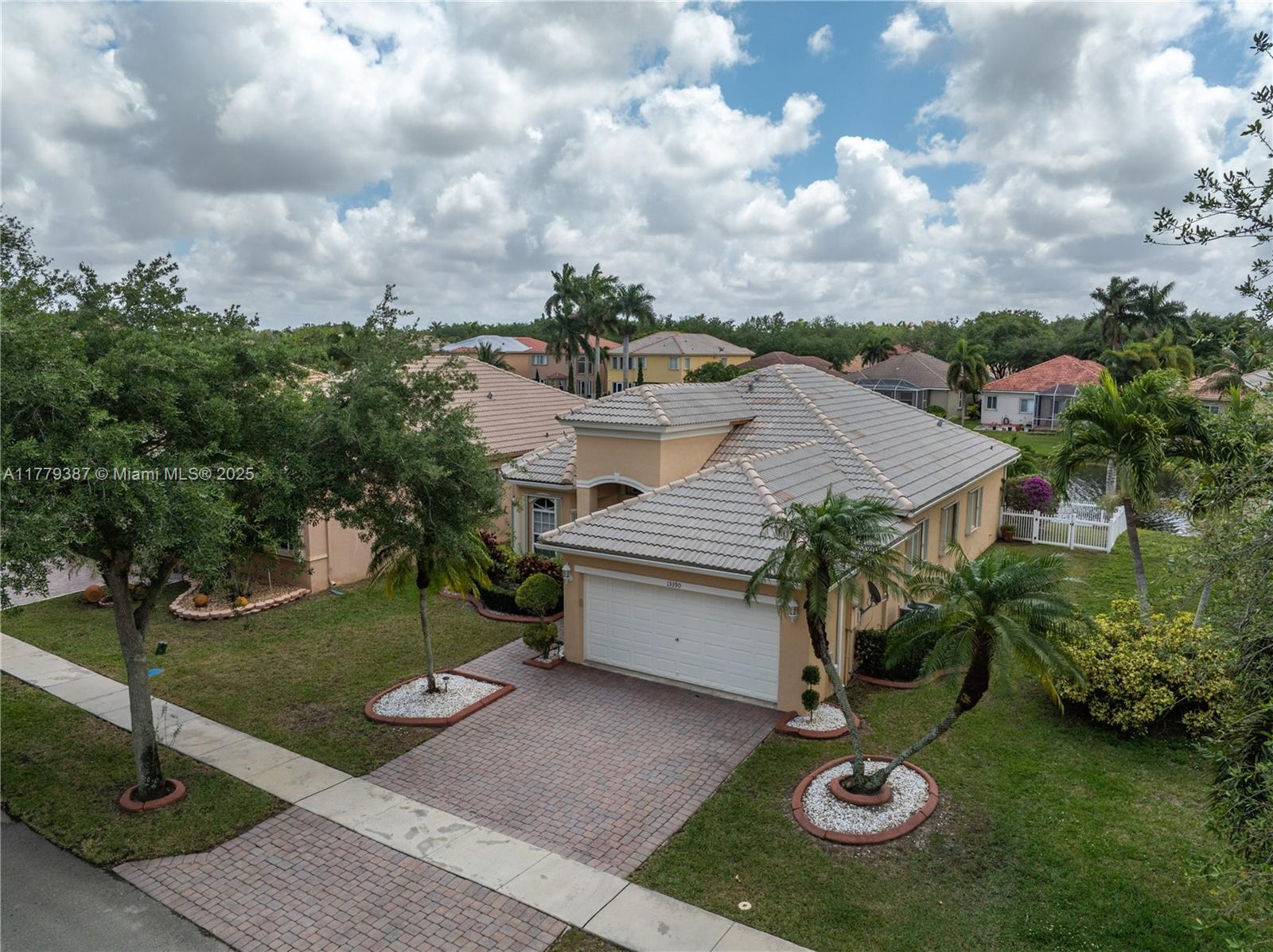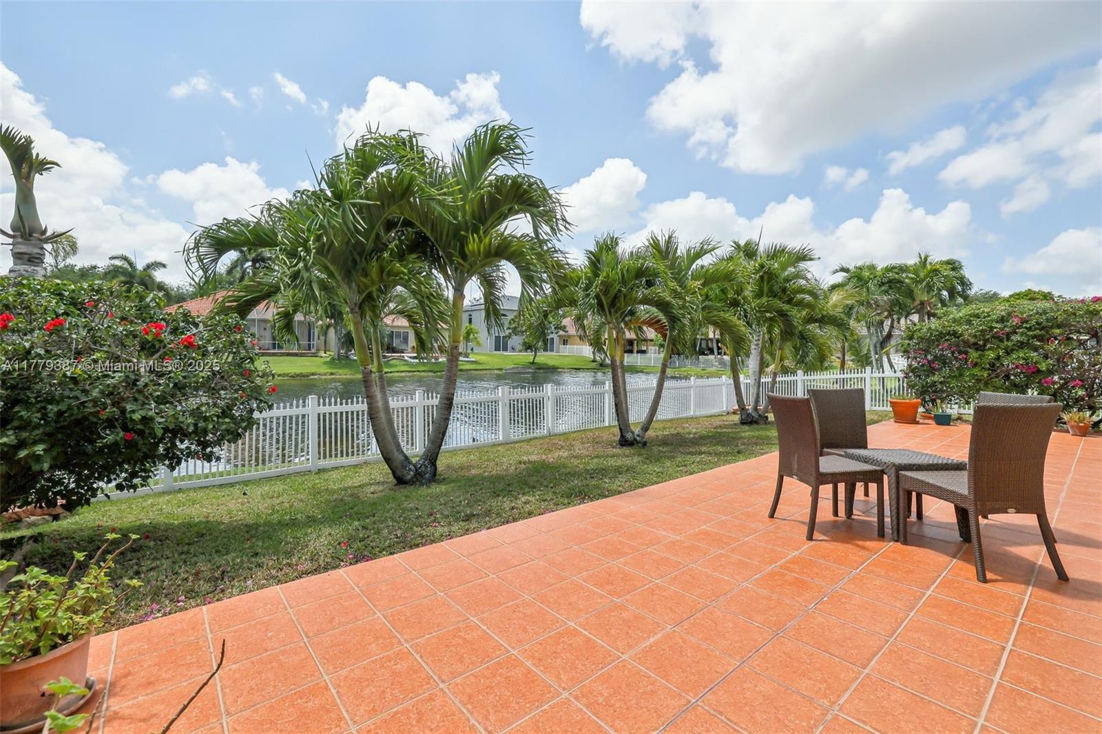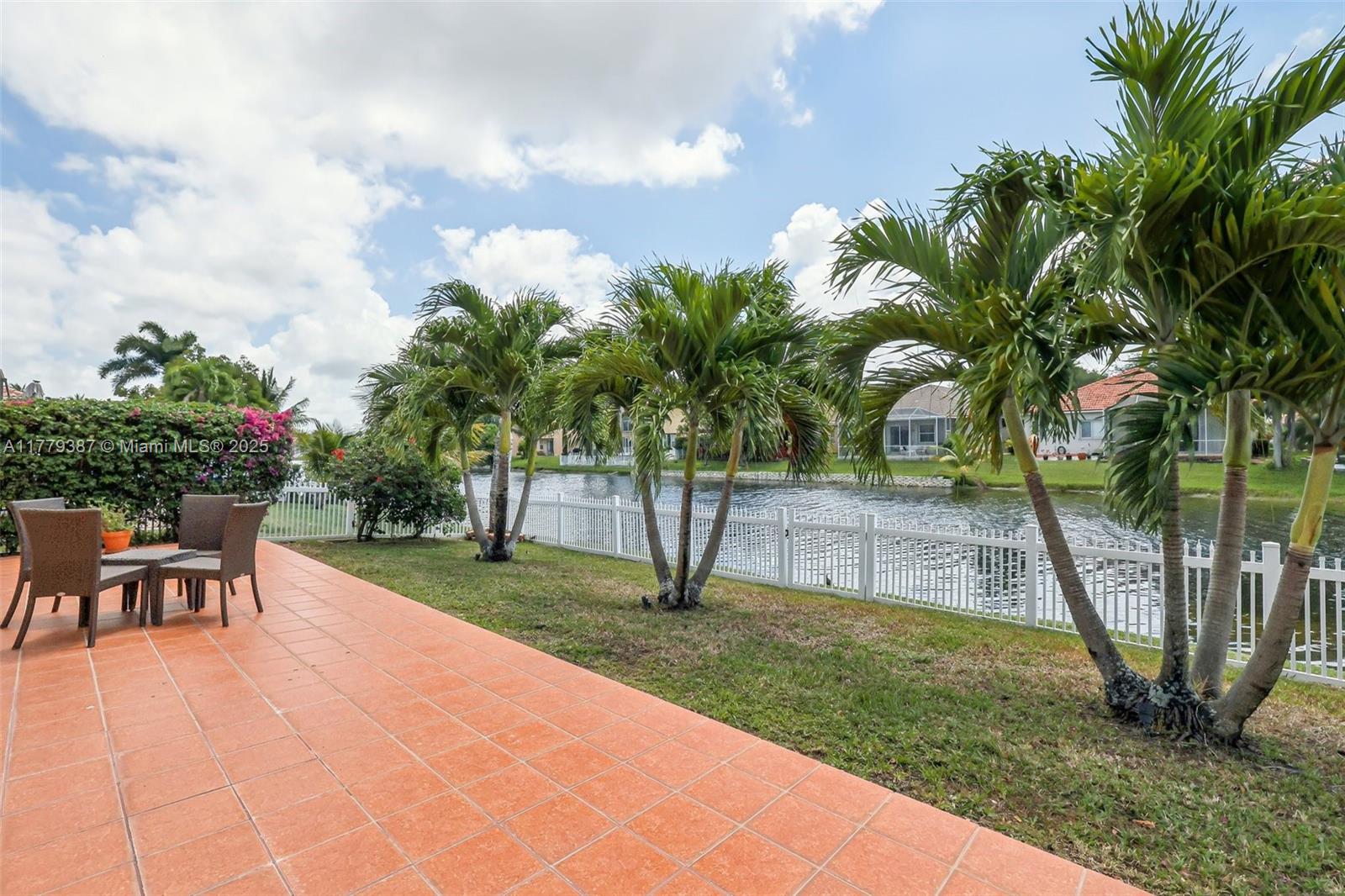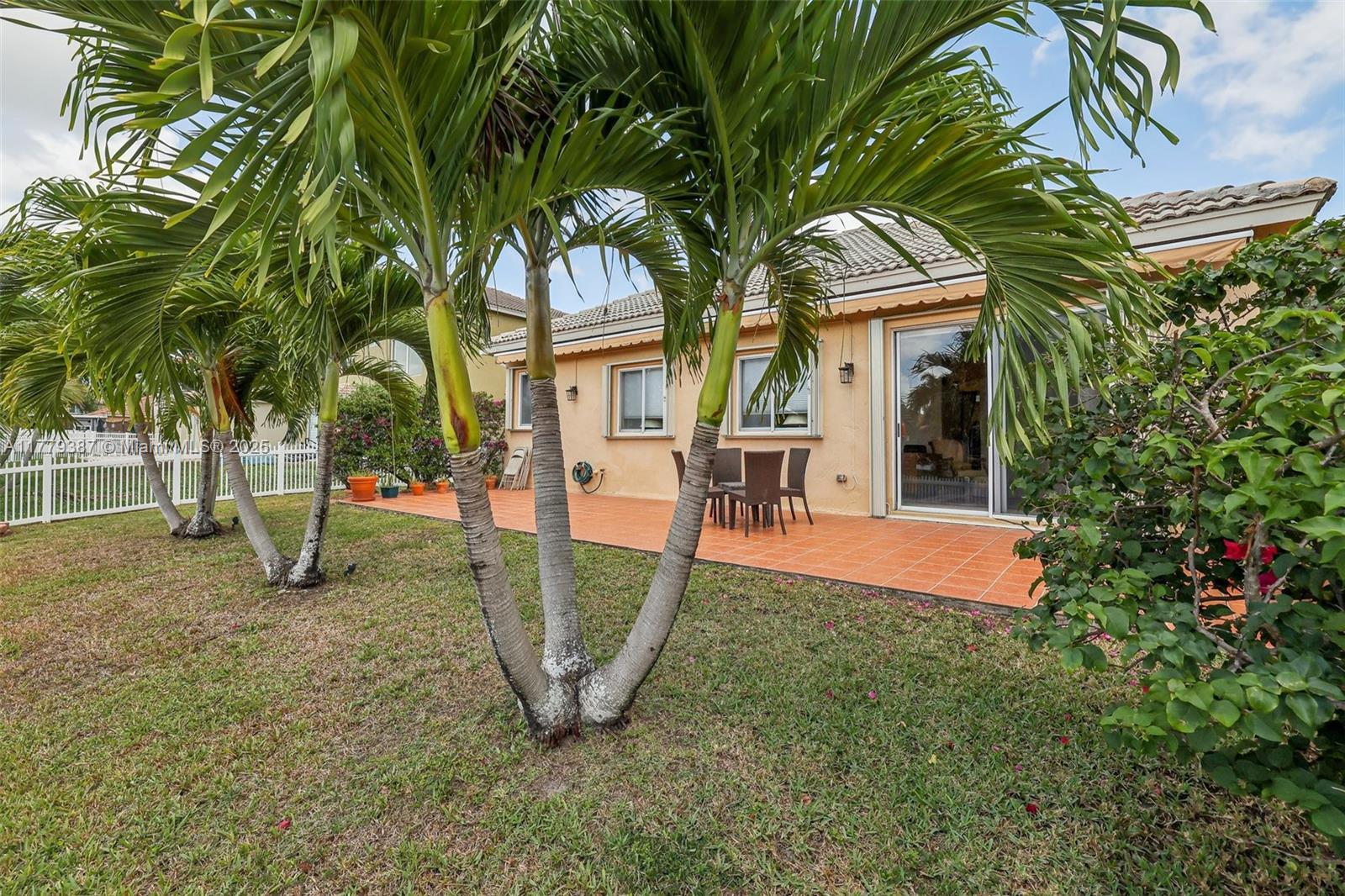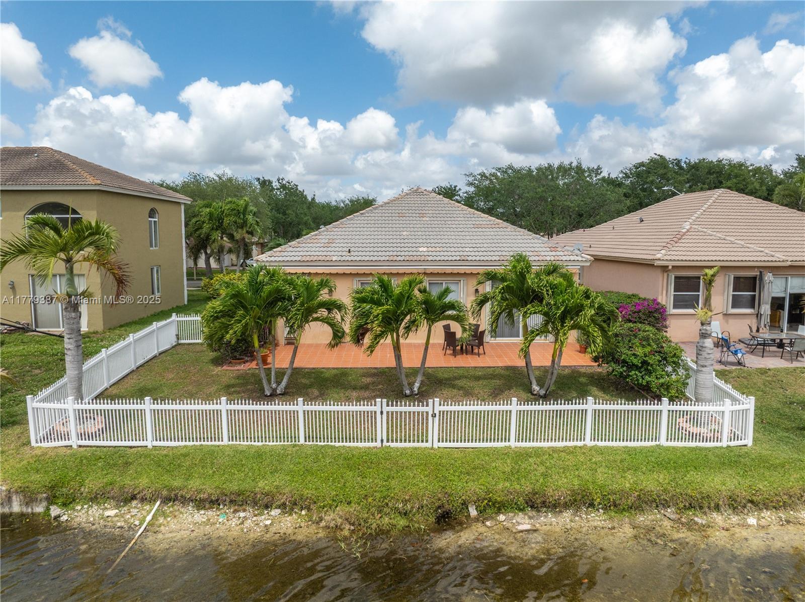 Beautiful home in a gated community with stunning unobstructed lake views. Features cherry wood floors in all bedrooms, custom wall mirrors, and a unique dining area with a framed mirror. Enjoy new stainless steel appliances, including kitchen and garage refrigerators, microwave, stove, dishwasher, and a new washer/dryer. Spacious garage with extra storage, large tiled patio with electric awning—perfect for entertaining. Lush garden with bougainvillea and palms, exterior lighting front and back. Low HOA, great schools, and close to Publix, restaurants, and shops.