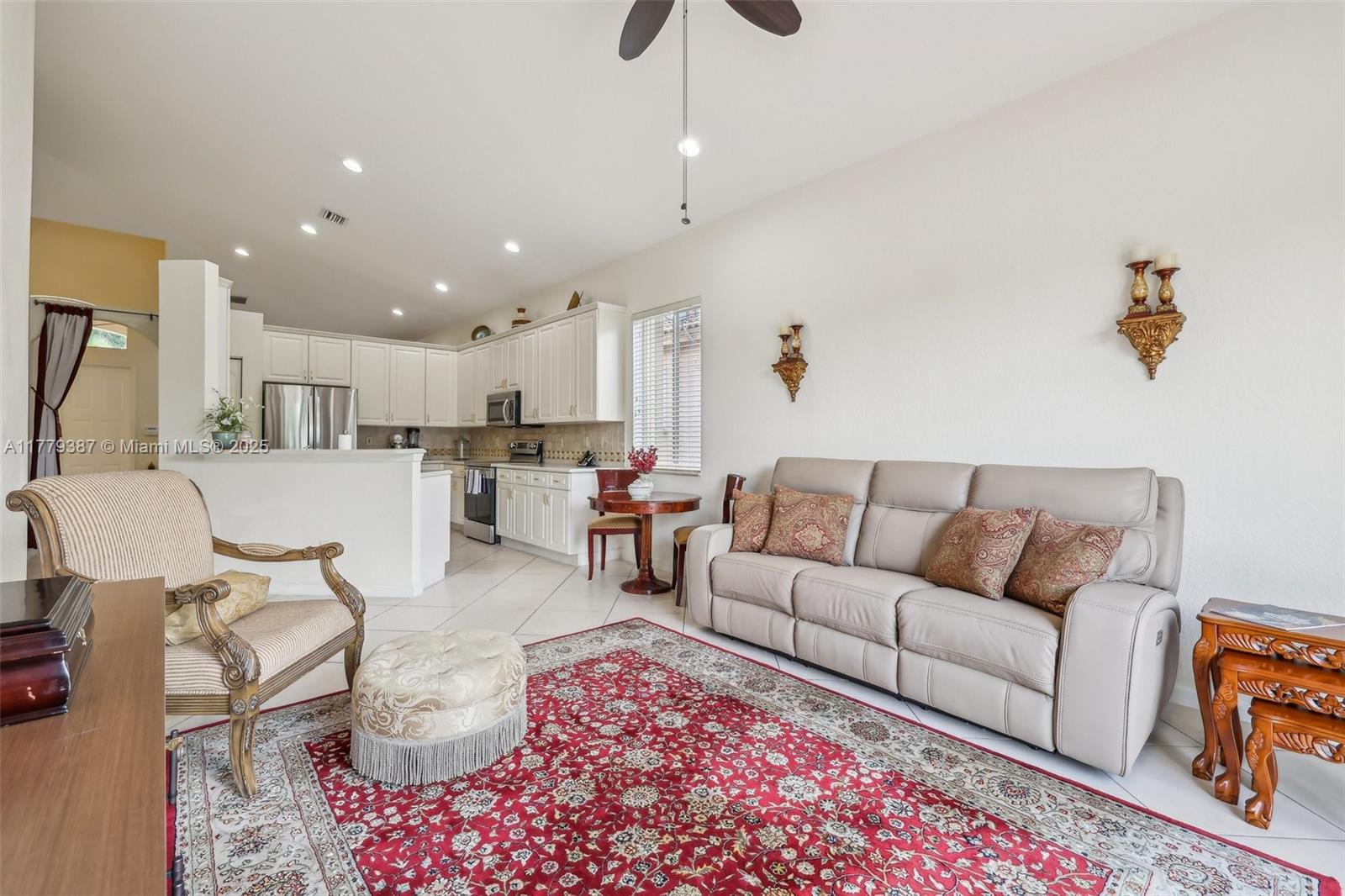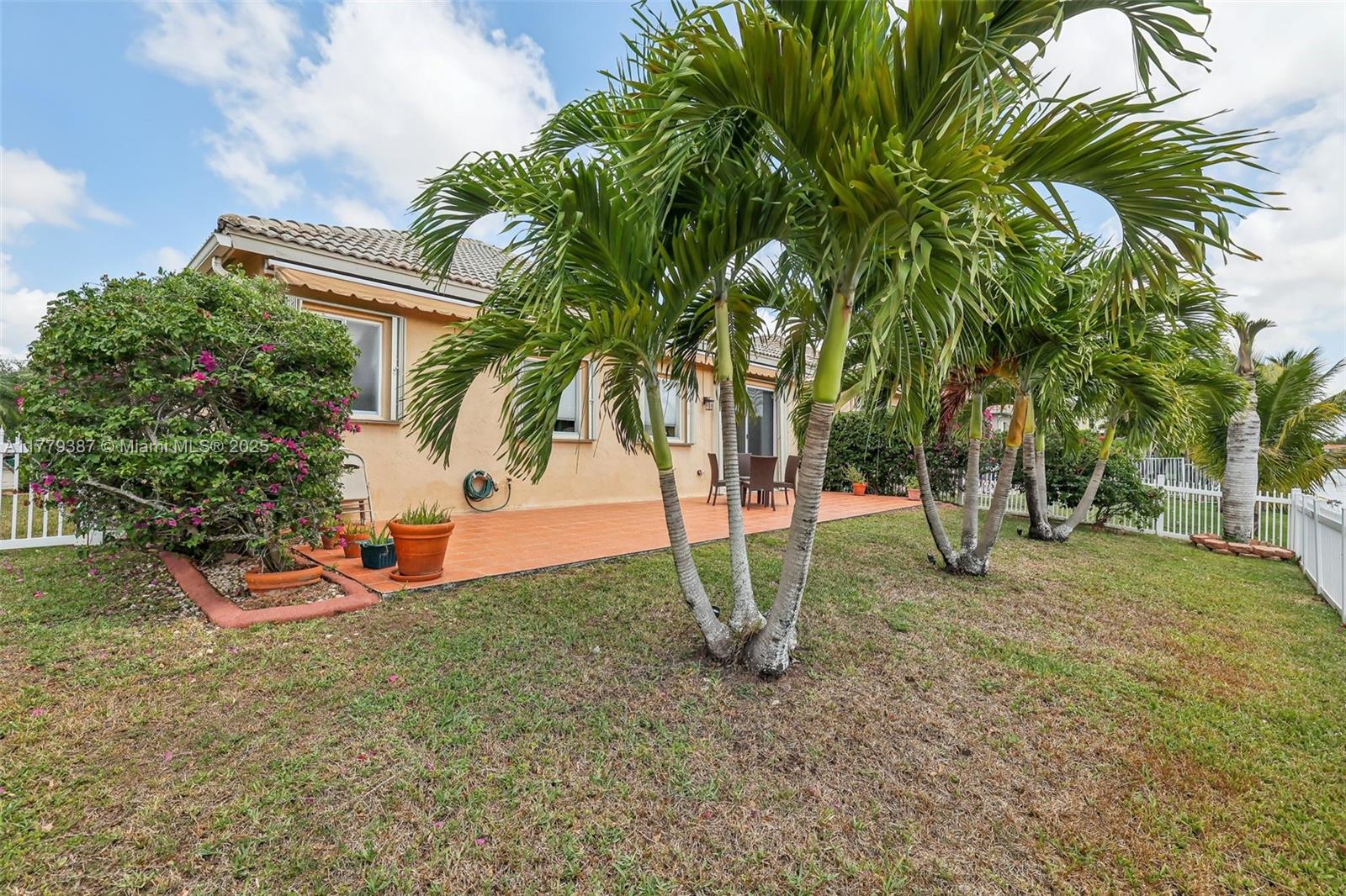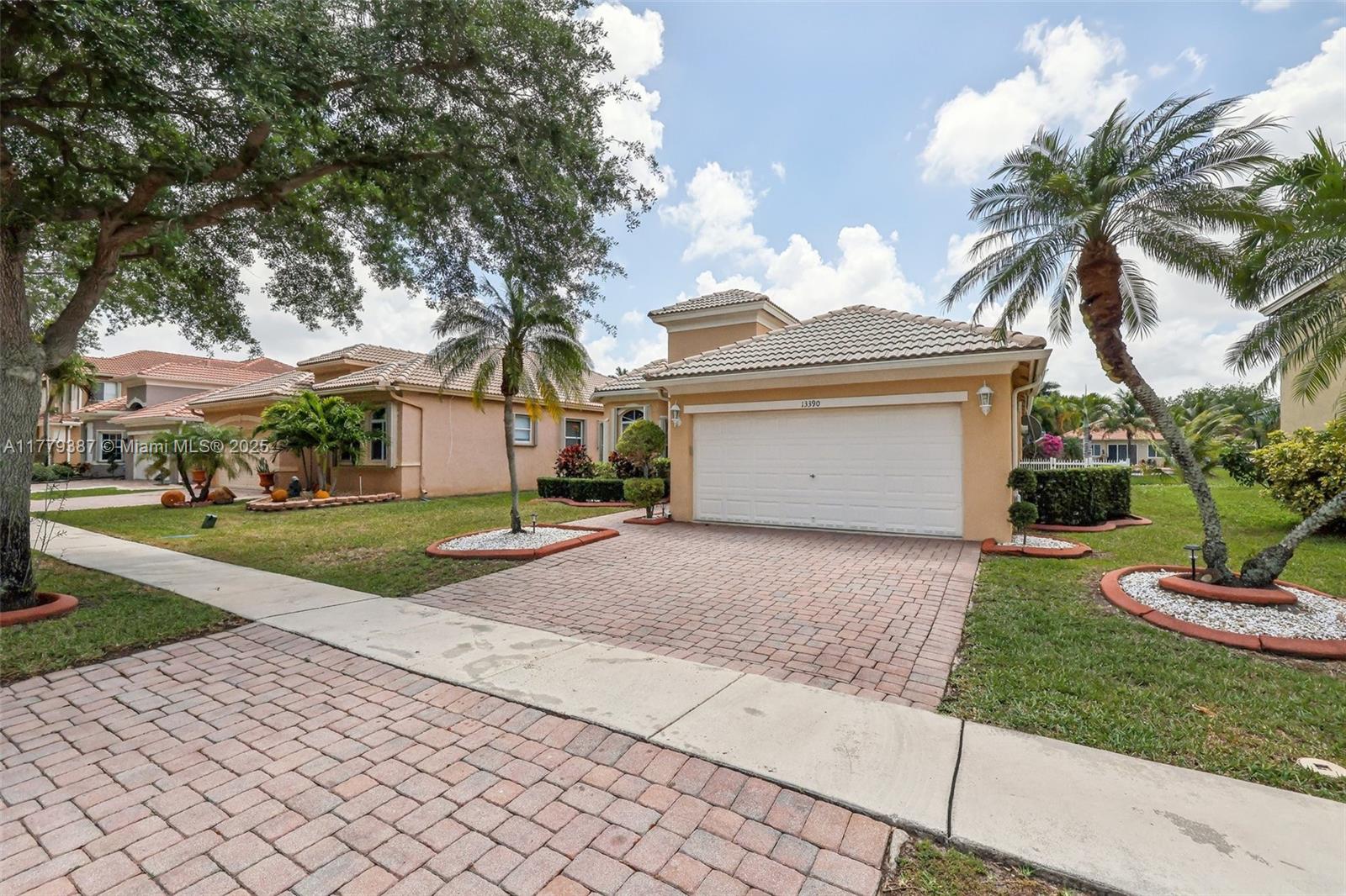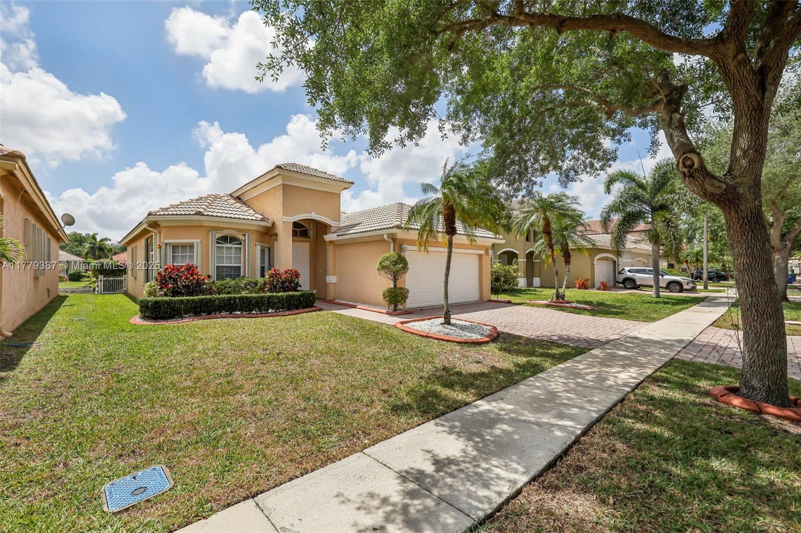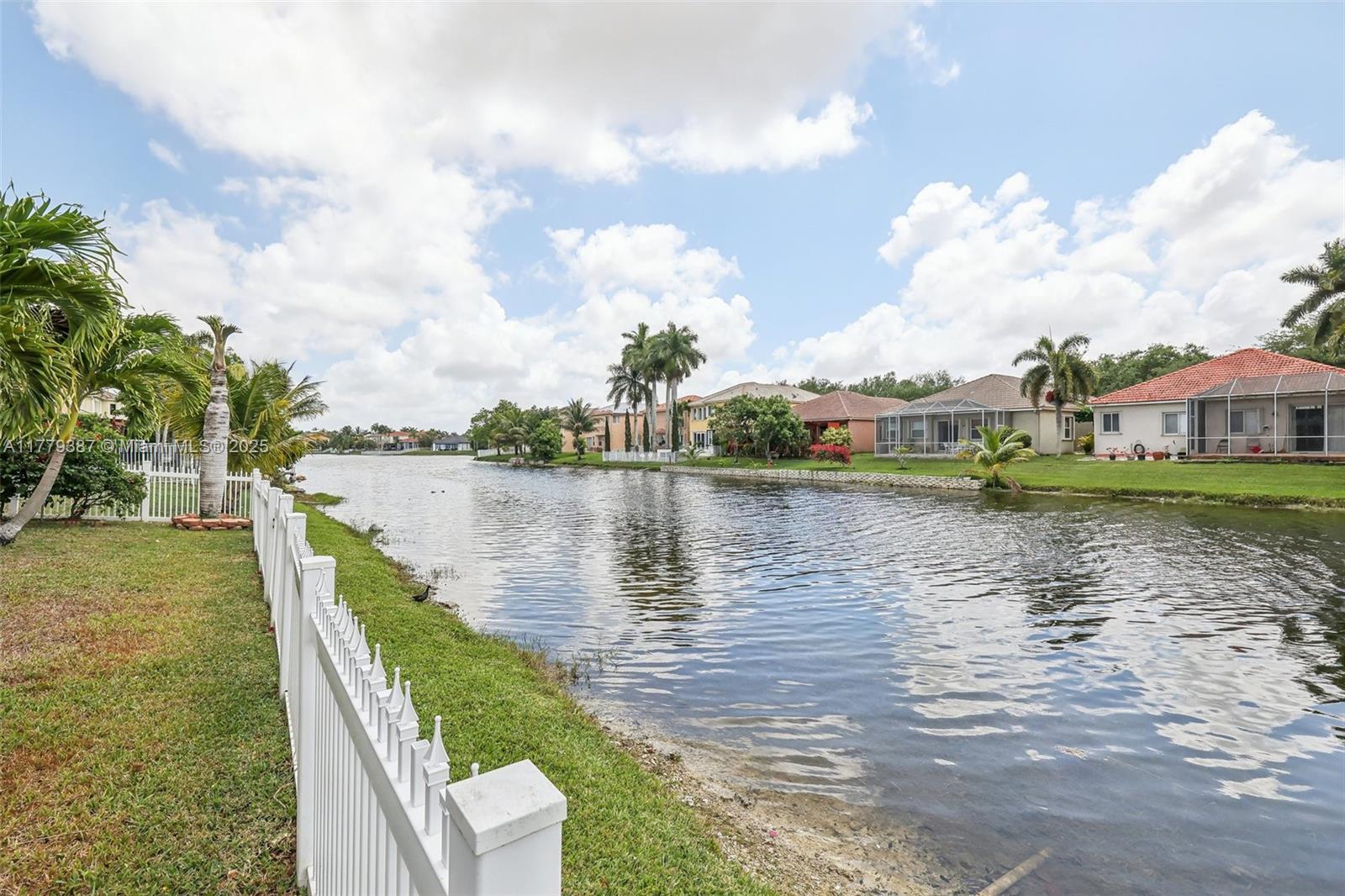 Beautiful home in a gated community with stunning unobstructed lake views. Features cherry wood floors in all bedrooms, custom wall mirrors, and a unique dining area with a framed mirror. Enjoy new stainless steel appliances, including kitchen and garage refrigerators, microwave, stove, dishwasher, and a new washer/dryer. Spacious garage with extra storage, large tiled patio with electric awning—perfect for entertaining. Lush garden with bougainvillea and palms, exterior lighting front and back. Low HOA, great schools, and close to Publix, restaurants, and shops.