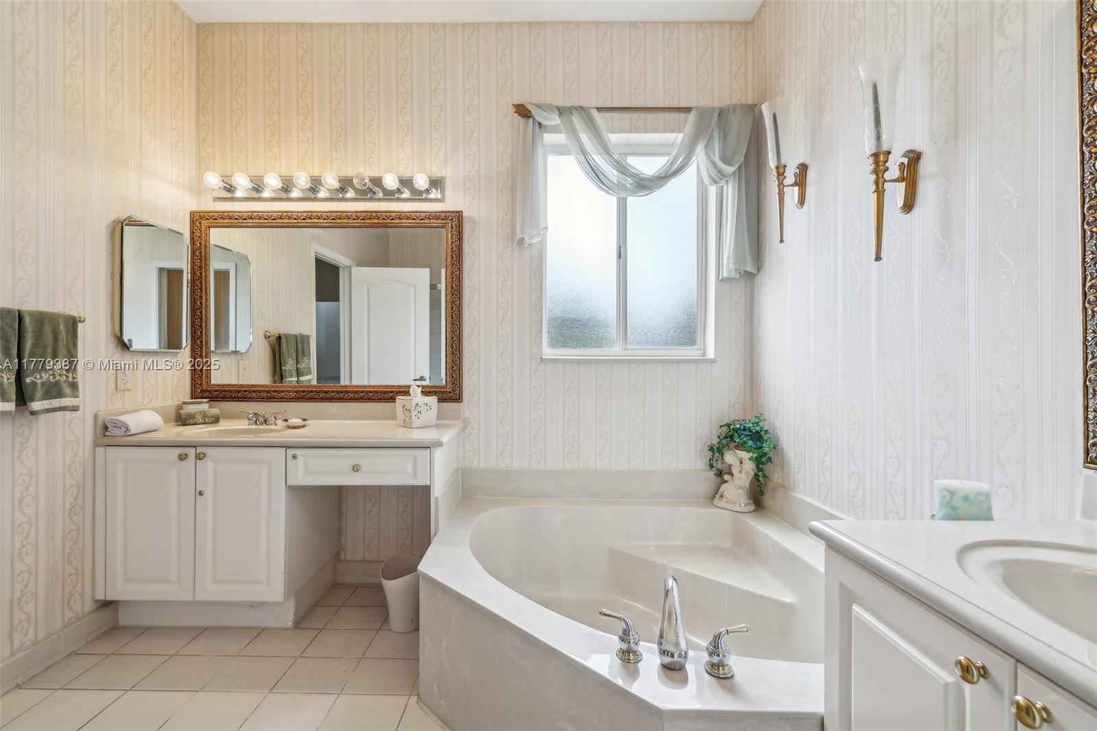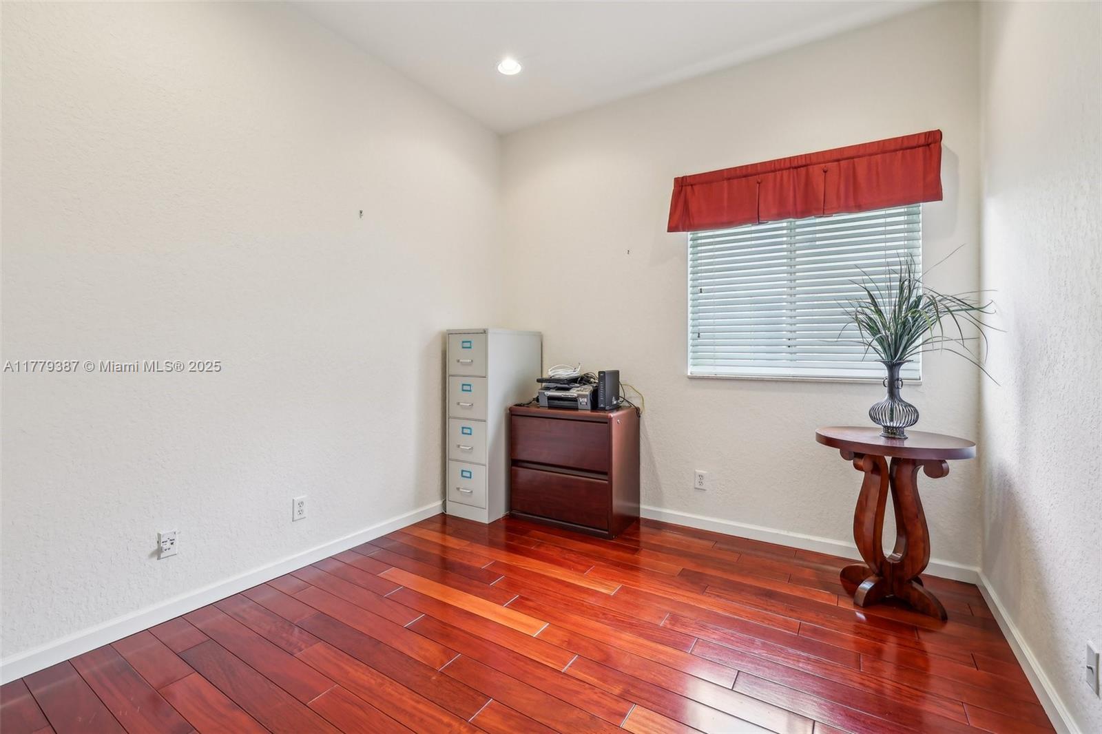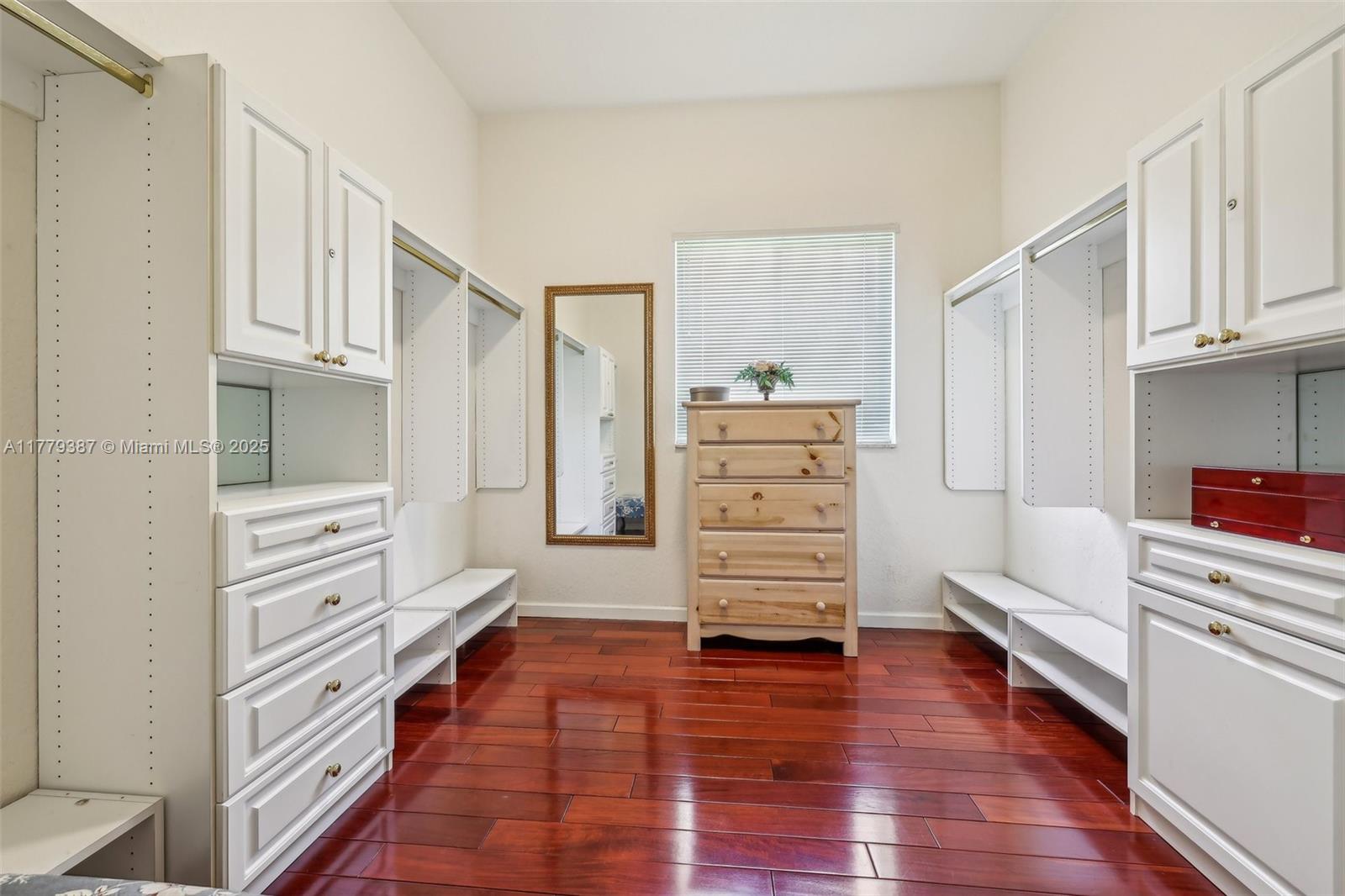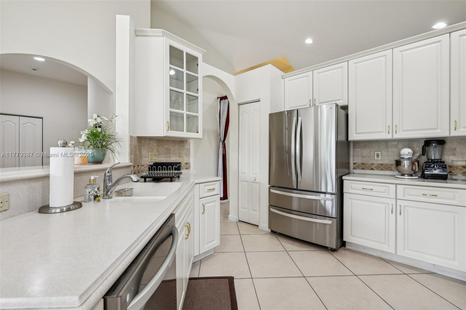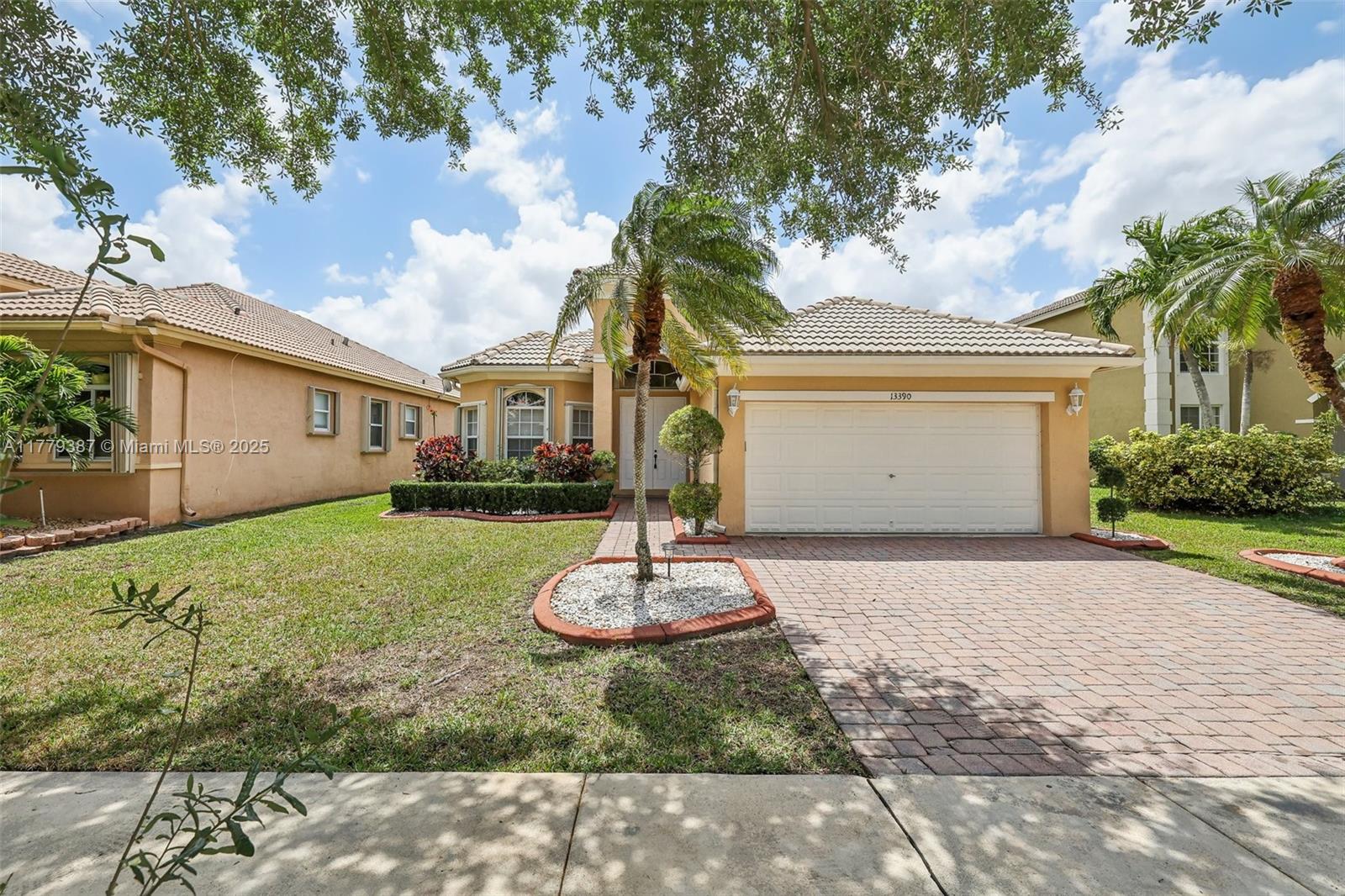 Beautiful home in a gated community with stunning unobstructed lake views. Features cherry wood floors in all bedrooms, custom wall mirrors, and a unique dining area with a framed mirror. Enjoy new stainless steel appliances, including kitchen and garage refrigerators, microwave, stove, dishwasher, and a new washer/dryer. Spacious garage with extra storage, large tiled patio with electric awning—perfect for entertaining. Lush garden with bougainvillea and palms, exterior lighting front and back. Low HOA, great schools, and close to Publix, restaurants, and shops.