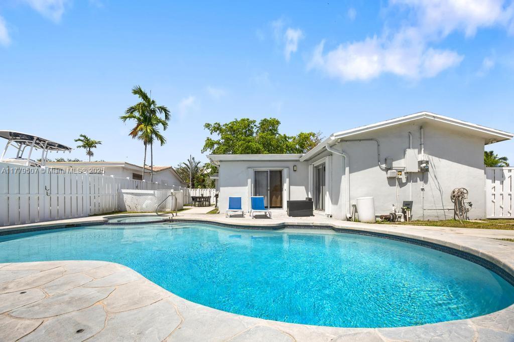 Explore excitement in this fully remodeled 4BR/2BA home with a pool on a spacious corner lot. Ideal for entertaining, the open floor plan features renovated bathrooms, porcelain floors, and LED lights. The kitchen is a chef's dream with new cabinetry, quartz countertops, and top-of-the-line stainless steel appliances. Enjoy the privacy of a fenced backyard with two separate spaces. Move-in ready, this home seamlessly combines modern luxury with functionality. Discover the epitome of comfort and style in this meticulously crafted residence. ROOF 2020!