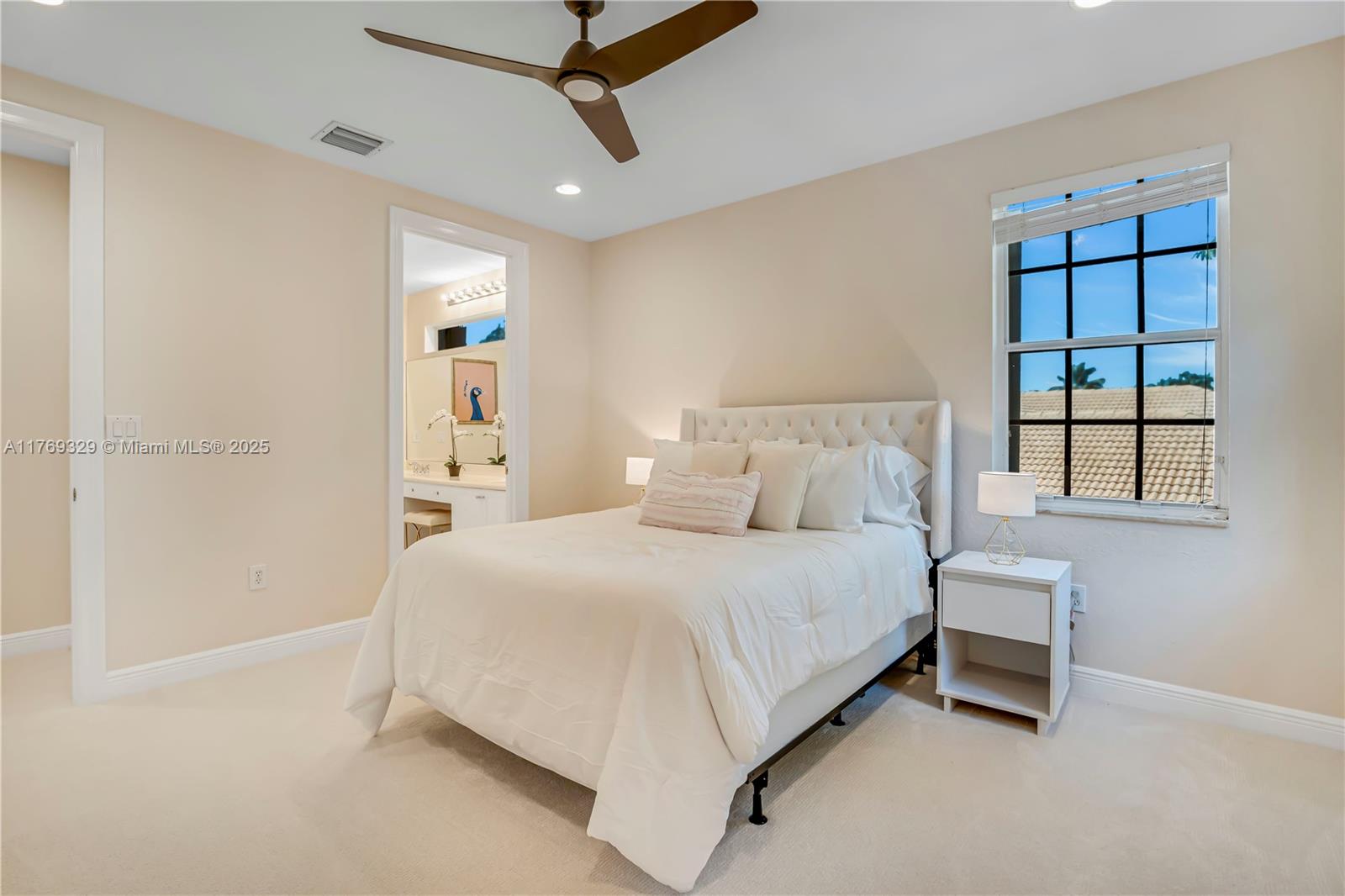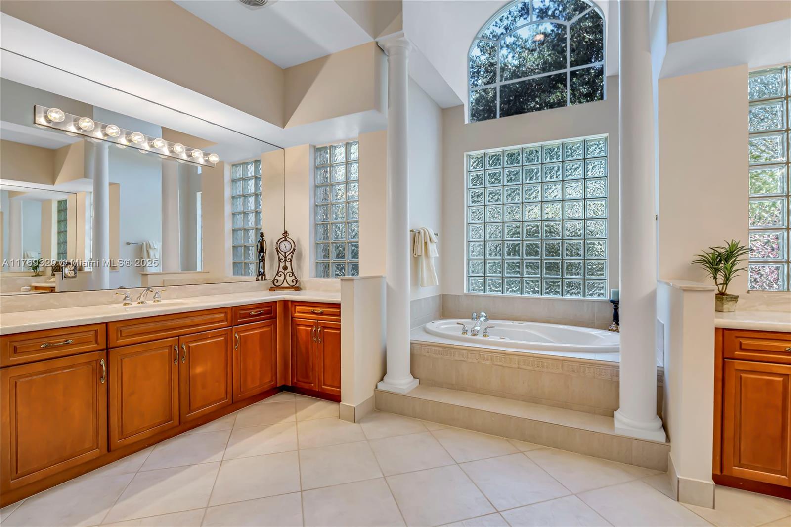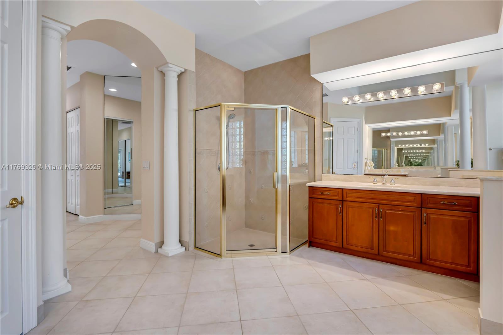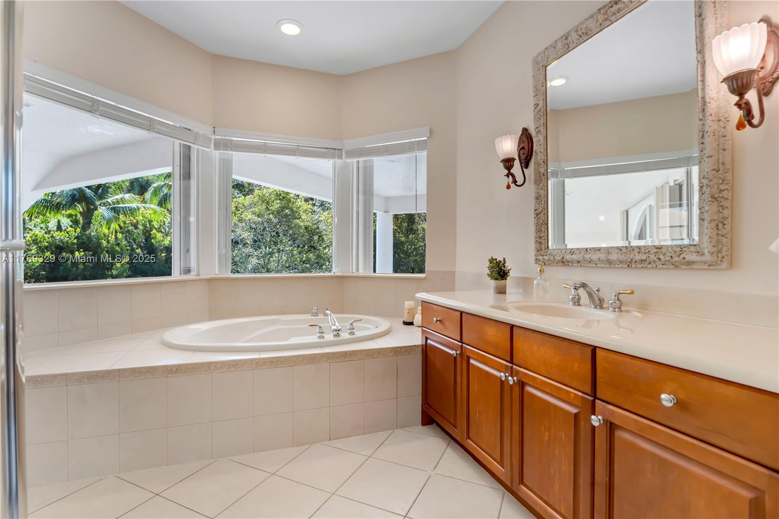 This breathtaking home in the sought-after Long Lakes Estates features 5 spacious bedrooms, 5.5 luxurious bathrooms, a private office, and a three-car garage with over 5800 sq ft. The primary suite, located on the first floor, offers beautiful views of the pool and landscaped backyard. Another bedroom and office on the main level adds flexibility. The open, light-filled first floor features volume ceilings. Upstairs, find three additional bedrooms, including one that could serve as a primary suite. Recent updates include a new roof 2024, fresh paint inside and out 2025, gutters 2025, accordion shutters, new upstairs carpet, and refinished stairs. Don’t miss out on this exceptional property!