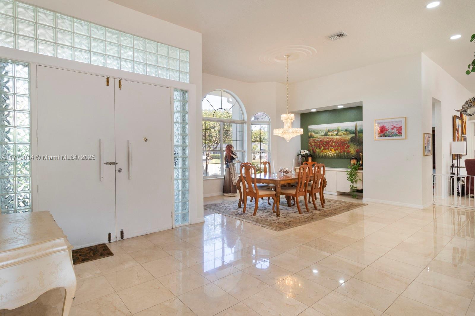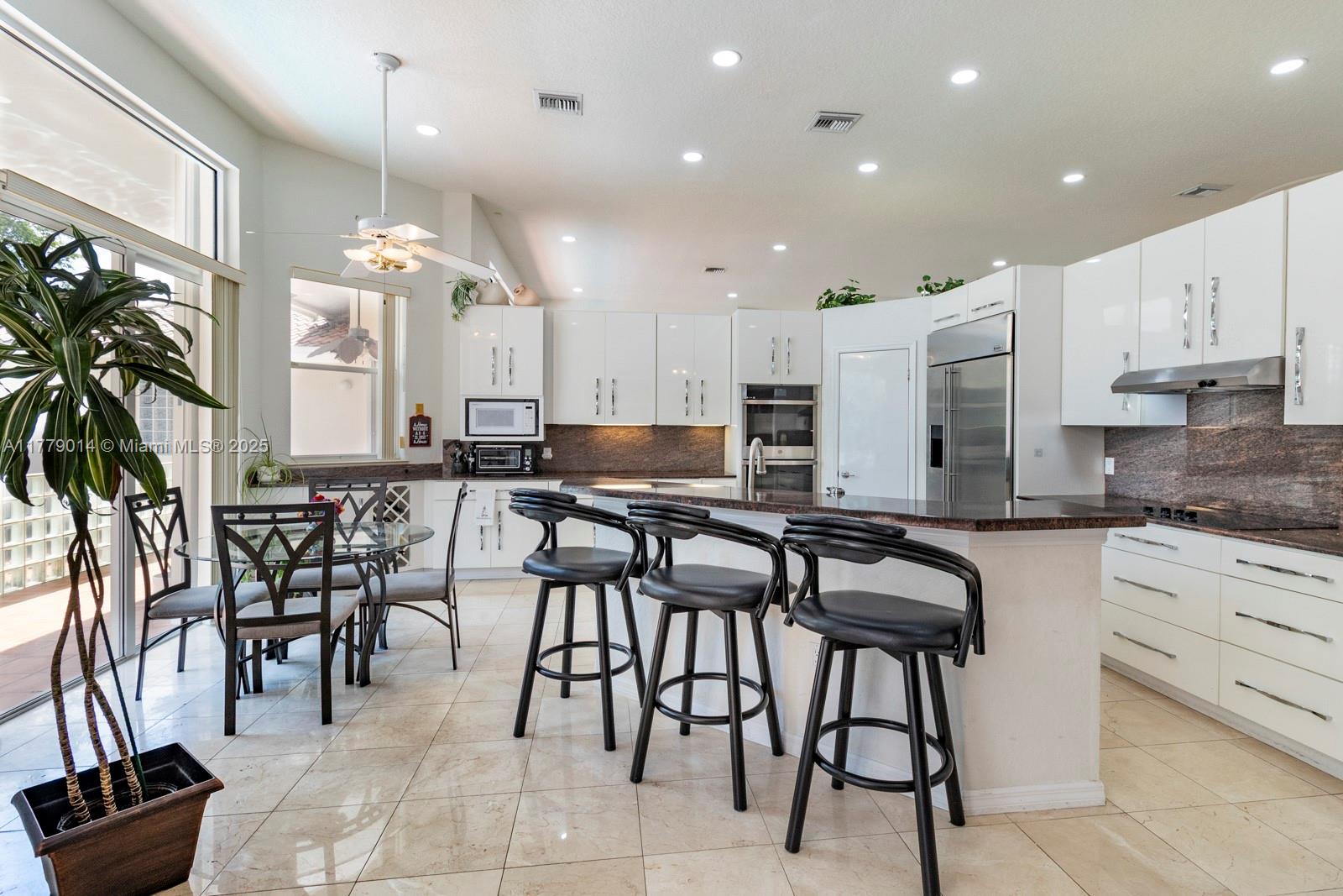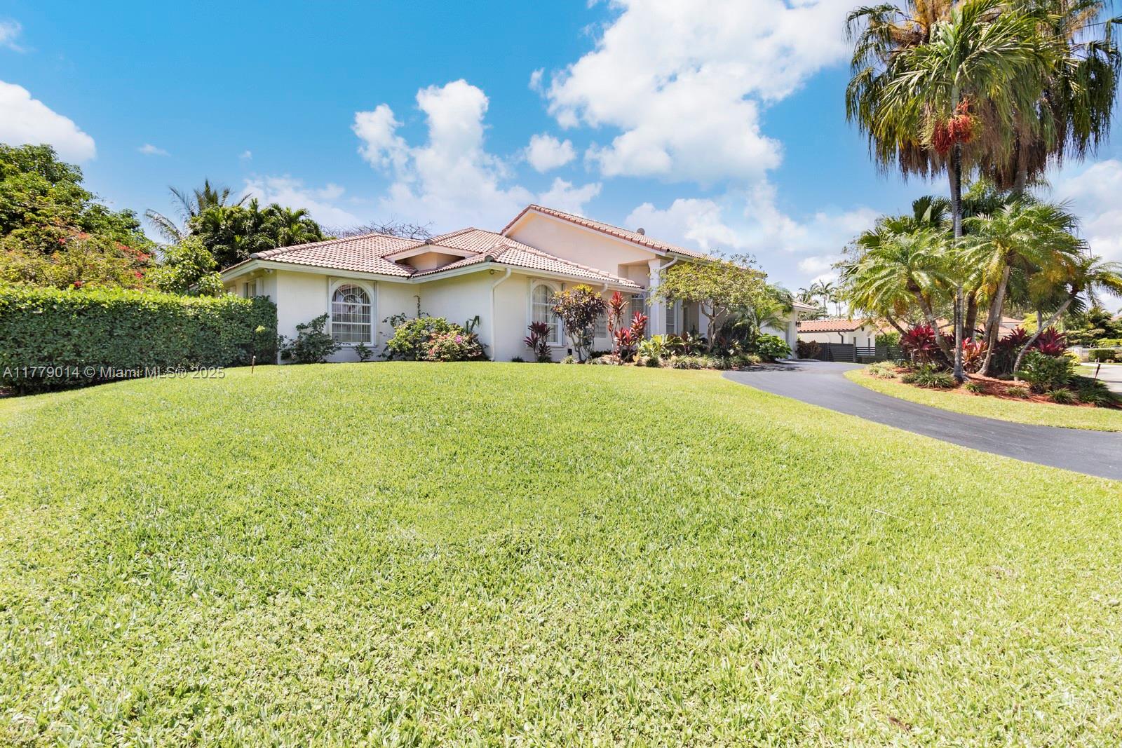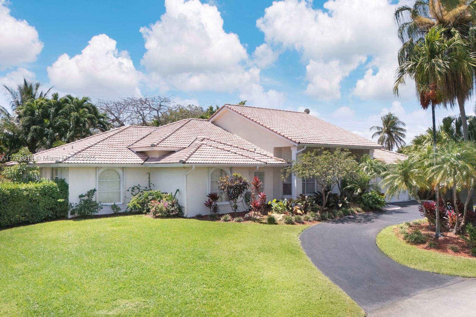 Fantastic and rare opportunity to own a 1994-built large single family home on a hidden quiet street in North Palmetto Bay with all Pinecrest schools! Soaring ceilings, great layout and split floor plan, huge open kitchen-family room, indoor laundry room, tons of light, and more! Nicely built-up/high house with great street presence. Gorgeous lush pool-patio area with big cantilevered overhang.