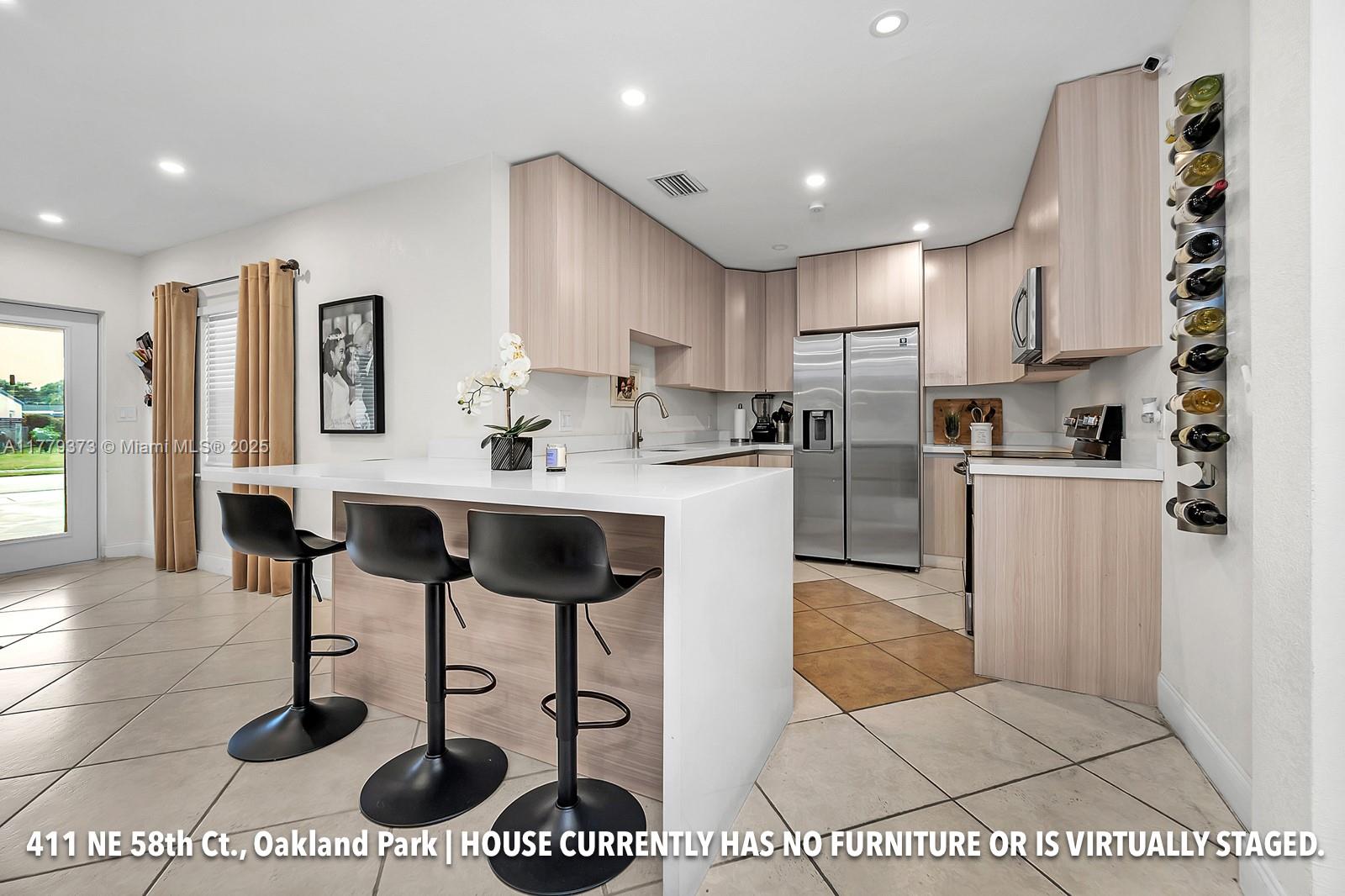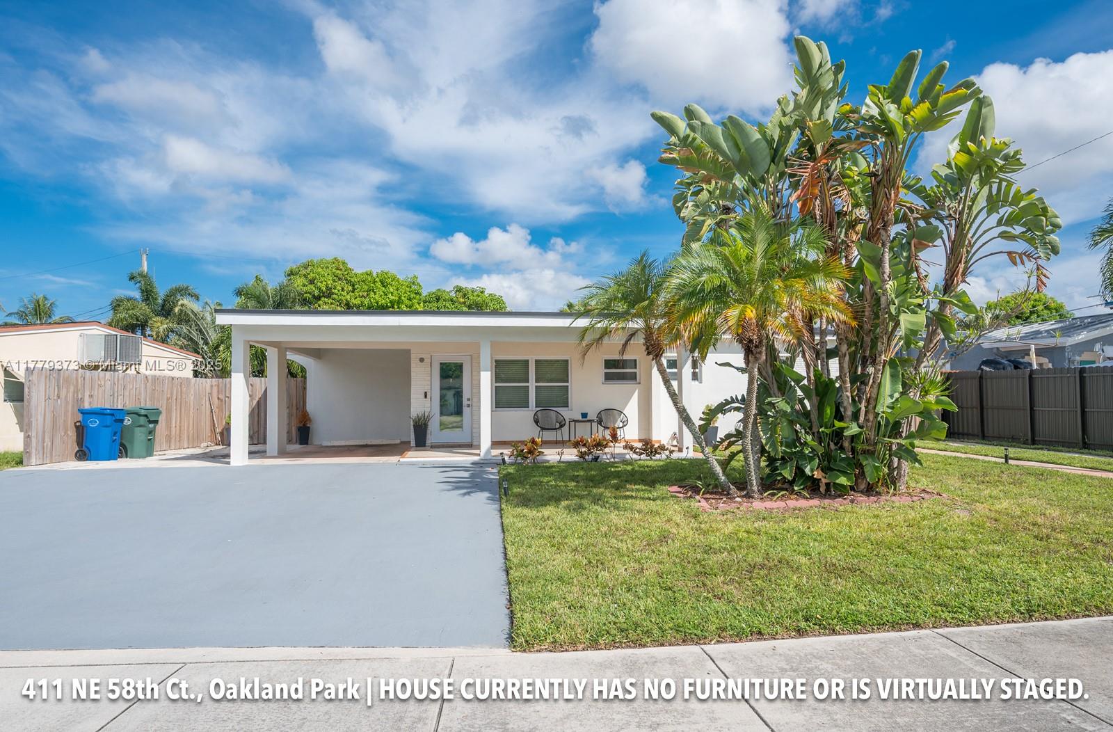 Beautiful, centrally located 3/3/1 completely updated house. The kitchen boasts beautiful cabinetry and quartz countertops. All bathrooms are remodeled with modern finishes. There are 2 master suites, 1 car carport, plenty of parking, laundry w/full size washer & dryer. Roof is 4 yrs, electrical updated in 2021, 2 tankless water heaters, AC 2024, sprinklers 2 yrs, house has full impact protection-windows & doors! Plumbing partially re-piped w/PVC in 2020. Brand new jacuzzi & outside kitchen area. House is near I95, Intermiami Stadium, Turnpike, beach, Ft. Laud, Wilton Manors, Pompano, Laud-by-the-Sea, shopping & dining. The City of Oakland Park is undergoing major development.