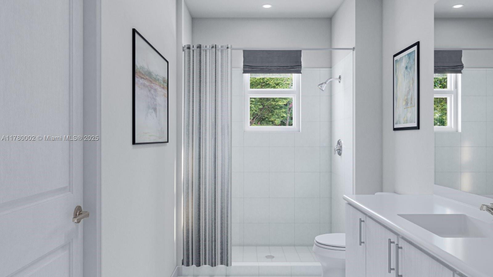 This single-story design features impact-resistant windows and a formal dining room at the end of the foyer, followed by a breezy open floorplan shared between the Great Room and kitchen that works to maximize the footprint of the interior. At the front of the home are three secondary bedrooms with easy access to a full-sized bathroom, while tucked away in a private corner is the serene owner’s suite.