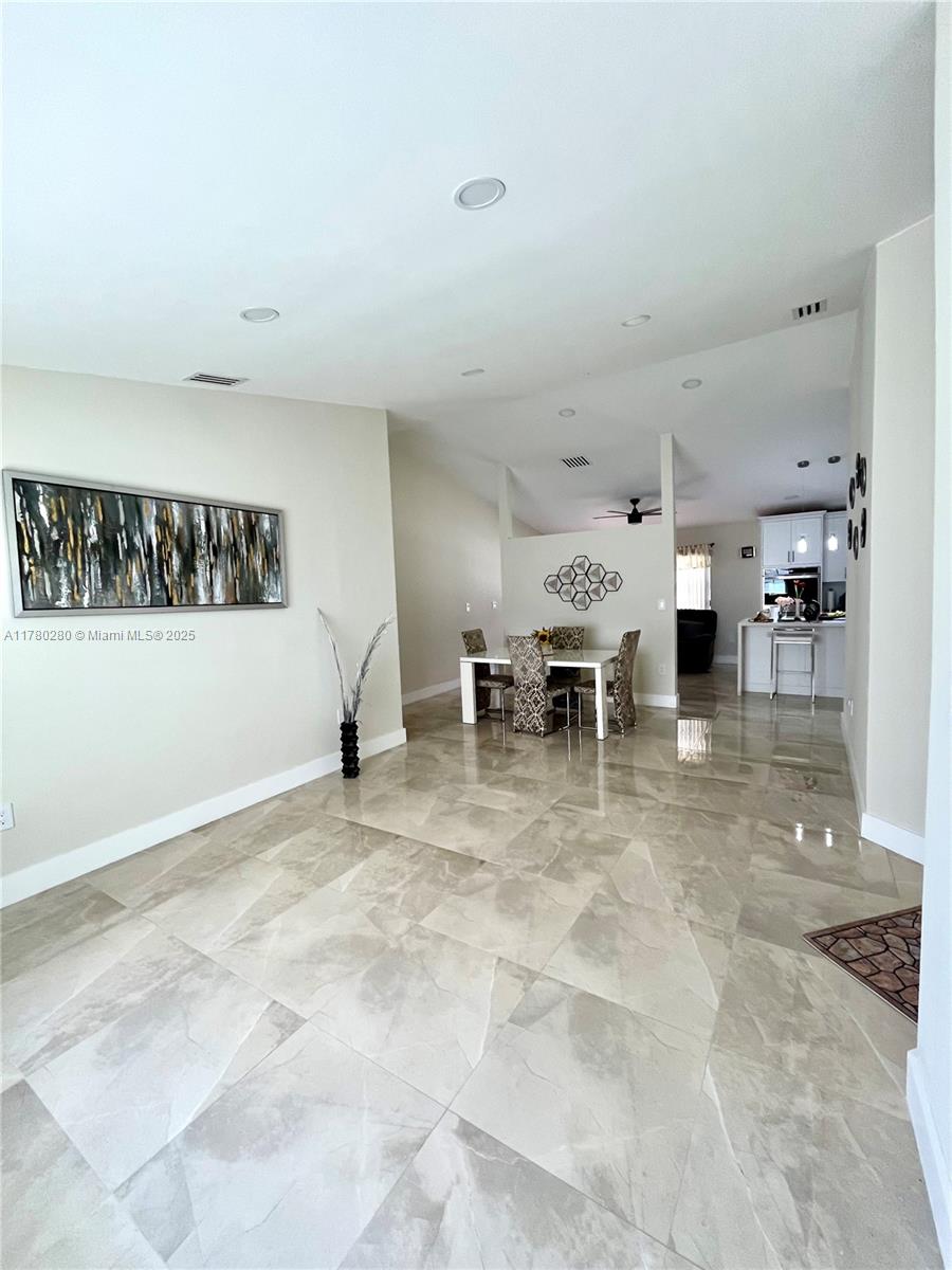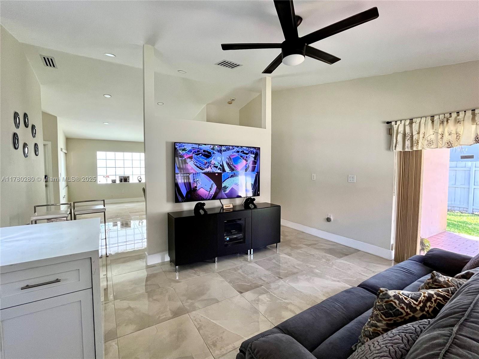 Excellent location! Low HOA includes Internet cable and patrolled security. Home features tile floors throughout, vaulted ceilings, walk-in closet, roof completed in 2022, remodeled kitchen cabinets with quartz tops and new stainless steel appliances. The entire home is protected by accordion shutters. A split floor plan ensures privacy. Conveniently located close to I 75, parks, shops, restaurants, and top rated schools.