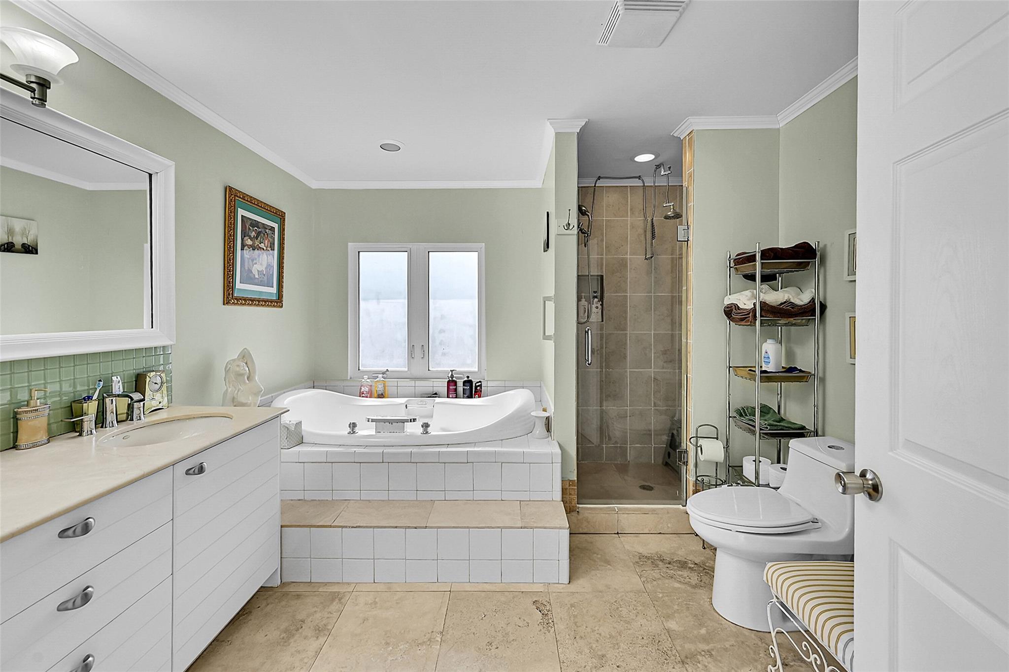 • Interior Feature:BuiltInFeatures, BedroomOnMainLevel, BreakfastArea, DualSinks, FirstFloorEntry, GardenTubRomanTub, JettedTub, KitchenIsland, KitchenDiningCombo, LivingDiningRoom, MainLevelPrimary, SeparateShower, Bar, WalkInClosets, Workshop