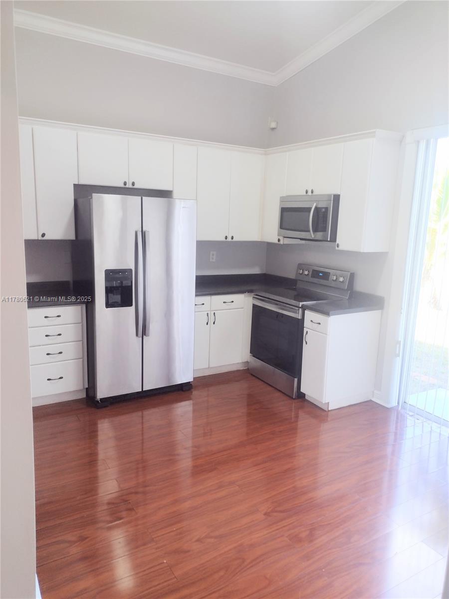Come see for yourself! This beautiful 3/2 2CG home features an open floor plan with vaulted ceilings, laminate floors throughout, newer AC and stainless steel appliances, and has been freshly painted for a new family to move in and enjoy. Located in a quiet, guard-gated community, with a community pool, fitness center, and clubhouse, with easy access to Miami-Dade and Broward County. ***EZ to show - Click Show Assist for lockbox information***