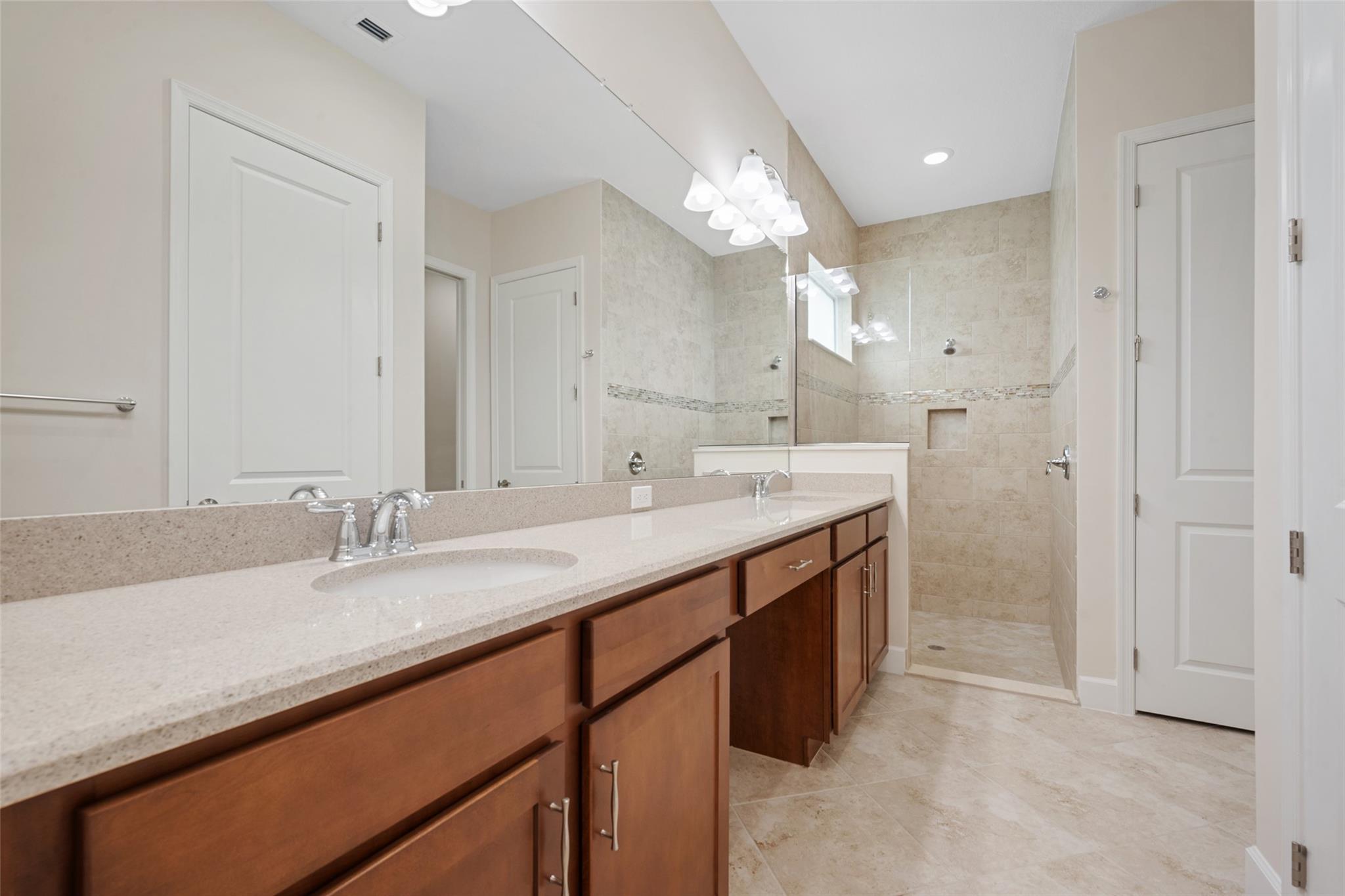 This brand-new home has a classic and elegant design, upon entering the house, you are greeted with a large and open living area. The living room features large windows that let in plenty of natural light. There's also a dining area, a large kitchen with stainless steel appliances, a center island, and plenty of counter space. Upstairs, there's a grand master suite with a spacious bedroom, a walk-in closet, and a luxurious master bathroom with a double vanity, a soaking tub, and a separate shower. Two additional bedrooms with a shared bathroom and a laundry room exist. Overall, this two-story home with a double master is perfect for a family looking for a spacious, high-end, and stylish living space.