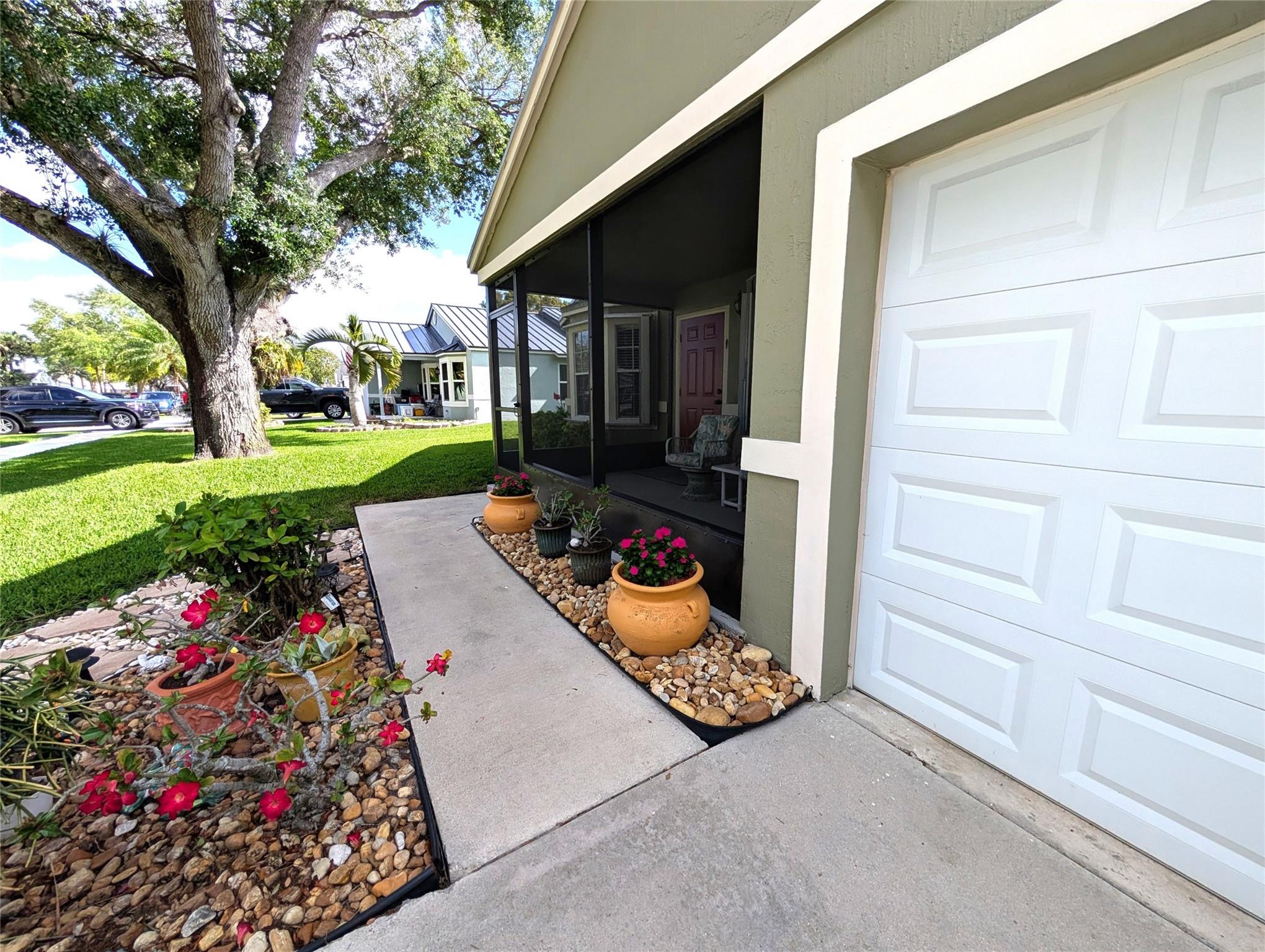 This fabulous home on a generous lakefront lot in a tranquil neighborhood will captivate you with its panoramic water views and soaring vaulted ceilings in the light-filled living room and custom maple kitchen with Silestone countertops. A private lakefront with deck for breezy afternoons and fishing, a huge, fenced backyard with pool potential, and a spacious screened rear porch for year-round enjoyment. Plus, a charming screen-enclosed front porch for morning coffee. Features include bay windows, a long double driveway (fits 4 cars), a timed irrigation system, a storage shed, and an attached garage. Includes accordion shutters and hurricane rated garage doors. Roof replaced in 2017. Fresh and move-in ready! Don't miss this rare opportunity for lakefront living.