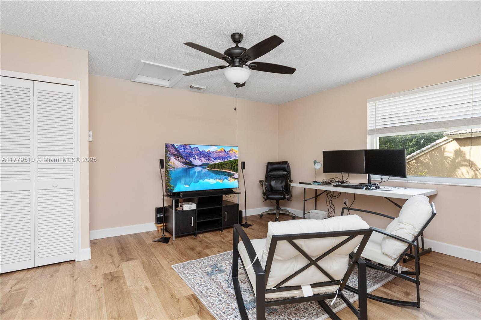 Don’t miss this beautiful 3 bed, 2.5 bath home featuring an incredible backyard oasis! Perfect for entertaining, the spacious yard boasts a sparkling pool, lush landscaping, screened patio, and plenty of room for BBQs and gatherings. The primary bedroom is conveniently located on the first floor with a large walk-in closet. Upstairs, you’ll find two additional bedrooms, a full bathroom, and a spacious loft—perfect for a home office or playroom. Enjoy high ceilings, a welcoming kitchen, and bright living spaces. Close to top-rated schools, shopping, and dining. HOA includes internet and cable. This home has everything you need to enjoy the South Florida lifestyle—make it yours today!