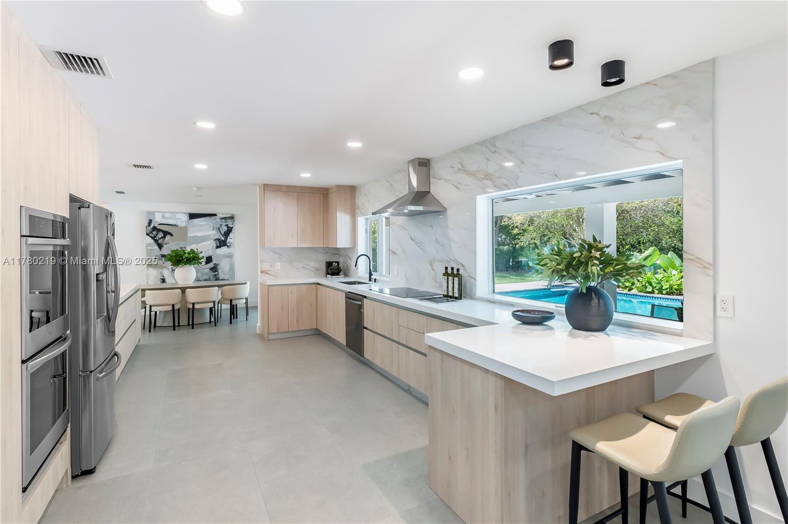 This beautifully remodeled, move-in ready home in North Pinecrest features 4 bedrooms, 3 bathrooms, and a versatile 5th room perfect as a bedroom or home office. A stunning front door sets the tone as you step inside to an abundance of natural light and an inviting layout that flows effortlessly through thoughtfully curated spaces. Every detail reflects style, warmth, and comfort.Enjoy a spacious and functional laundry room, along with impact windows and doors. Step outside to unwind or entertain in a beautifully landscaped backyard featuring a sparkling pool, spacious terrace, and lush greenery. Nestled on a tranquil street near incredible schools, with convenient access to major highways.Come experience Pinecrest living at its finest.Actual total living area per appraiser is 2774 sq. ft.