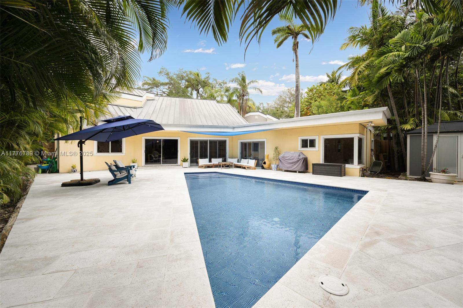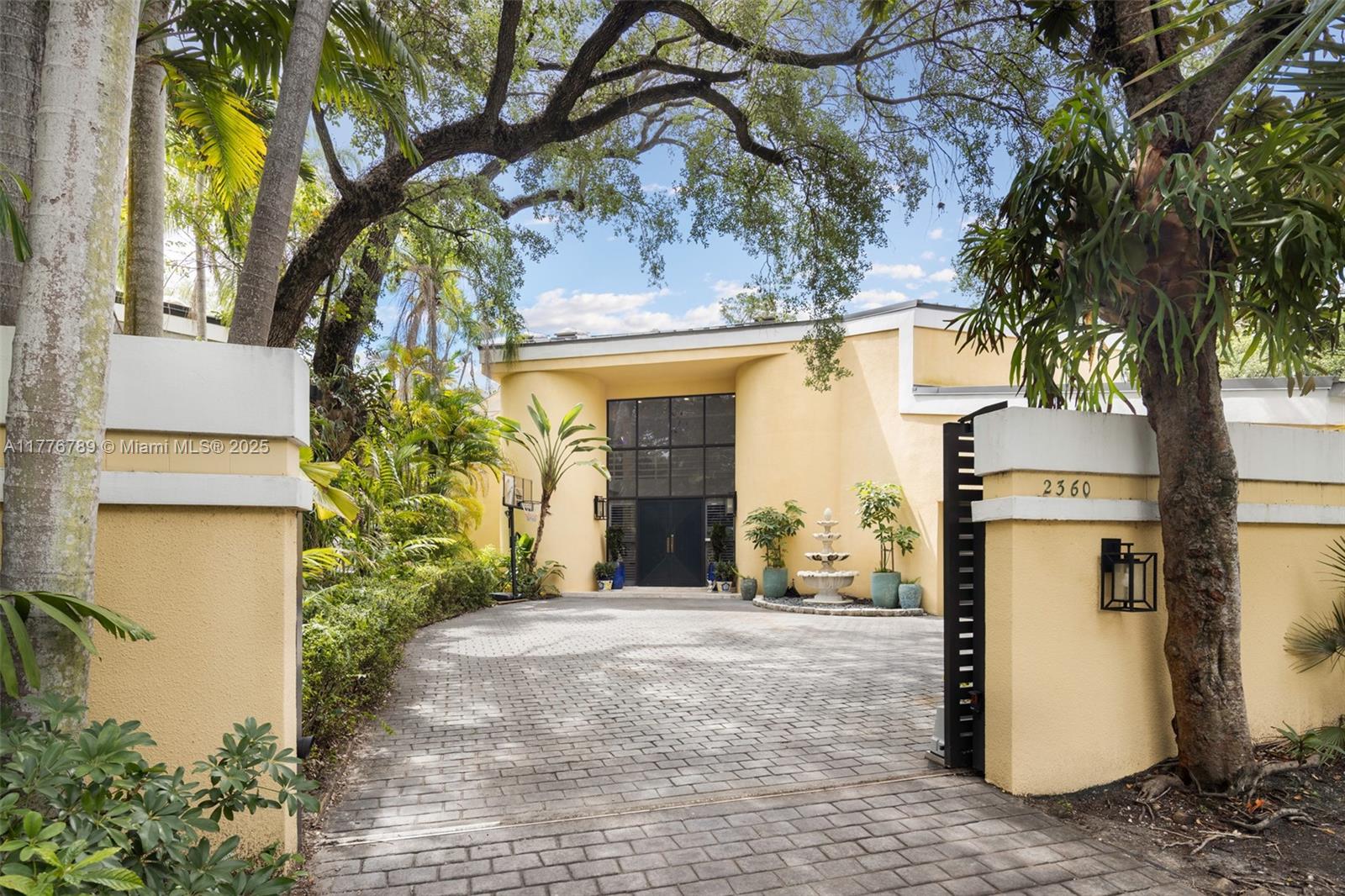 Captivating, walled & gated home in prestigious North Coconut Grove. Enter into open living spaces with abundant natural light, high vaulted ceilings and a contemporary vibe throughout. The oversized kitchen features wood cabinetry, a center island w/seating & a separate breakfast area. Ideal floorplan layout has two 1st level BR’s & BA’s - including the primary suite that opens to the ultra-private pool. 2nd level has 2BR’s & 1BA + access to the rooftop (with potential to build out a terrace overlooking the tree-tops). Enjoy outdoor living on the expansive patio with heated/saltwater pool & lush tropical greenery. High sea-level elevation (not in a flood zone). Close to the Grove village’s shopping, dining, bayfront parks - and just minutes to downtown, MIA, Key Biscayne & the Beaches.
