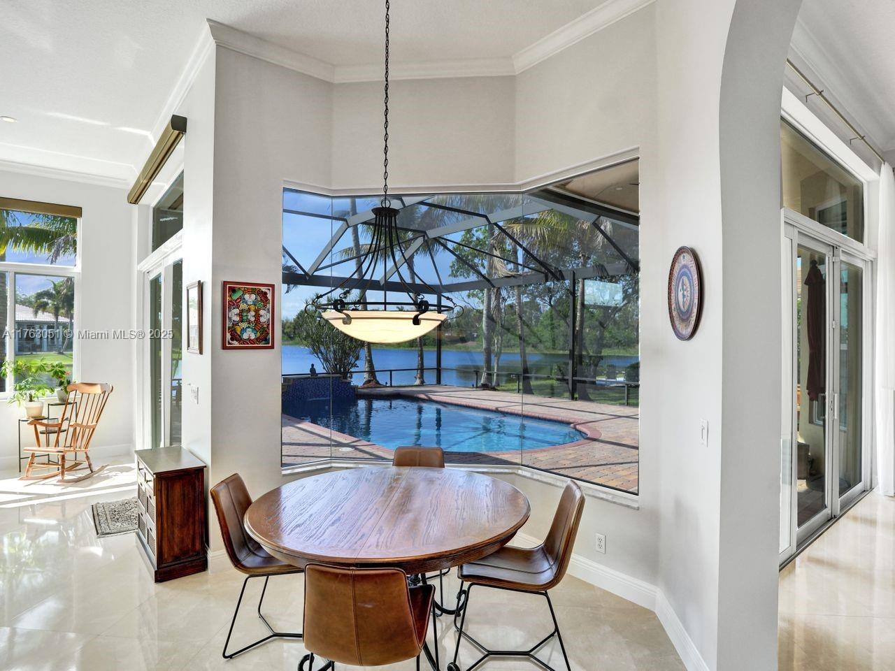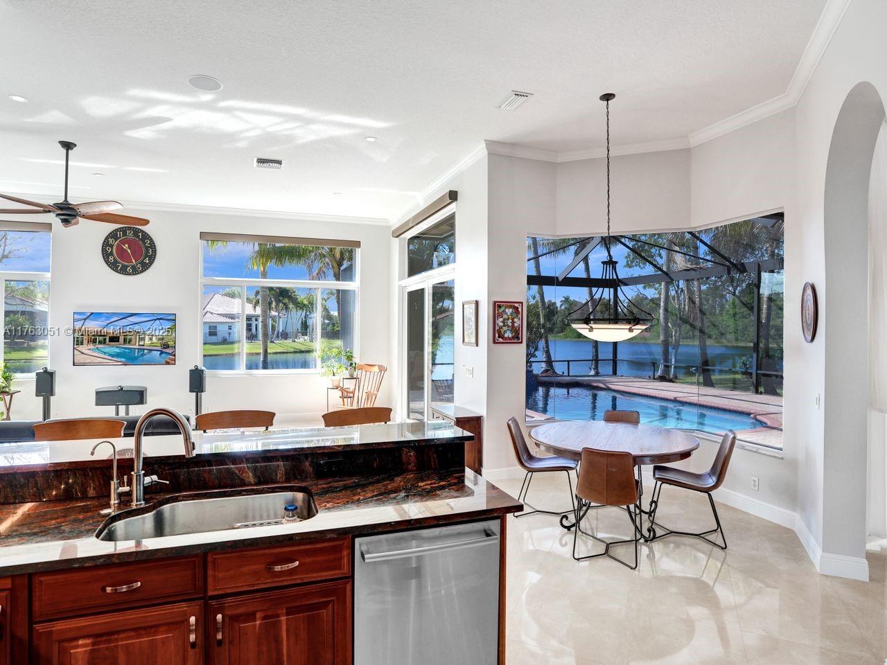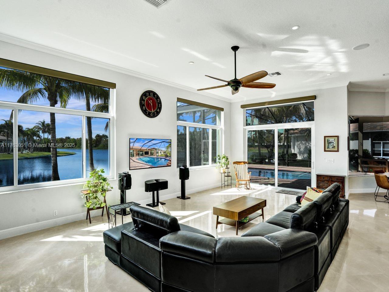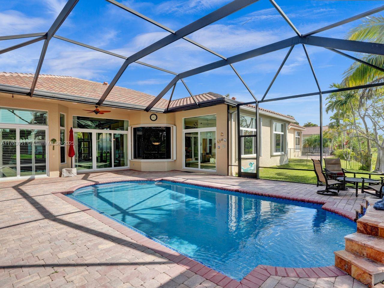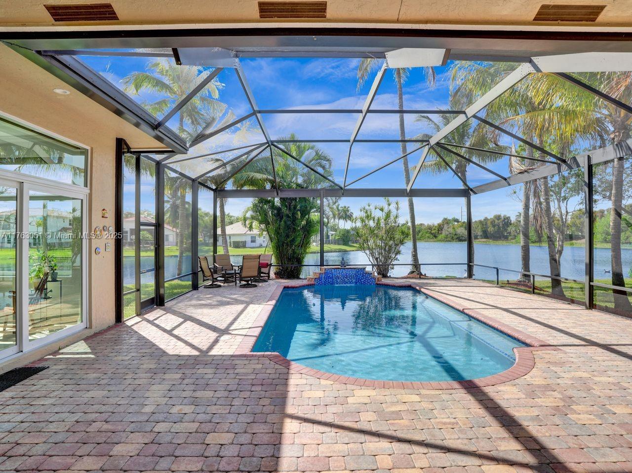 Spectacular ONE-STORY completely UPDATED LAKEFRONT home in the rarely available exclusive community of Edgewater at Weston Hills Country Club. This gorgeous home is situated on a peaceful CUL-DE-SAC lot with nearby community park. From the moment you open the front door, you have breathtaking PANORAMIC LAKE VIEWS! Features include 4 BEDROOMS PLUS OFFICE/DEN & 3.5 BATHS. Spacious split bedroom floorplan with volume ceilings, luxury flooring throughout, redone and EXPANDED KITCHEN and FAMILY ROOM, multi room high end audio system. New Screened POOL with water feature and Patio overlooking tranquil lake views! NEWER ROOF, IMPACT WINDOWS & DOORS, 3 CAR GARAGE with built-in cabinetry, storage, epoxy flooring and 2 EV charging stations & A+ Schools. This is the home you have been waiting for!