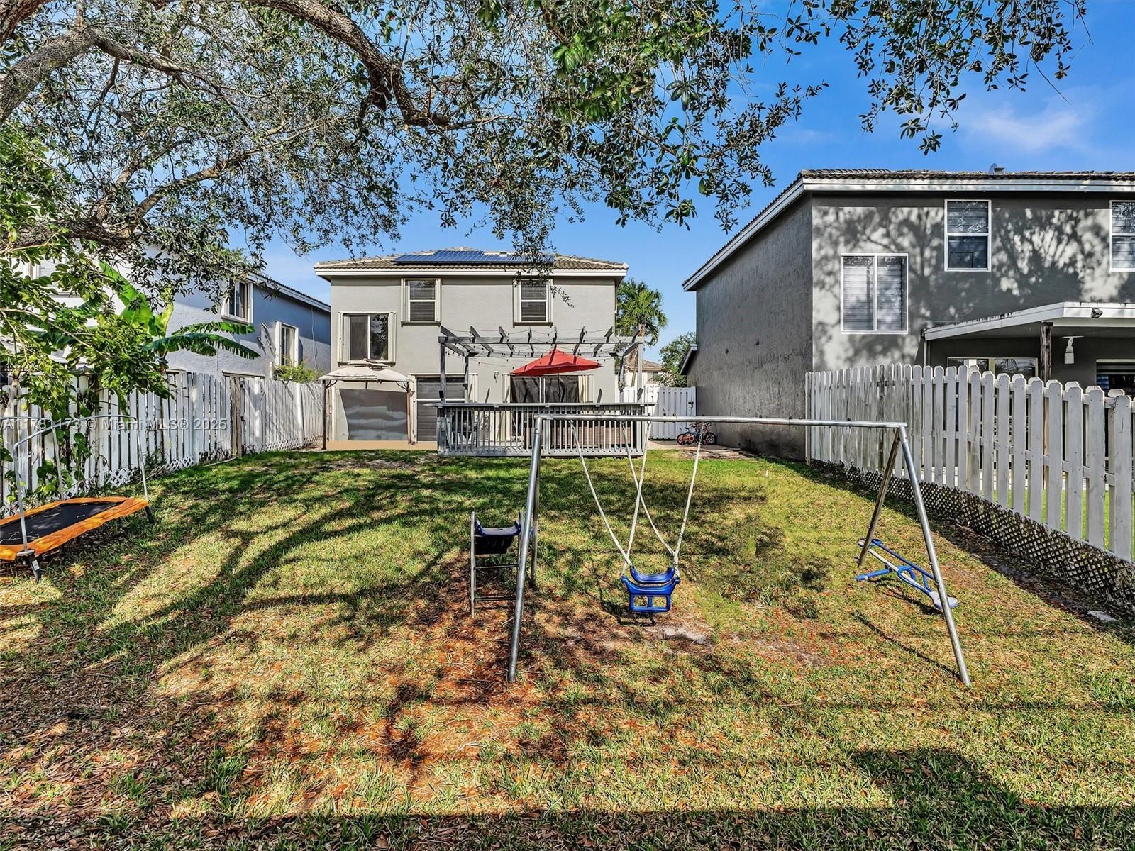 Beautifully updated 2-story single family home nestled in a quiet cul-de-sac within the exclusive Eagle Ridge community. This home boasts a brand new kitchen completed in January, new laminate flooring downstairs, tile upstairs, and modern zebra blinds throughout. The spacious layout offers abundant natural light, a large master suite with walk-in closet, and generously sized secondary bedrooms. Enjoy peace of mind with a newer roof and solar panels powering the entire home—both energy-efficient and cost-saving! Step outside to an expansive fenced-in backyard with a built-up patio deck, perfect for entertaining, kids, or pets. Ideally located near top-rated schools, shopping, and major highways. Don’t miss this incredible opportunity to live your #LivingInSouthFL dream!