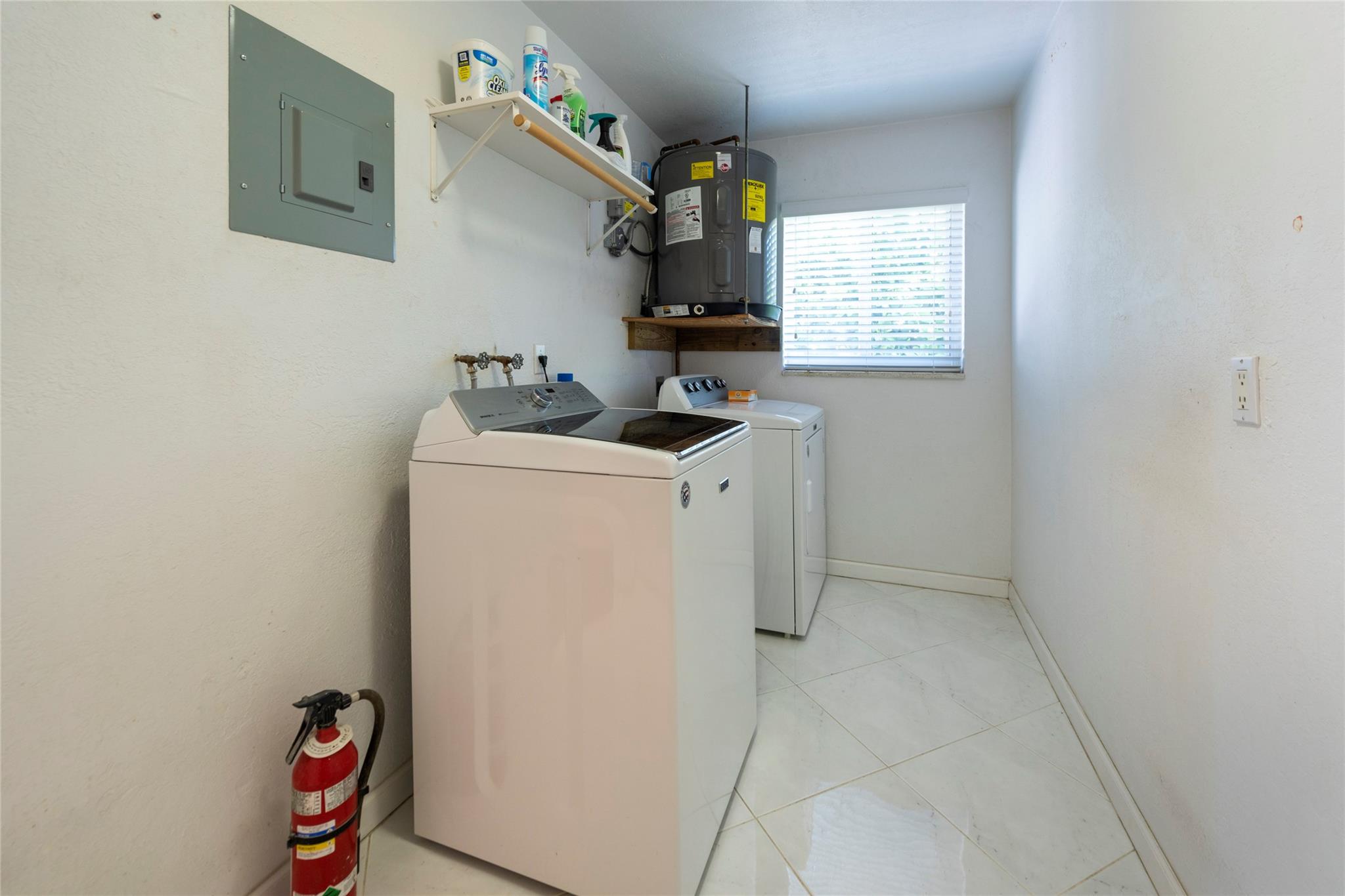 Stunning 2-Bed, 2-Bath Home with Private Pool & Modern Upgrades! This updated and upgraded 2-bedroom, 2-bath. This home boasts a brand-new private tropical pool. The impact windows and doors and additional hurricane panels provide extra security and peace of mind. The newer kitchen offers a stylish and functional space, while the new central AC system, installed less than two years ago, keeps the home cool and comfortable. Additional updates new hot water heater, new electric panel with a generator hookup, and an electrical connection for either an electric car charger or a small RV. The interior has recessed lighting and new attic insulation, creating a bright and energy-efficient atmosphere. An inside laundry room, automatic sprinkler system. A transferable termite protection contract.