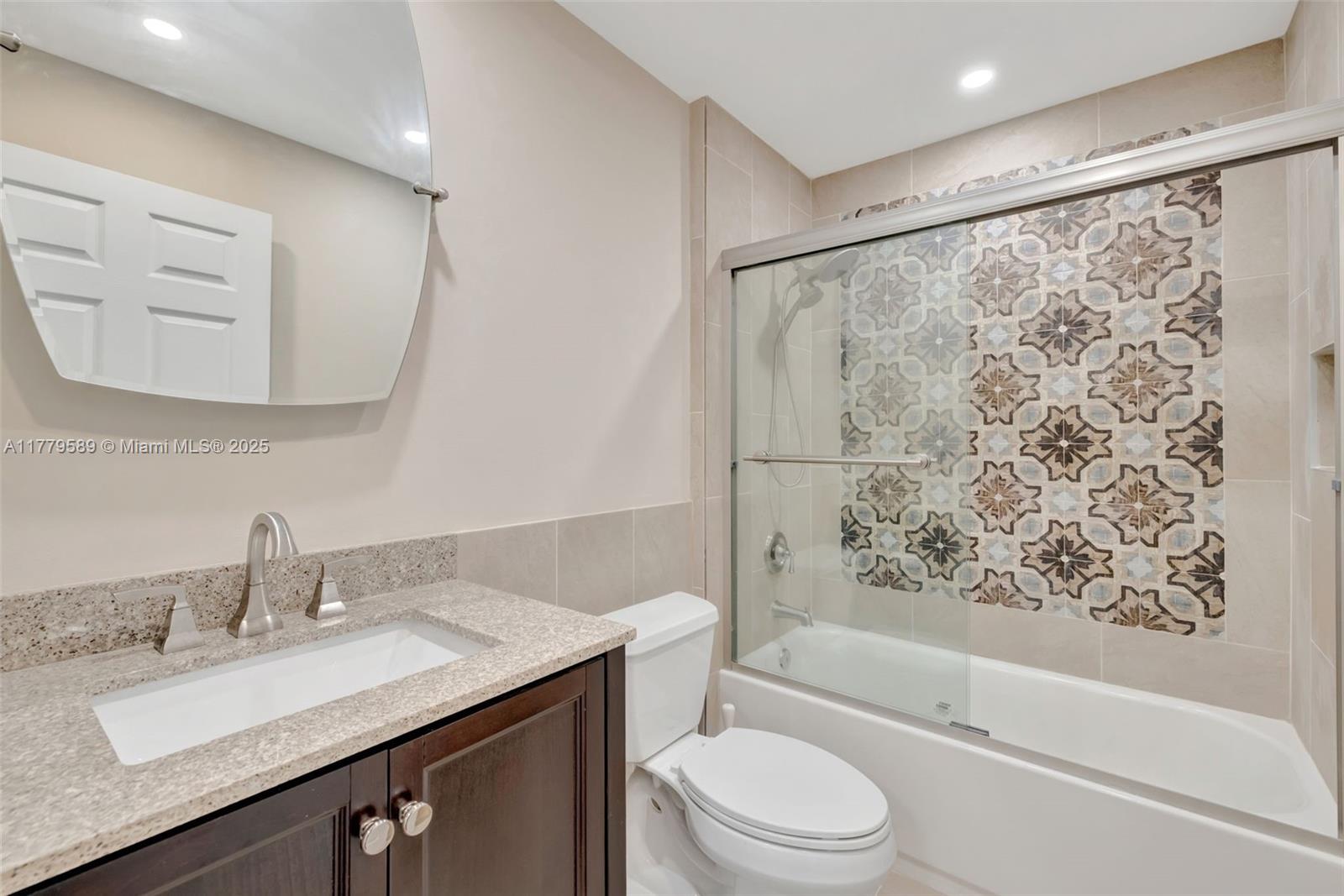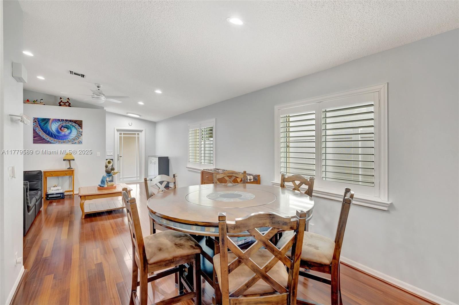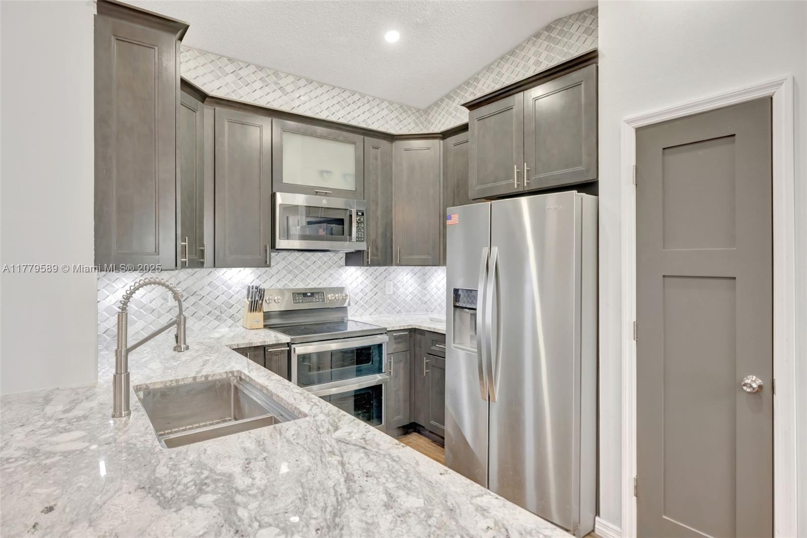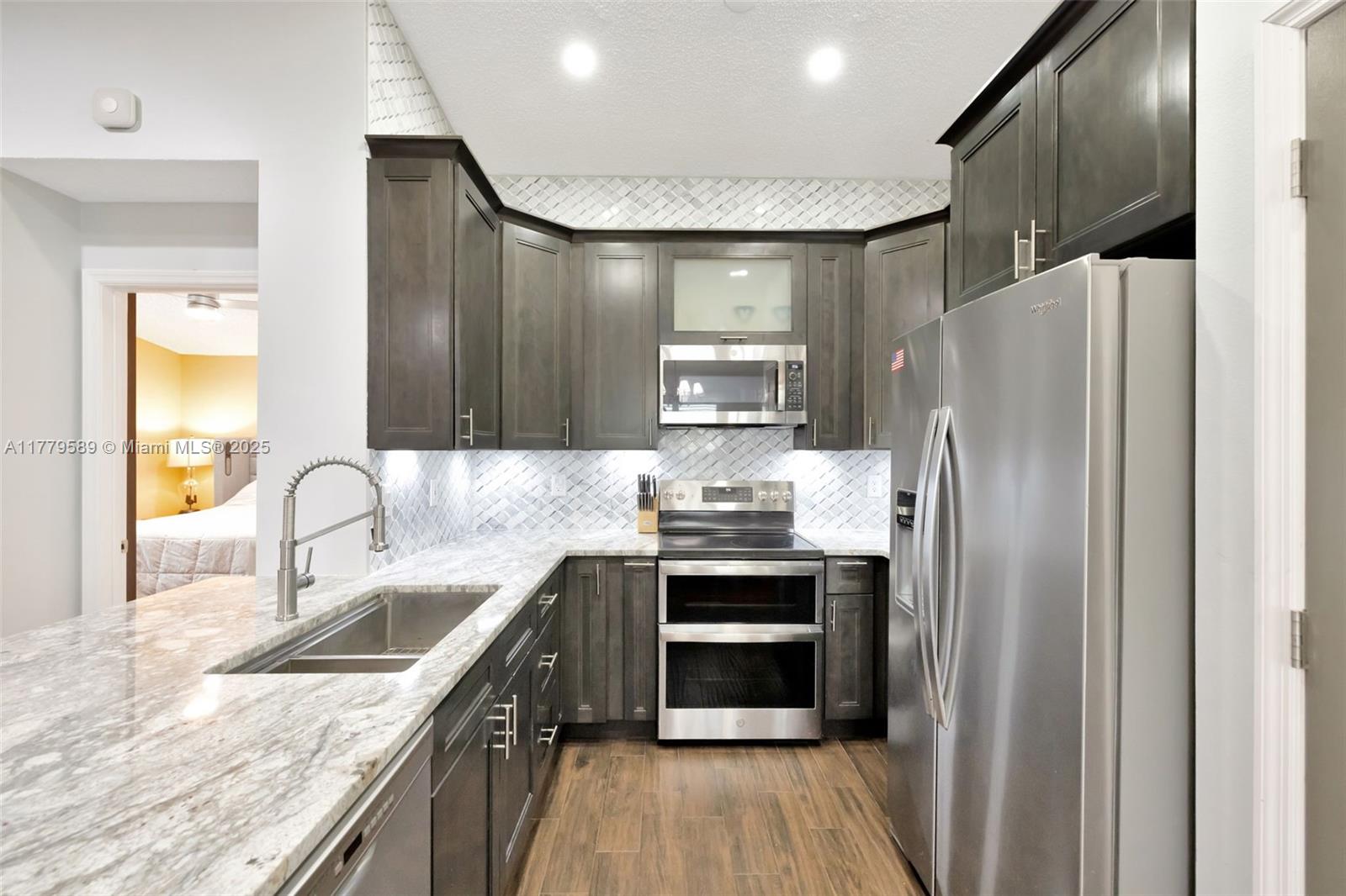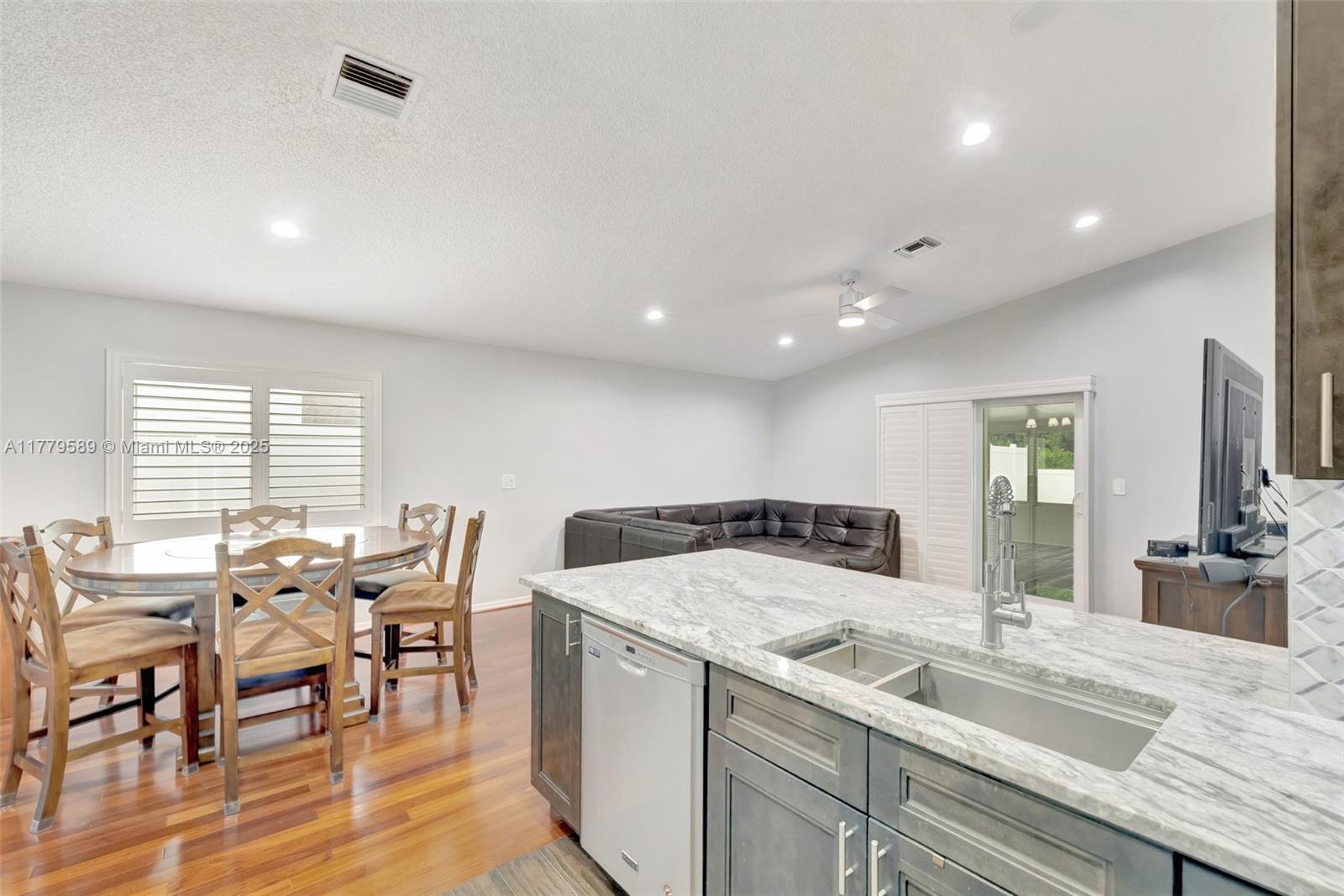 Discover this impeccably maintained 4BR/2BA home featuring a luxurious saltwater heated pool/hot tub. Situated on a premium lot w/no rear neighbors, offering privacy & modern comforts. The 2022 kitchen boasts 42” cabinets, SS appliances, quartz countertops, wood-look tile floors & a marble backsplash. Remodeled baths: Master (2021), 2nd (2020), fresh paint (2023), impact windows/doors (2022), & roof (2018) – both with warranties! Interior highlights include custom built-ins in the master, plantation shutters, & engineered wood floors in main living areas. The backyard Oasis features artificial turf, travertine pavers, screened Florida room w/acrylic windows, tile floors, & a PVC privacy fence. Modern upgrades with thoughtful details for convenience.