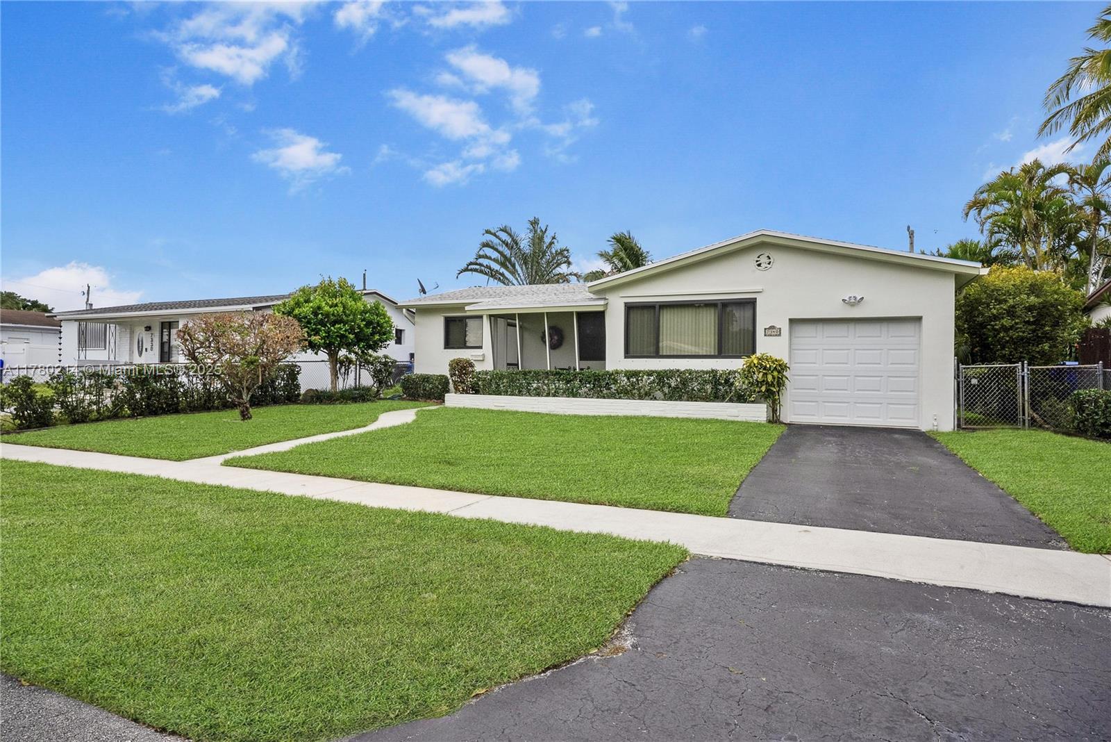 Cute and Quaint 2-Bedroom, 1-Bathroom home located in a nice, convenient Hollywood neighborhood. This home has been meticulously maintained with great pride and it shows! Large one car garage. Beautifully manicured yard and landscaping. Impact windows installed in 2023, new electrical panel installed in 2025, exterior painted and new gutters installed in 2024, new shingle roof installed in 2017, new AC installed in 2018. Plenty of room for a pool and expansion! NO HOA!