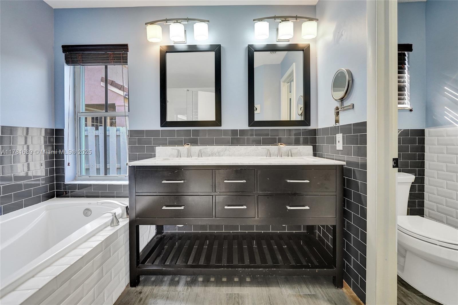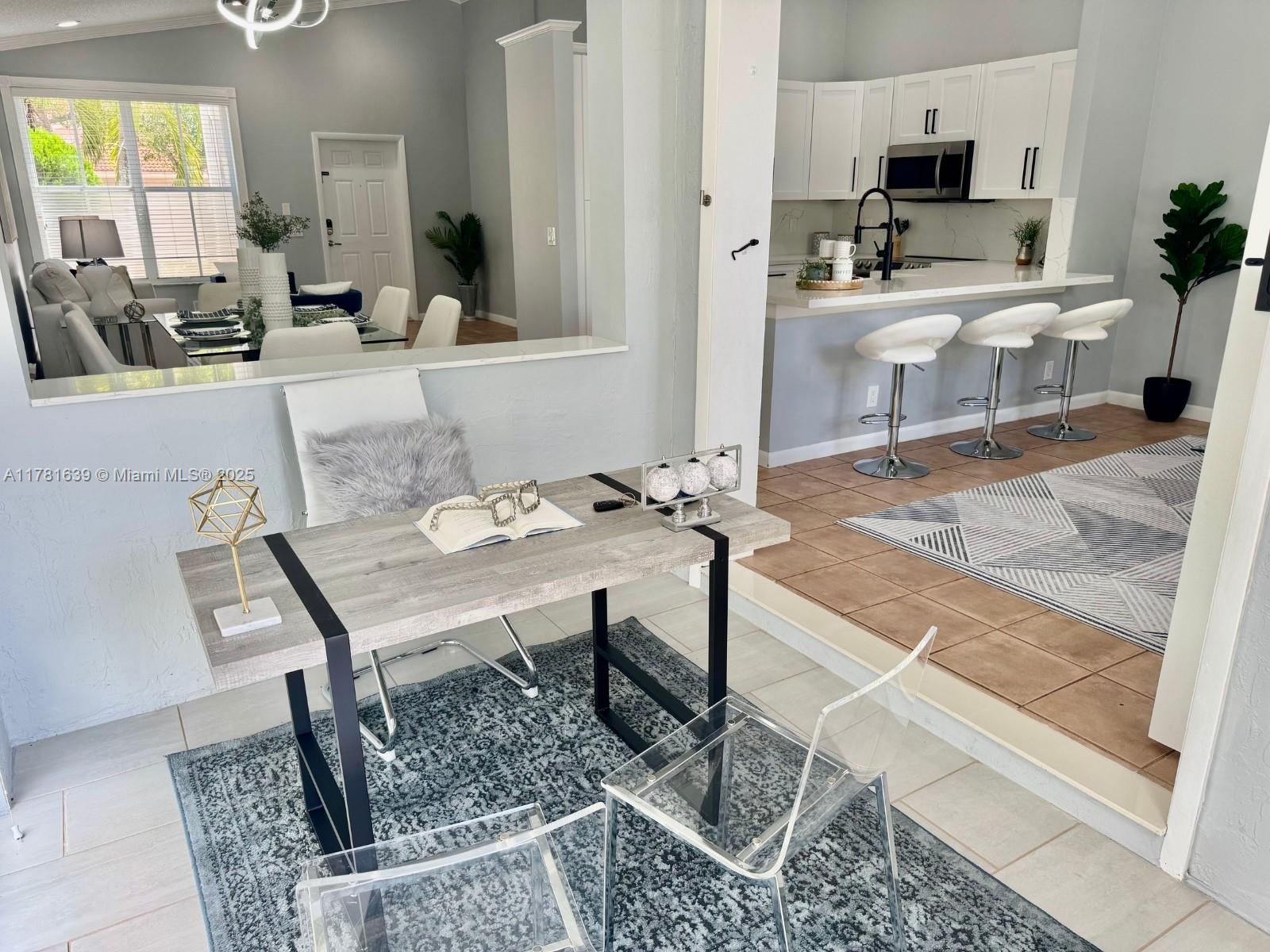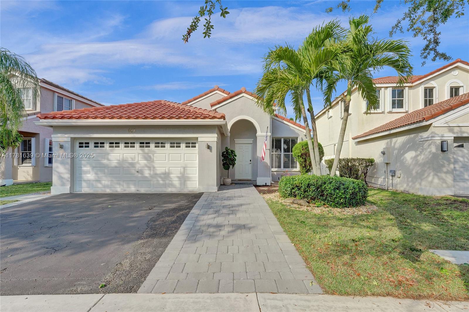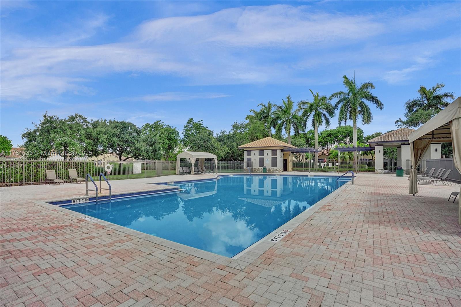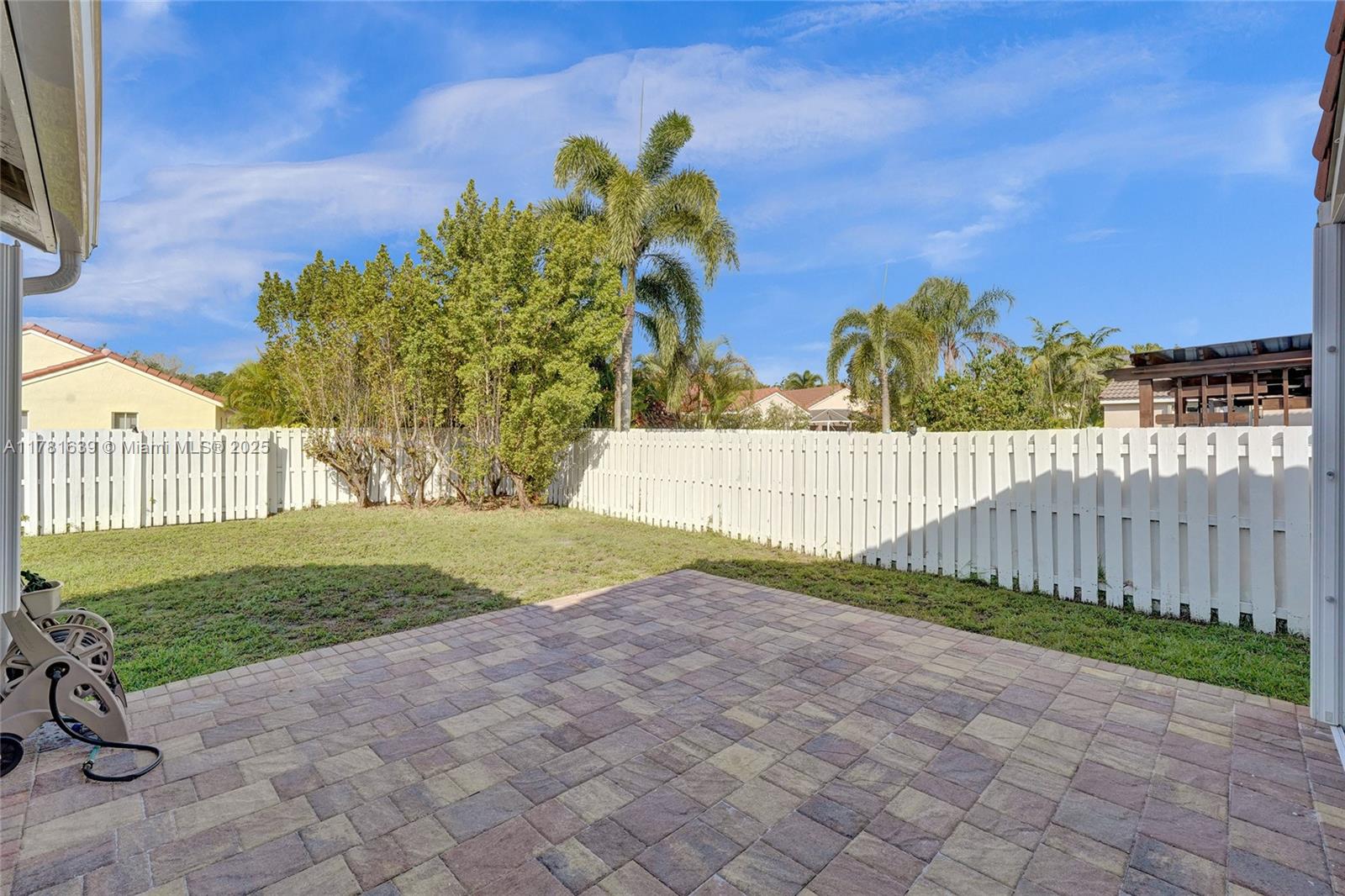 Updated & Move-In Ready in The Falls at Weston! Featuring 3 bed, 2 bath, office with 2021 roof, accordion shutters, freshly painted exterior/interior with extended driveway, new gutters and new water heater. Step inside to find a bright, open floor plan with vaulted ceilings, smart home features, and commercial-grade vinyl/tile flooring in select bedrooms. Renovated kitchen complete with Samsung appliances, Calacatta quartz countertops and backsplash, farm-style sink, and black-accented hardware. Garage comes with organizing wall panels and plenty of outlets. Laundry area features brand-new washer/dryer units and custom cabinetry with folding station. Fenced-in backyard with paved patio with plenty of space to design your dream pool or garden. Walk to A+ schools, parks, pool, and more.