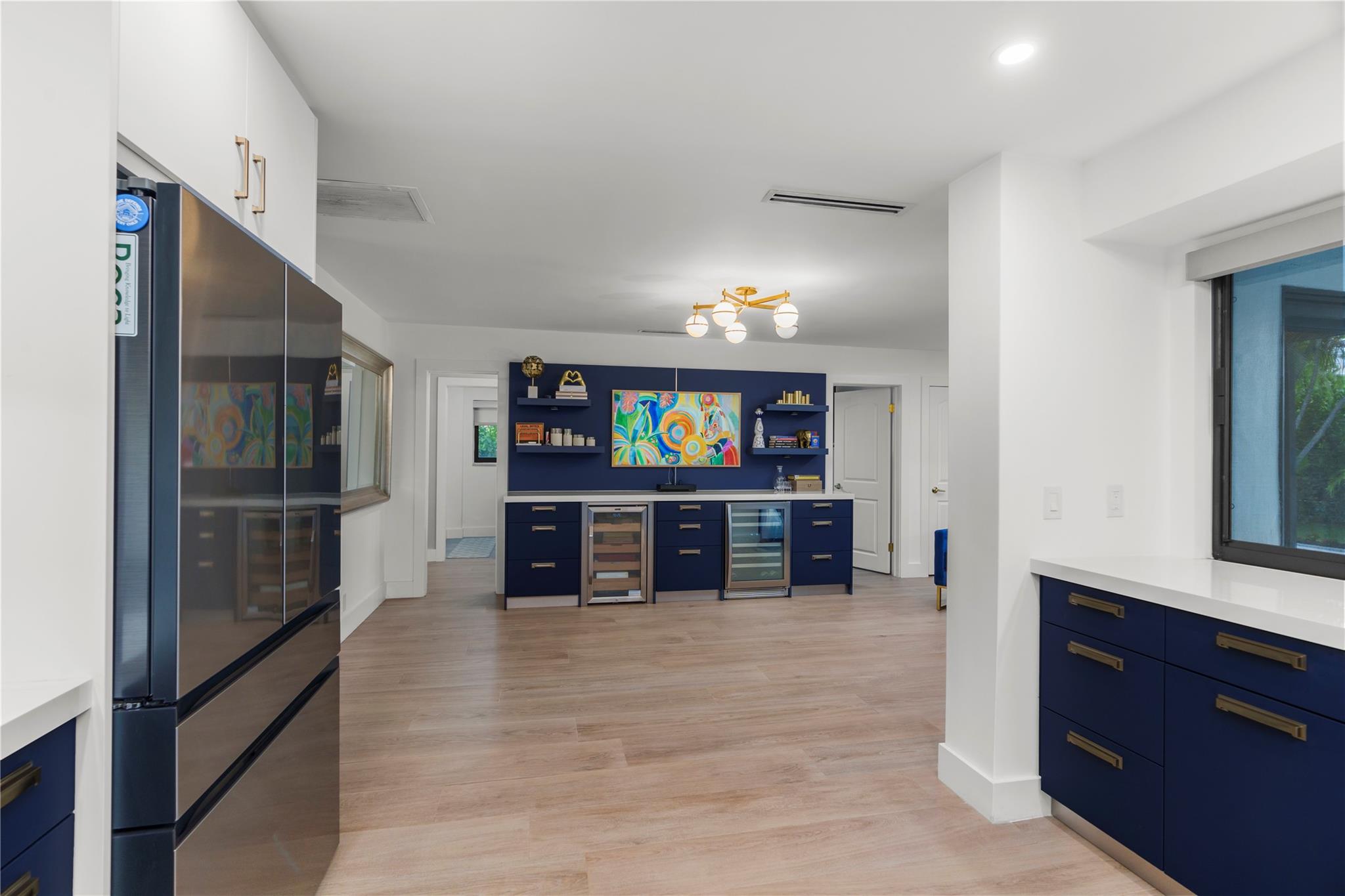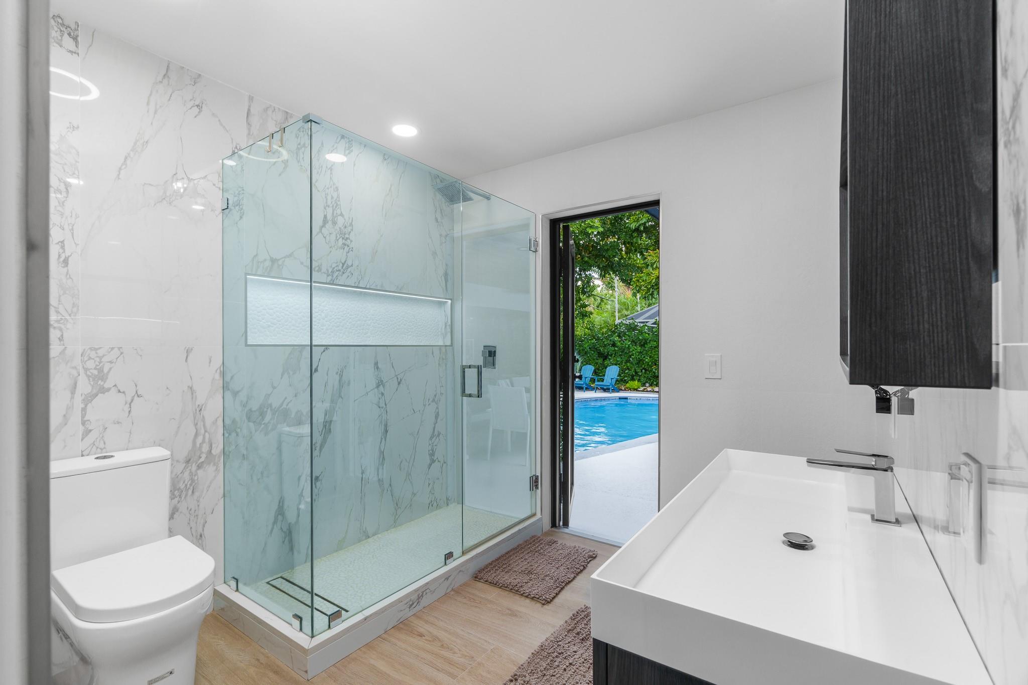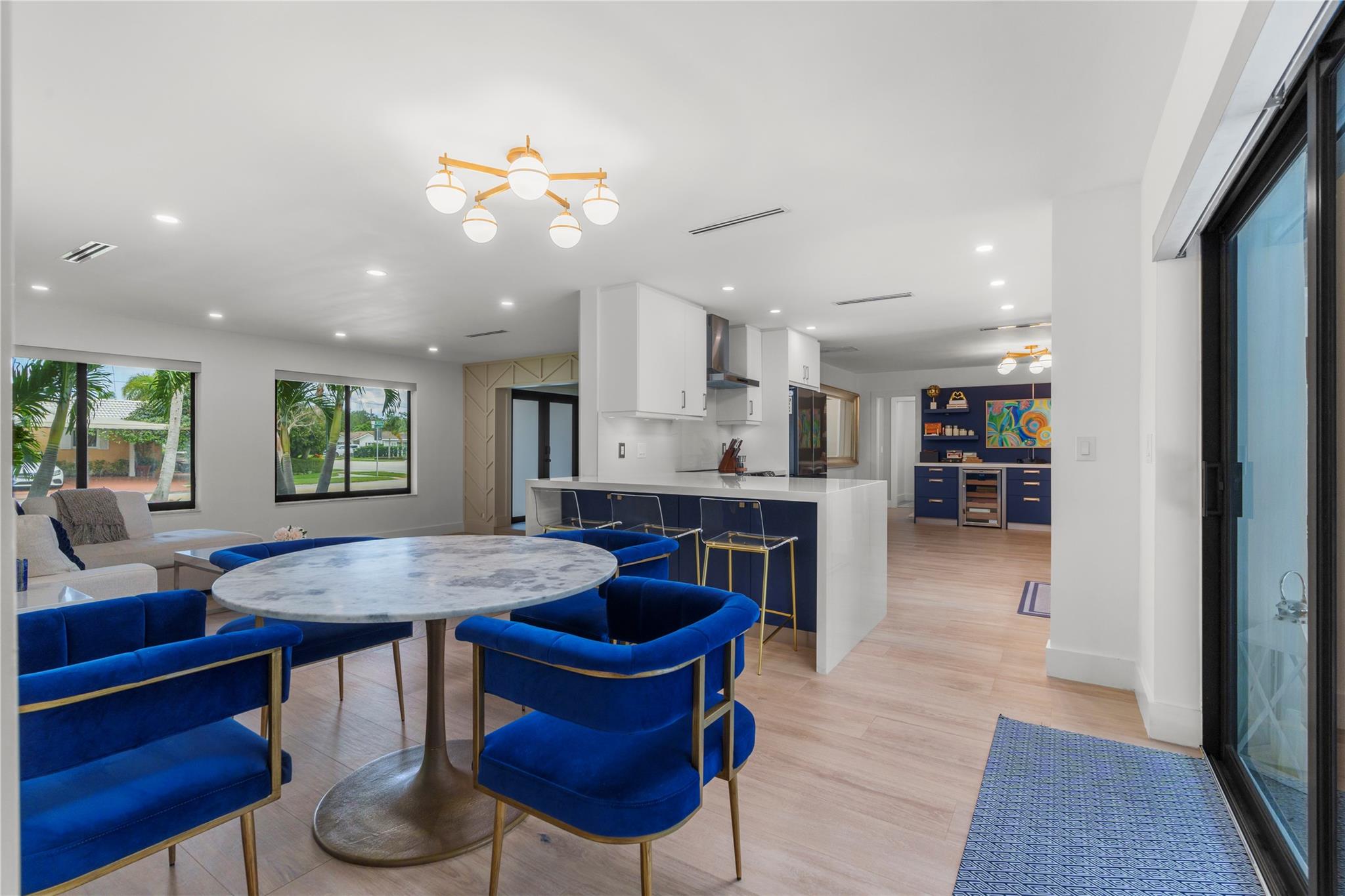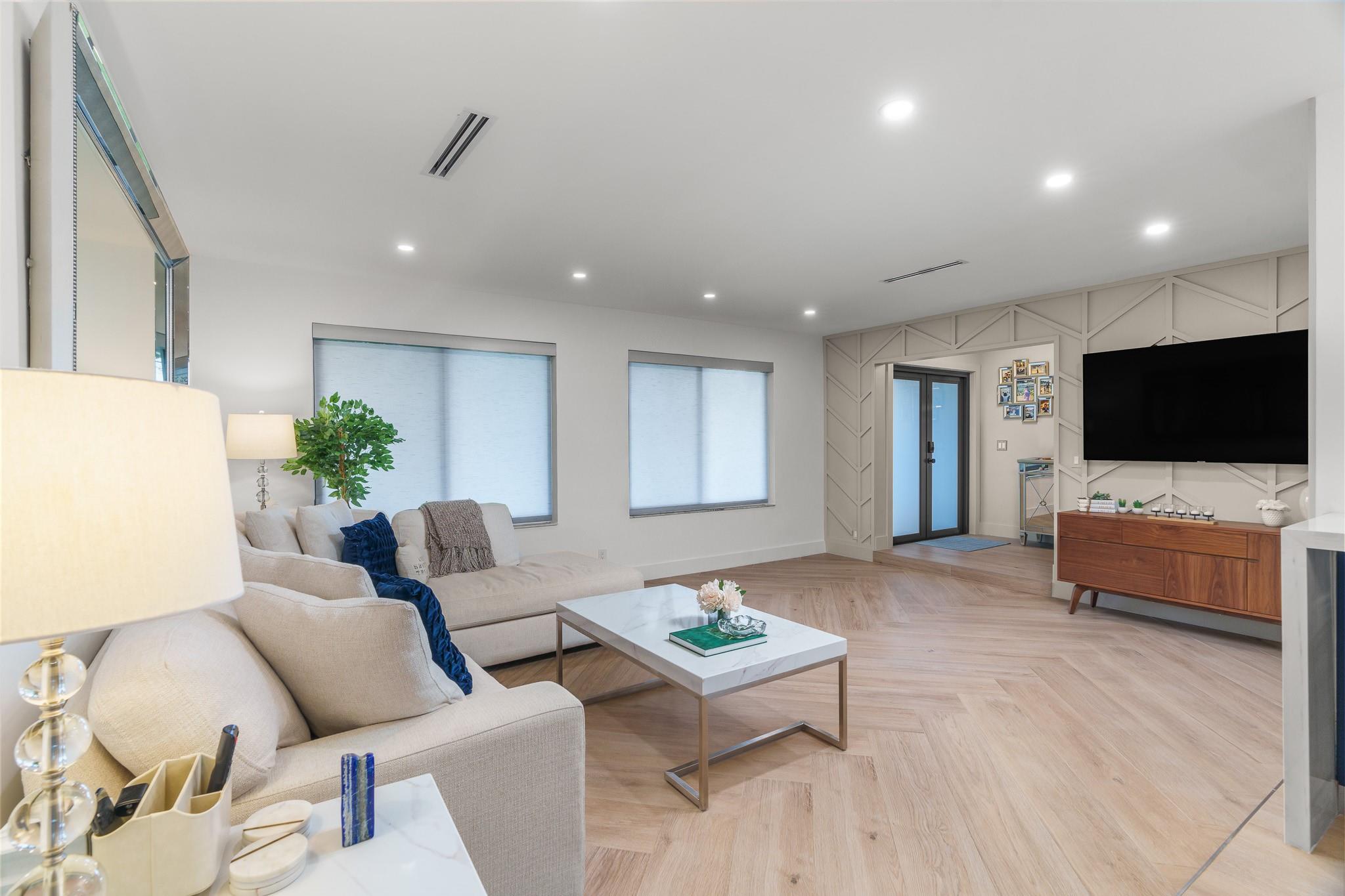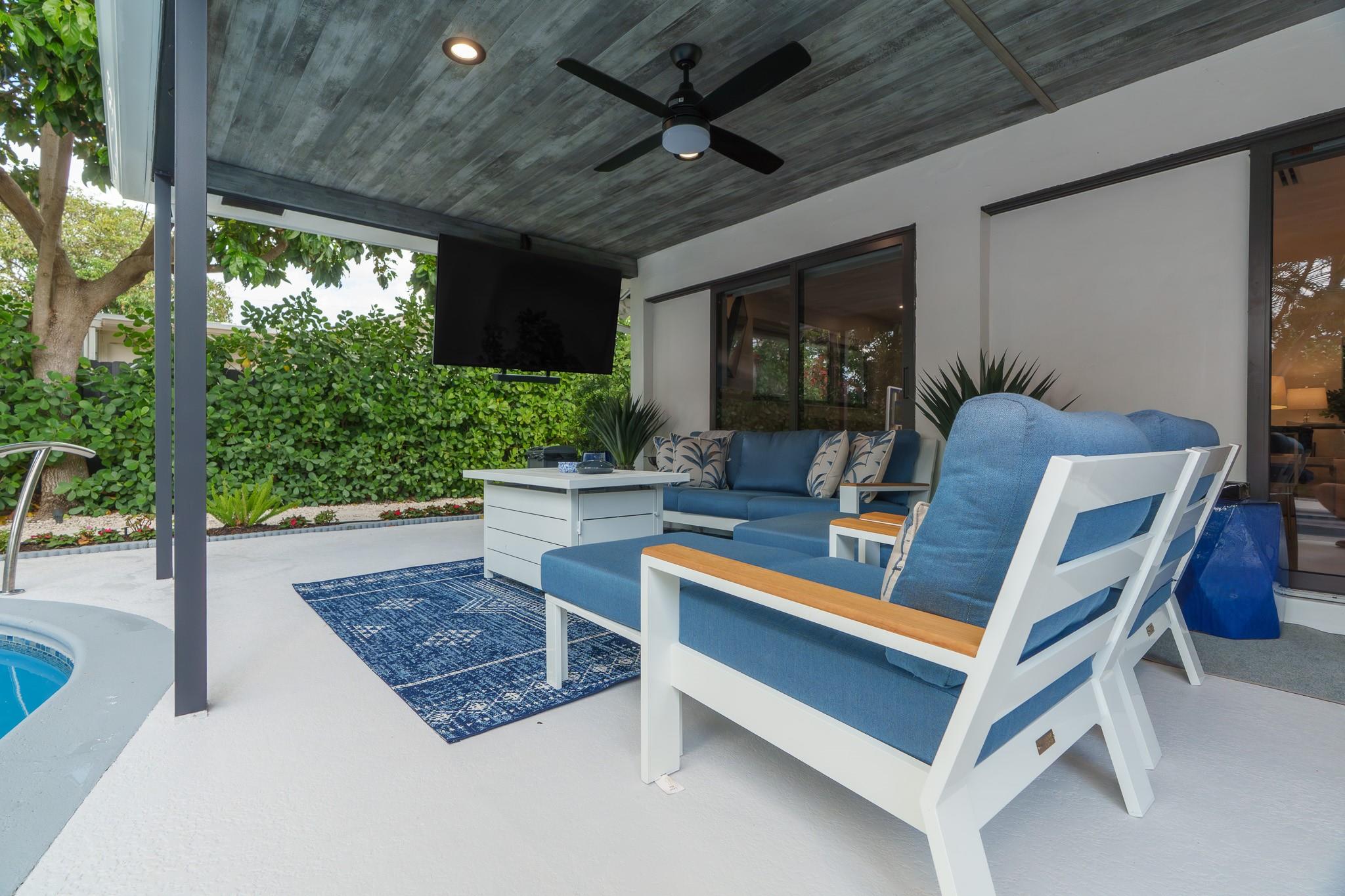 Exquisitely remodeled 3 bedroom, 2.5 bathroom residence showcasing a designer kitchen worthy of a magazine spread, thoughtfully placed tile and wood accent walls for an elegant modern feel, and impact windows/doors throughout. Fresh spa-inspired baths and new interior paint create a pristine, sophisticated ambiance. Outdoors, a brilliant blue resurfaced pool is the focal point from the expansive covered patio and lush tropical yard. New landscaping offers resort-style living, complete with mature fruit trees and new fencing for ultimate privacy. A true turnkey luxury retreat. Roof 2016 / AC 2022