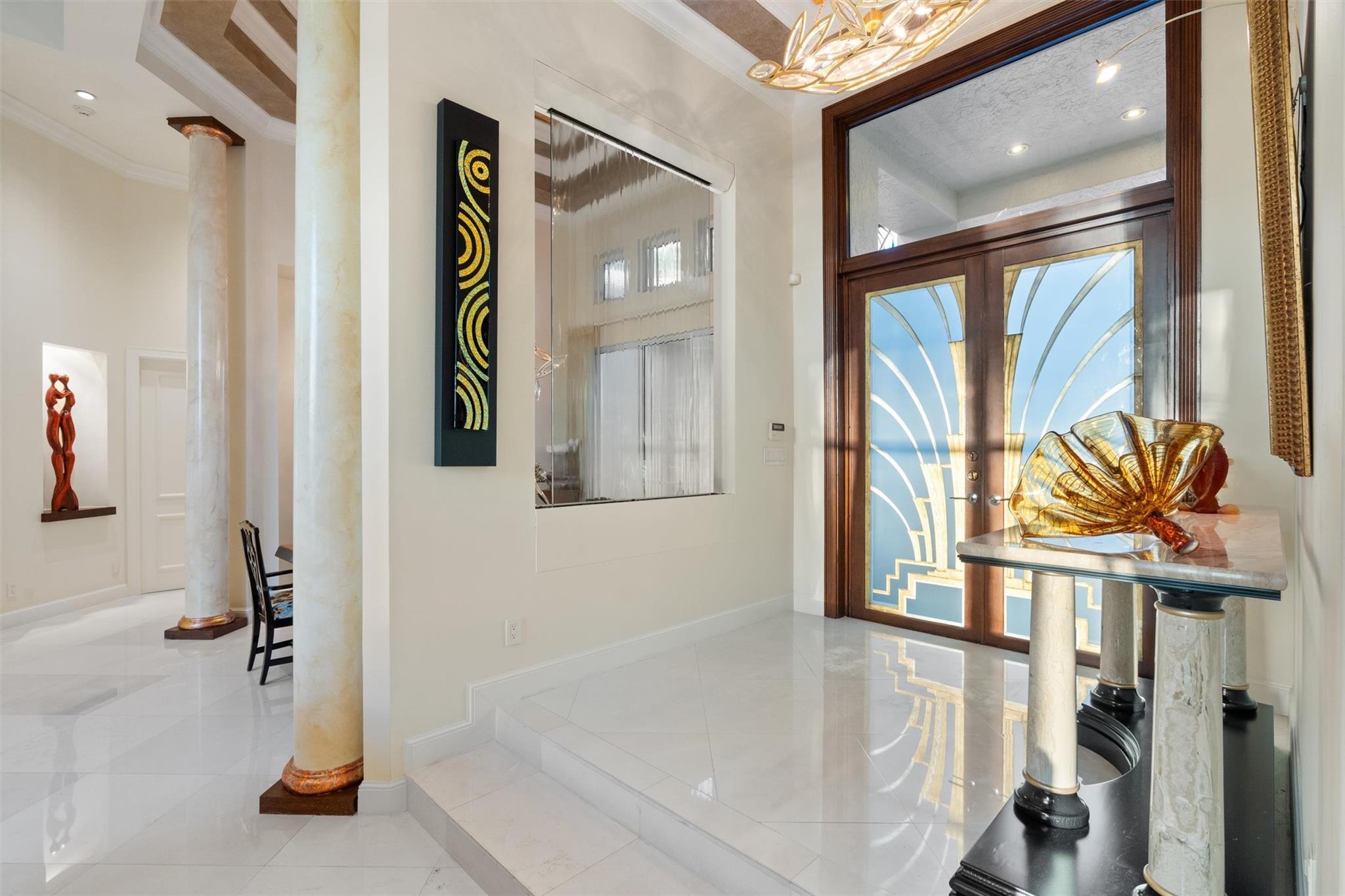 RARELY AVAILABLE ONE STORY CUSTOM ESTATE WITH OVER 4000 SQ. FT. A/C OF LUXURIOUS LIVING ON PRIME WATERFRONT CUL DE SAC LOT IN HAWKS LANDING! LOVINGLY MAINTAINED AND PROFESSIONALLY RENOVATED, THIS SPECTACULAR 4 BEDROOM 6 BATHS PLUS OFFICE PLUS FLEX ROOM FOR GYM OR PLAYROOM IS A MUST SEE! AS YOU ENTER THROUGH THE DOUBLE CUSTOM IMPACT GLASS DOORS, YOU ARE WELCOMED WITH WITH A DRAMATIC WATERFALL FEATURE* DESIGNER DETAILS THRU OUT INCLUDING IMPORTED MARBLE FLOORING, MOTORIZED WINDOW TREATMENTS, BUILT-INS AND MORE* NEW CONTEMPORARY WHITE KITCHEN W QUARTZITE, S/S APPLIANCES INCLUDING TWIN SUB ZERO'S* WALK-IN PANTRY* SUMPTUOUS PRIMARY SUITE AND BATH* IMPACT GLASS* HEATED POOL AND SPA W HUGE PATIO W VIEWS OF THE LIGHTED FOUNTAIN AND LUSH LANDSCAPING* CIRCULAR DRIVE* LOOKS AND SHOWS BRAND NEW!