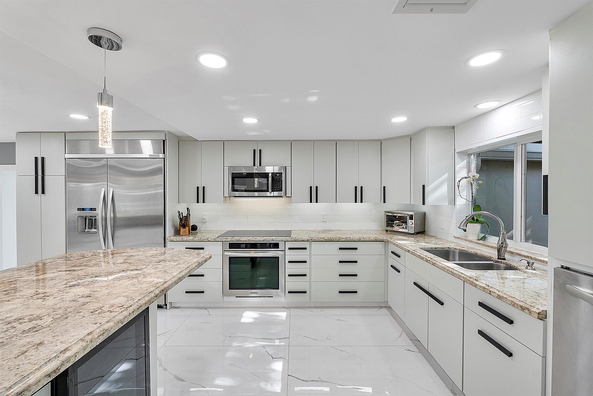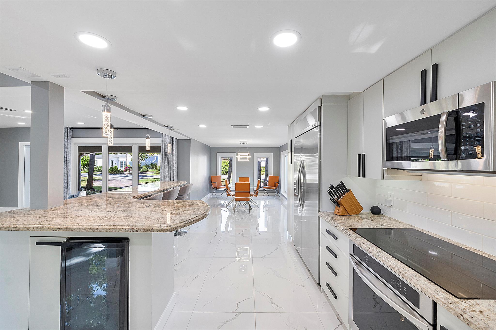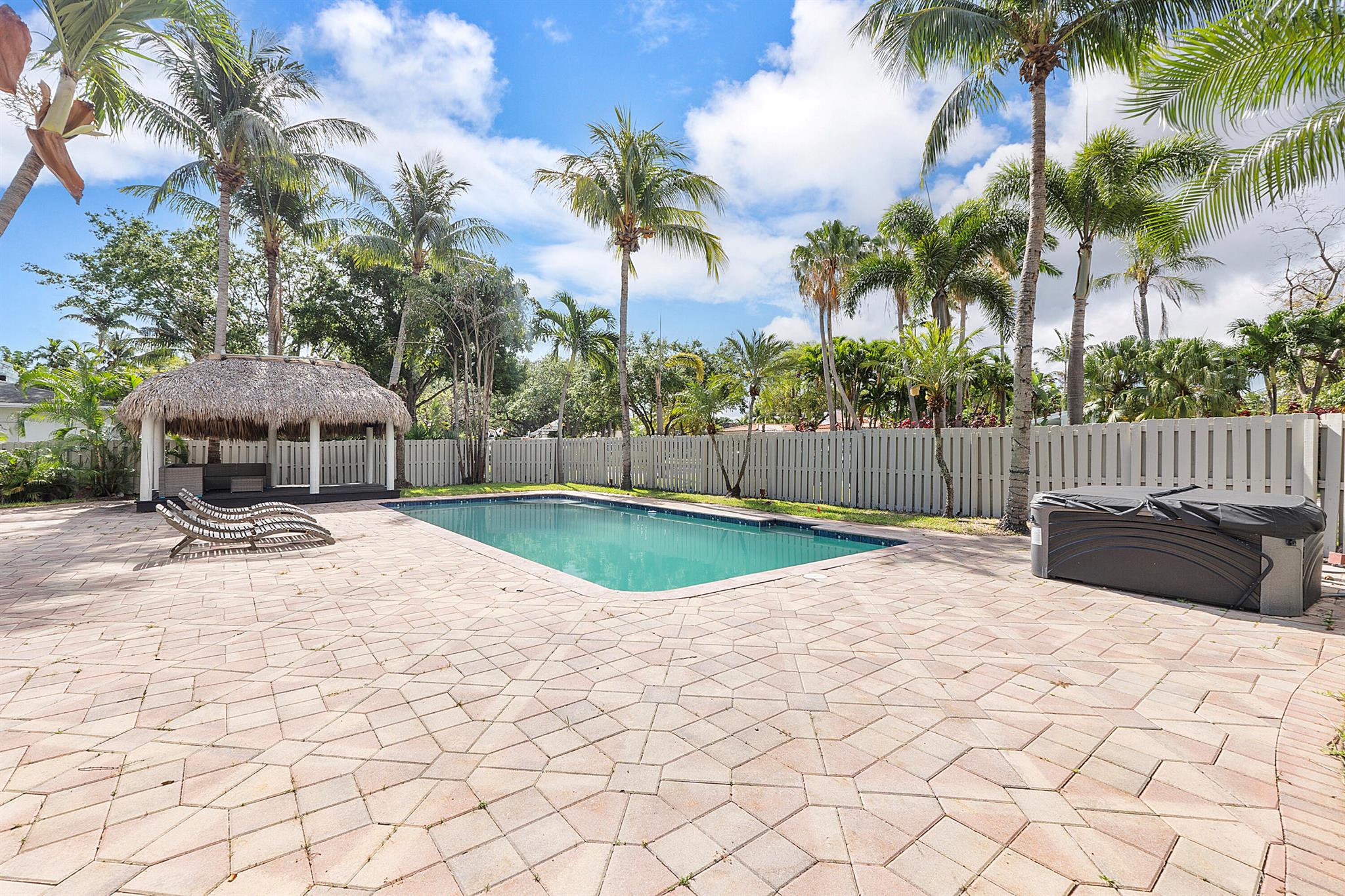 Welcome to your dream oasis in Poinsettia Heights! This rare gem sits on a DOUBLE corner lot spanning 10,495 sqft! Completely renovated & permitted with abundant natural light through PGT impact windows & sliders. Enjoy split, open floor plan & kitchen with upgraded induction cooktop & stainless steal appliances - including wine cooler. Home includes a versatile den - perfect for a home office or fitness room. Enjoy LED lighting, Euro fixtures & tankless water heater and worry free PVC plumbing. Dining room overlooks a serene garden, while the HUGE backyard serves as a private tropical paradise including large Tiki hut, ample entertaining space & a magnificent 15x30 saltwater chlorinated, heated pool with newer pump and heater. Roof installed in 2016! Live your ultimate Florida lifestyle!