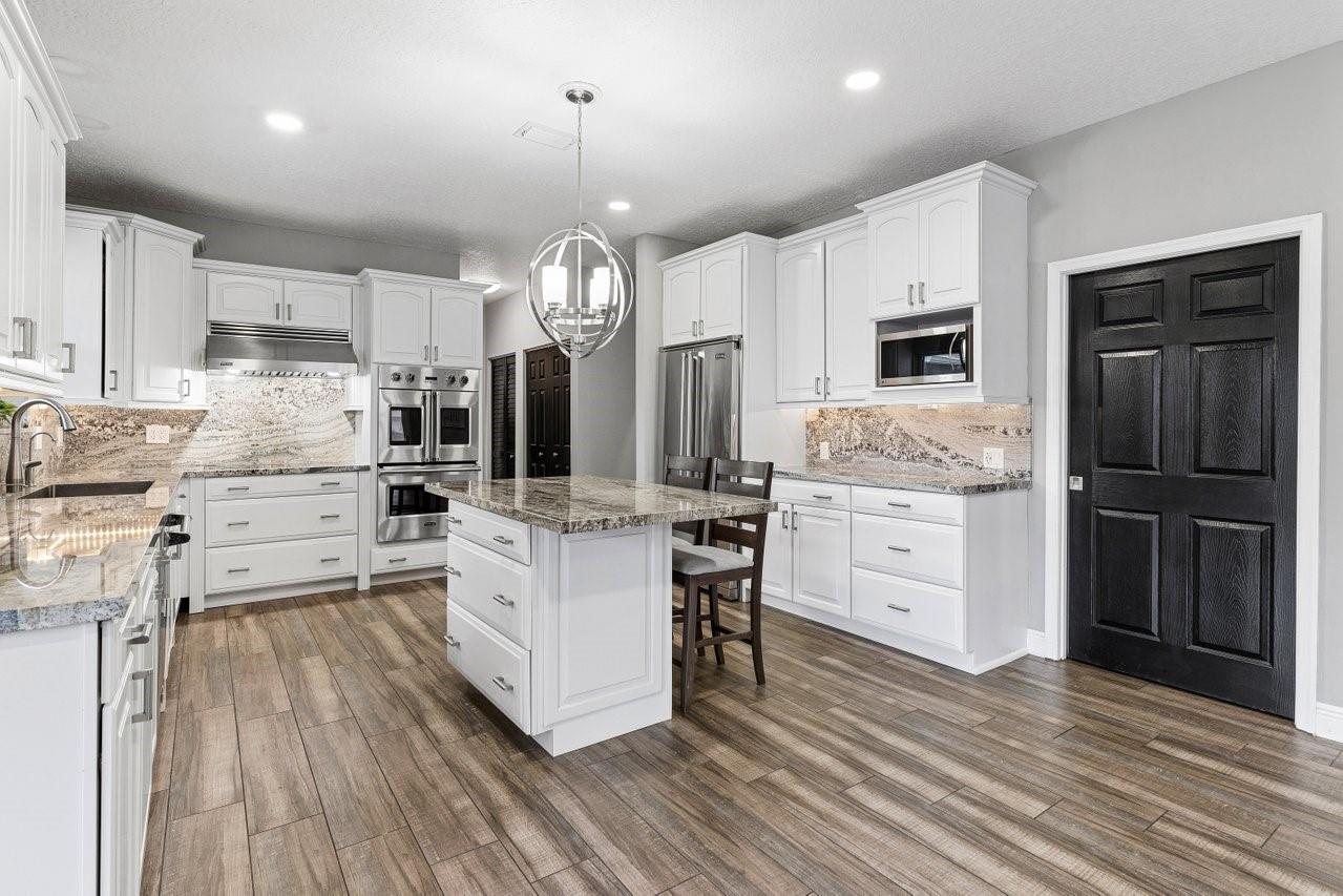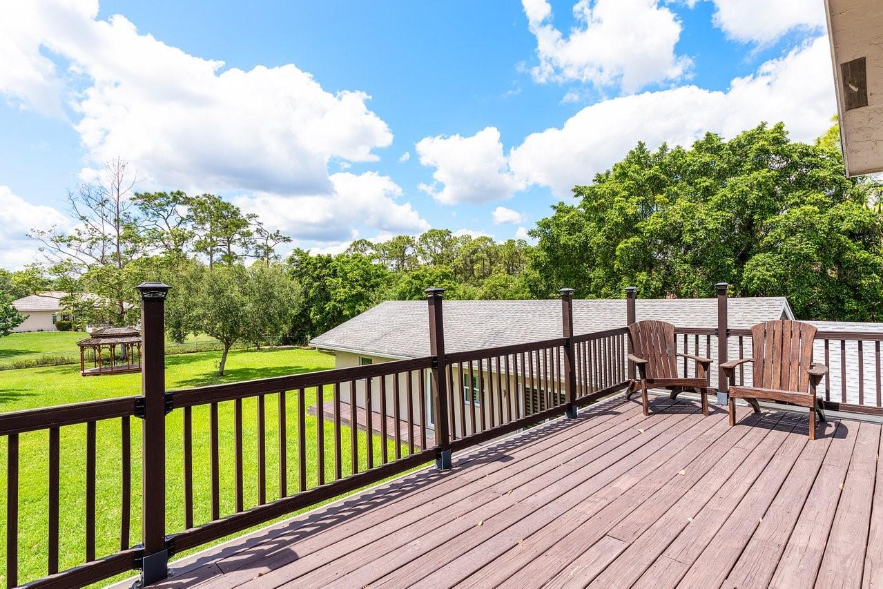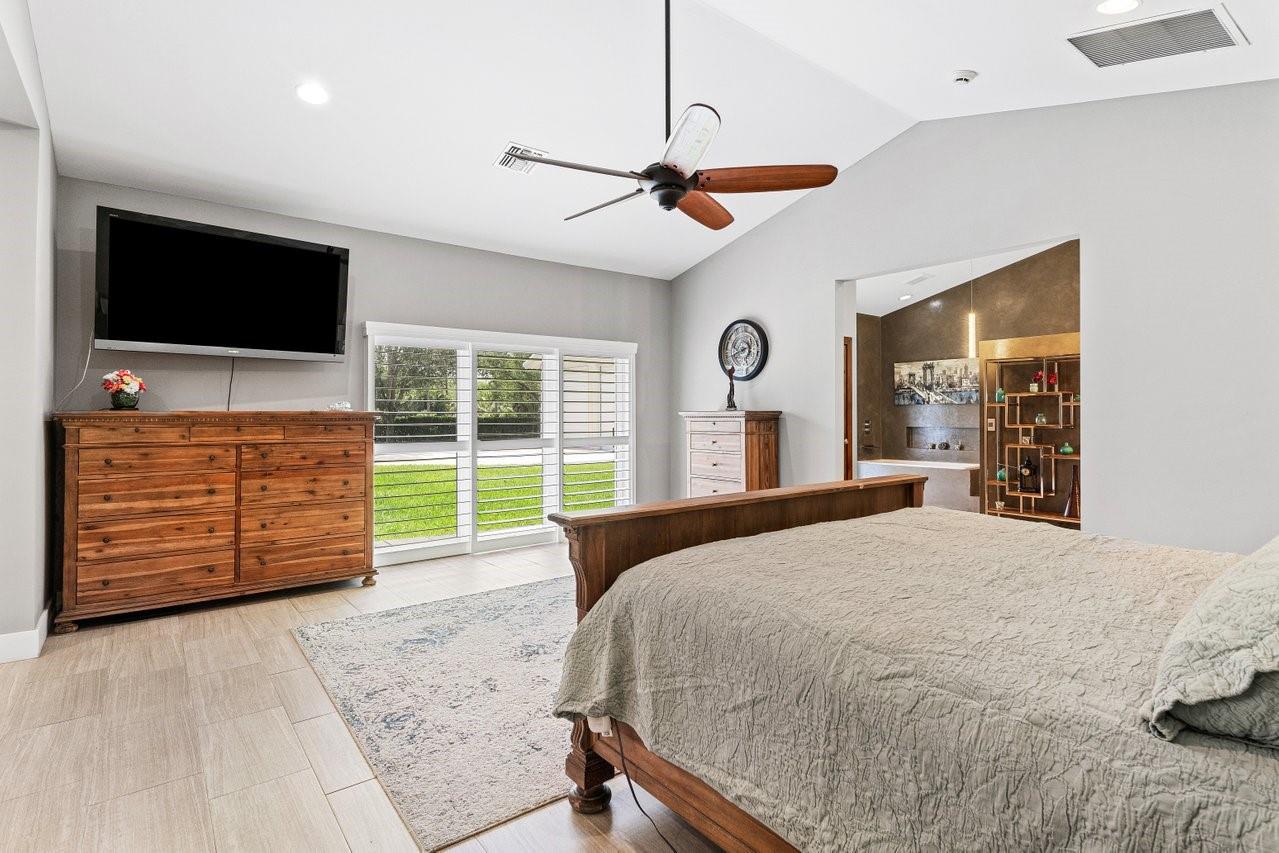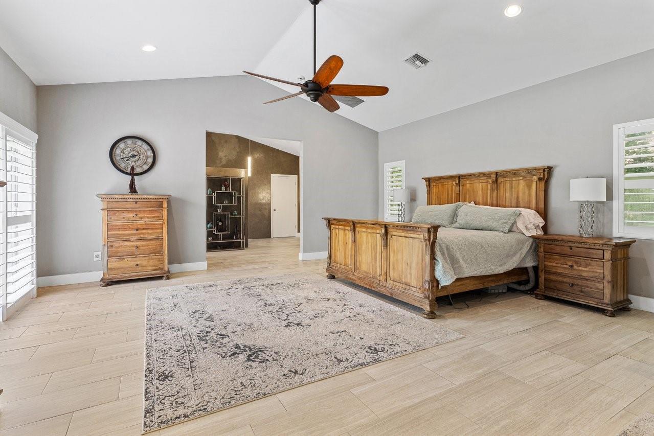 Beautiful & Updated home with a 6 Month Roof, 6+ Car Garage with 12 ft doors, & Impact Windows/Doors! Impressive curb appeal with a sprawling front lawn, manicured landscape, & private gates. Light & airy interior offering spacious living areas. Crisp white island kitchen with granite counters, Viking appliances. Two luxurious primary suites! The 1st floor primary suite is 1,100 sq ft, is perfect for the in-laws with an accessible design, sitting area, office/safe room, & spa-like bathroom with a tub/separate shower. The upstairs primary suite features its own balcony overlooking the backyard & a spa-inspired bath with a free standing tub & separate shower. Experience peace, & space in Pine Tree Estates offers. Bring the RV, Boat, Horses etc. Perfect for Multigeneration households. No HOA