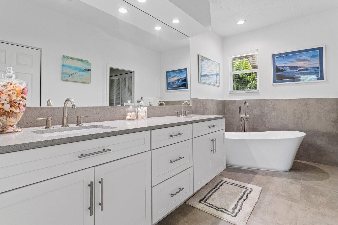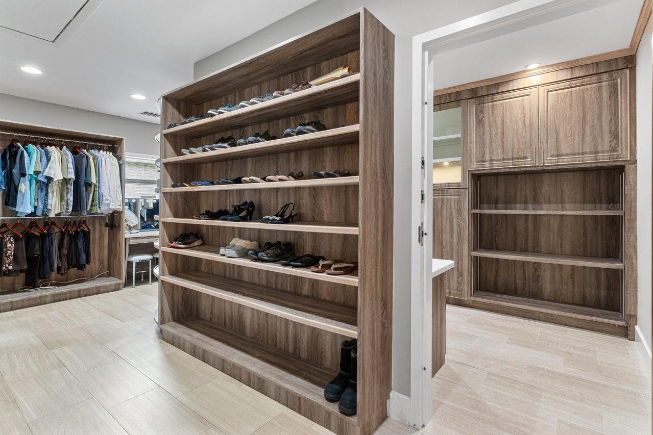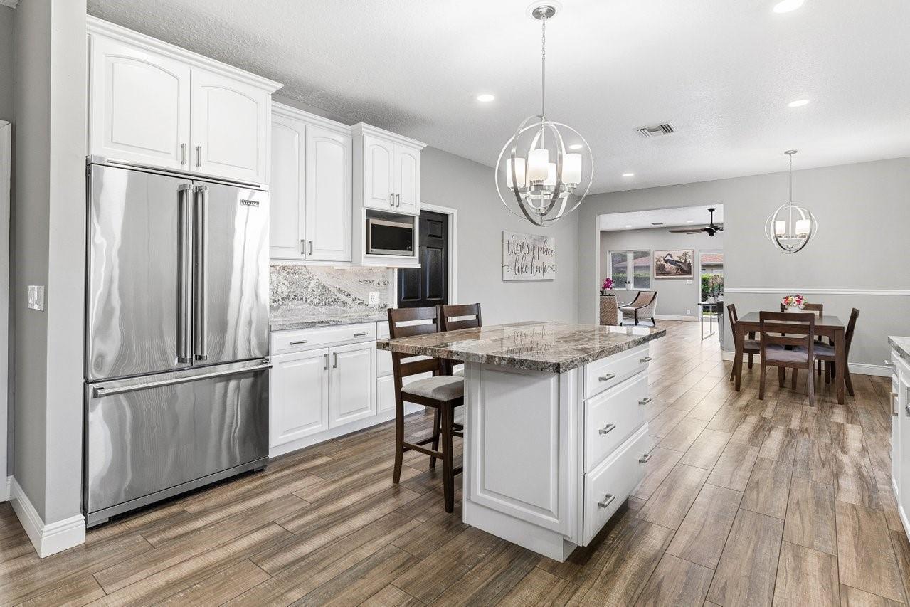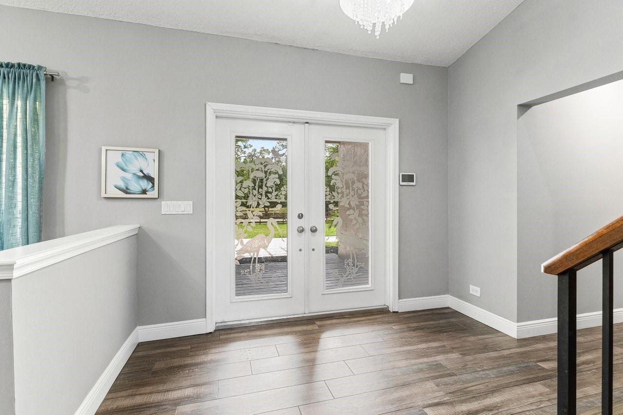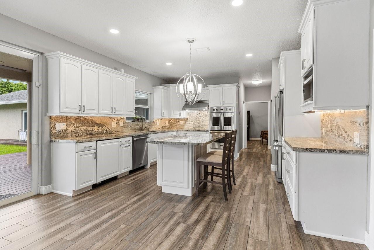 Beautiful & Updated home with a 6 Month Roof, 6+ Car Garage with 12 ft doors, & Impact Windows/Doors! Impressive curb appeal with a sprawling front lawn, manicured landscape, & private gates. Light & airy interior offering spacious living areas. Crisp white island kitchen with granite counters, Viking appliances. Two luxurious primary suites! The 1st floor primary suite is 1,100 sq ft, is perfect for the in-laws with an accessible design, sitting area, office/safe room, & spa-like bathroom with a tub/separate shower. The upstairs primary suite features its own balcony overlooking the backyard & a spa-inspired bath with a free standing tub & separate shower. Experience peace, & space in Pine Tree Estates offers. Bring the RV, Boat, Horses etc. Perfect for Multigeneration households. No HOA