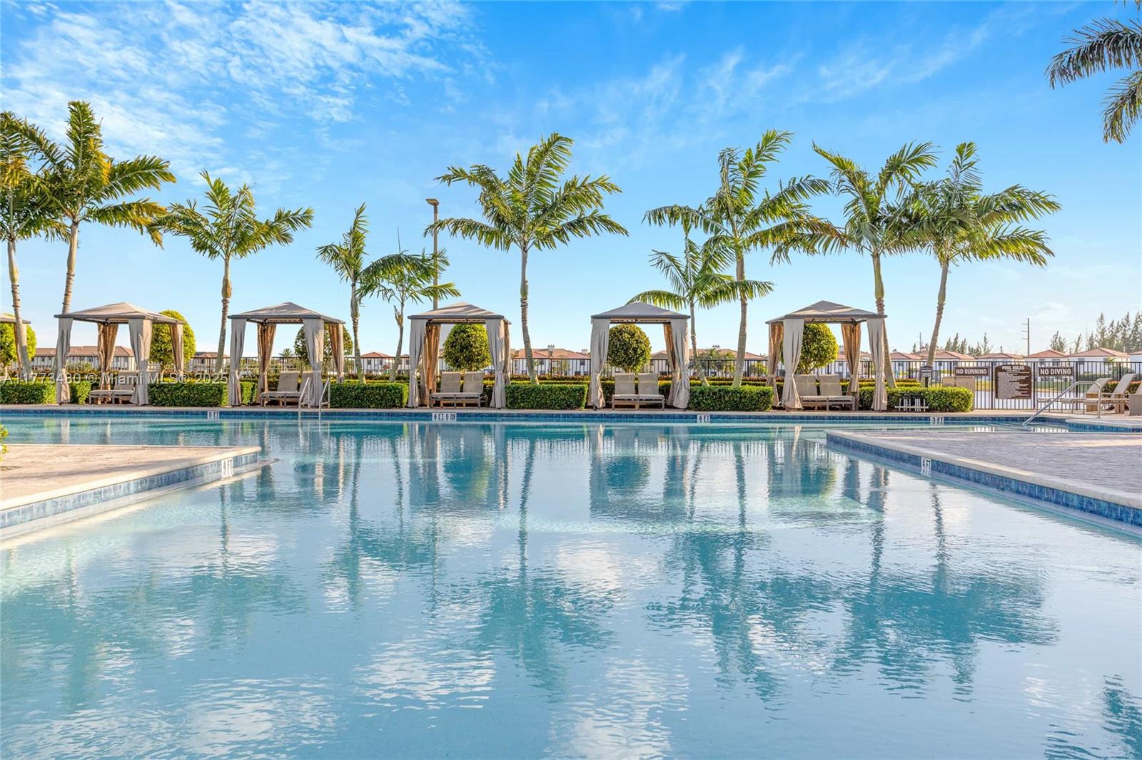 TURN KEY!! READY TO MOVE IN property!! This beautiful and spacious home offers great space for social gatherings and privacy with all the bedrooms upstairs. Home with more than $60K upgrades, including built-in bar, BBQ in the backyard, hurricane shutters, vinyl floors, window treatments, customized walk-in closets for storage space, kitchen sink and shower glass door upgrade, as well as fence. This single family home located in a gated community with resort style amenities such as pools, spa, fitness center, water park, maintained community, and guards. Located in the desirable community of Aquabella close to main highways and shopping malls. Brand new shopping center which mayor retail stores just a walking distance.