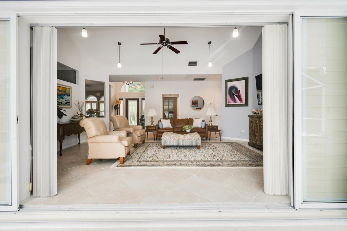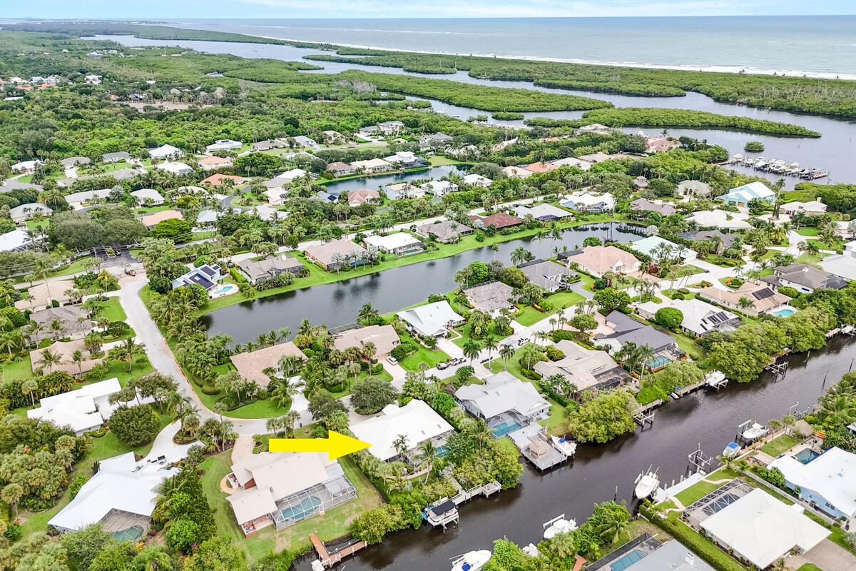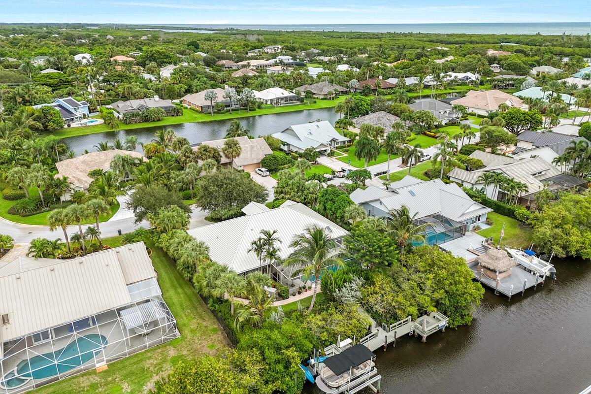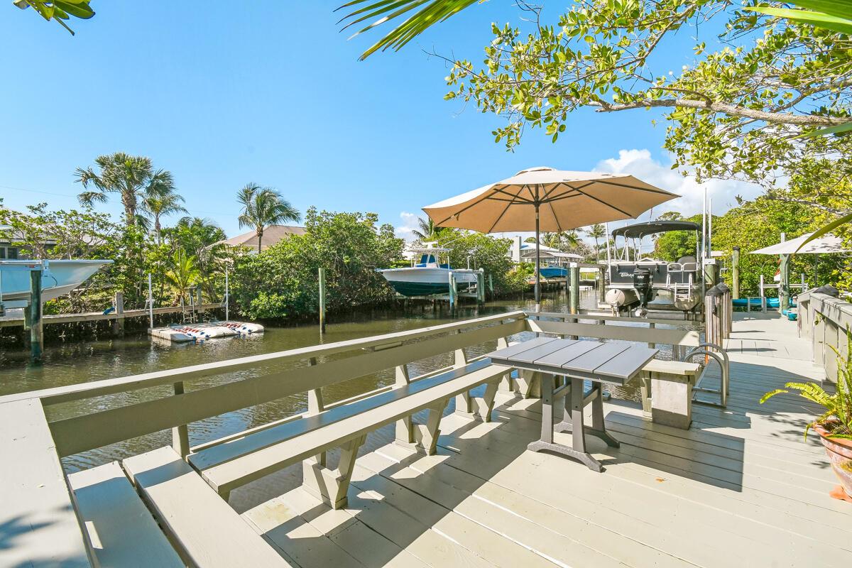 Located on a spacious .39-acre lot in a highly sought-after GATED community with only 37 homes, this beautiful WATERFRONT property offers unparalleled access to the Intracoastal Waterway with NO FIXED BRIDGES. The home boasts a private DOCK complete with a 13k lbs. boat LIFT, a 50-amp 120/240V service, aerator, fish cleaning table, and built-in seating--ideal for boating enthusiasts. Enjoy resort-style living with a private, screened-in heated POOL, a cabana bath, and a covered lanai that is perfect for outdoor gatherings. The floor plan seamlessly blends indoor and outdoor living, with the UPDATED KITCHEN featuring a new convection cooktop stove, stylish glass tile backsplash, breakfast bar, and ample dining space with direct access to the pool area.