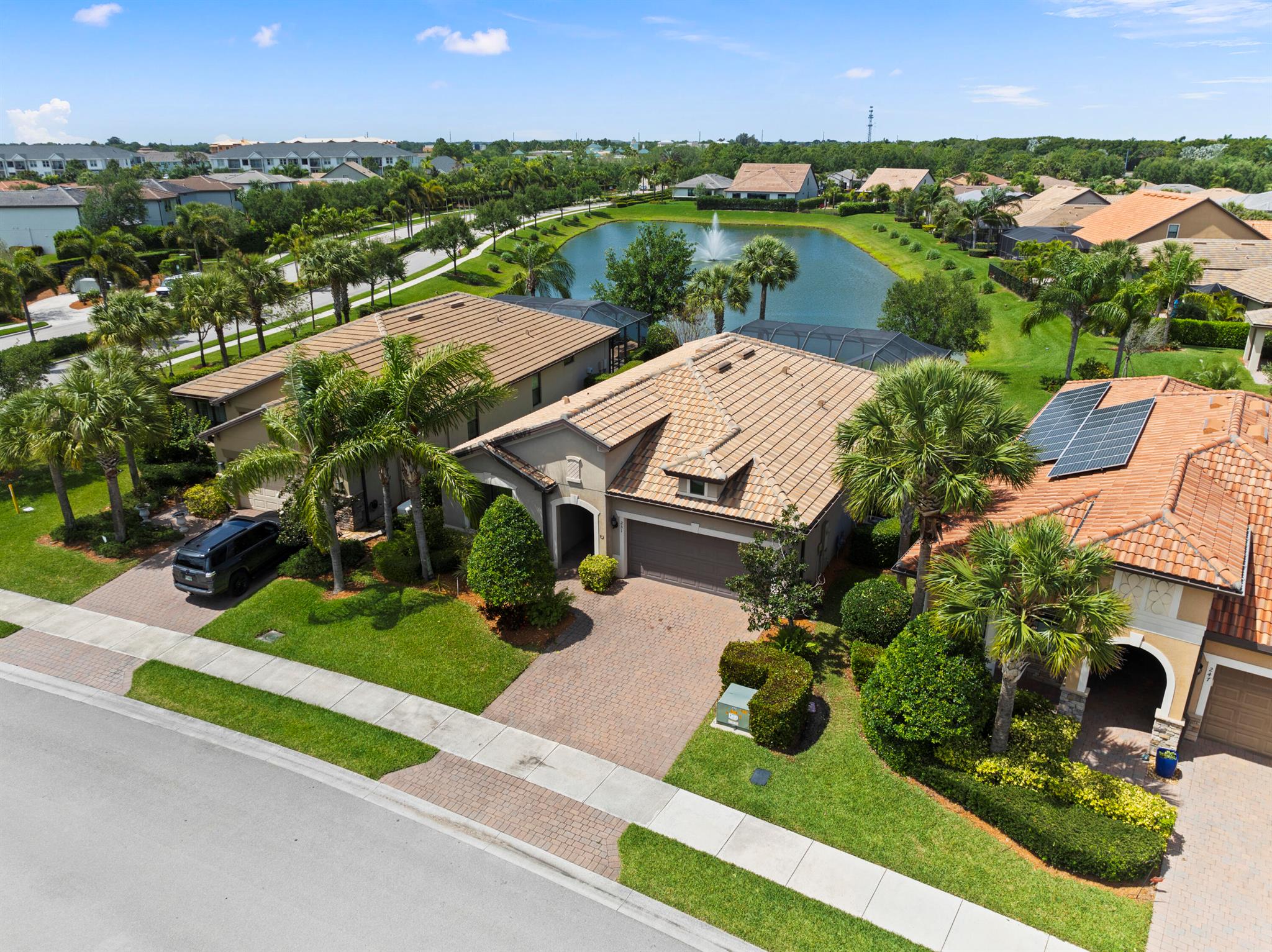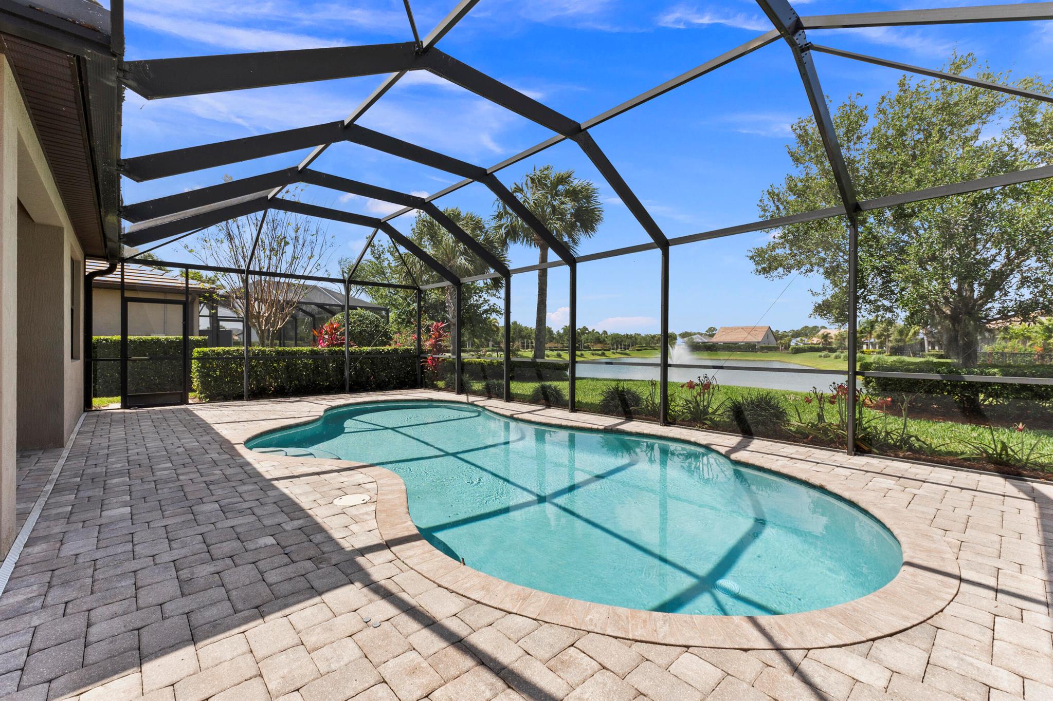 Lakefront CBS 2Bed + office 2Bath 2Car Garage features A&G swimming pool home in Veranda Gardens. New A/C installed August 15th, 2025. Divosta built Abbeyville model Impact Glass windows & sliding glass door to bonus Sunroom & custom large screen enclosed pool with paver patio for entertaining. 36'' Kitchen cabinets with granite counters & Island breakfast bar, Black appliances. Interior options include Open floorplan, Volume ceilings, 20'' Tile Floors throughout, raised panel doors, high hat & pendant lighting. Master Suite with tray ceiling, large walk-in closet. Master bath has granite counters with dual sinks, separate shower & roman tub. Lush landscaping overlooking Lake. Community Clubhouse, Heated Pool, Hot Tub, Gym, tennis, playground. Video youtu.be/UuK5GJR_qQk?si=URUNkxtUtGzDIAR