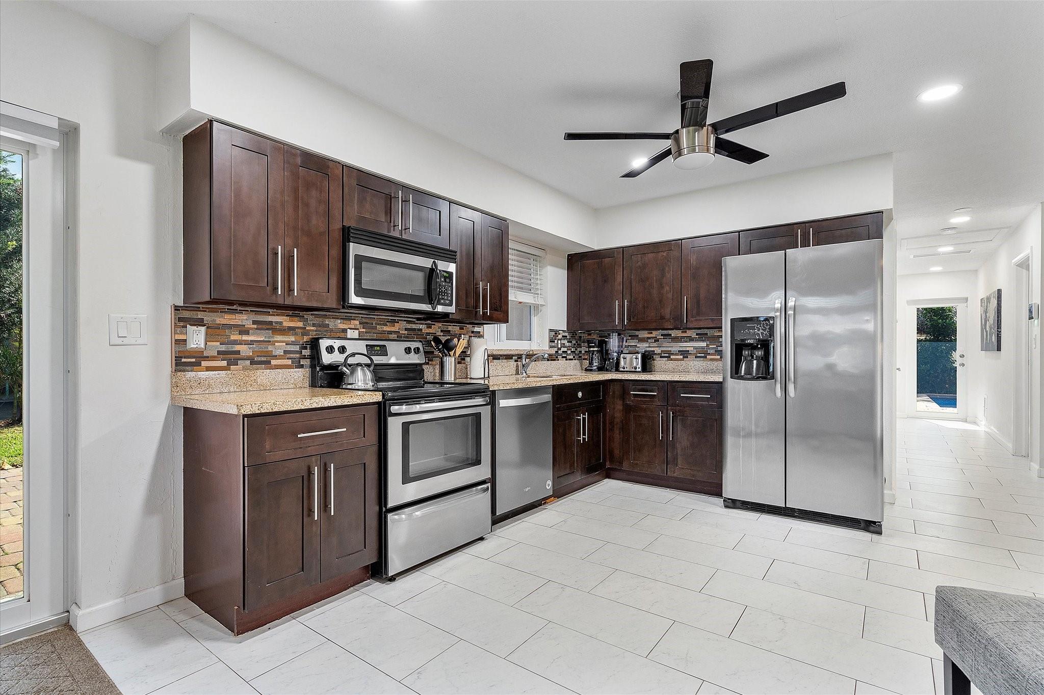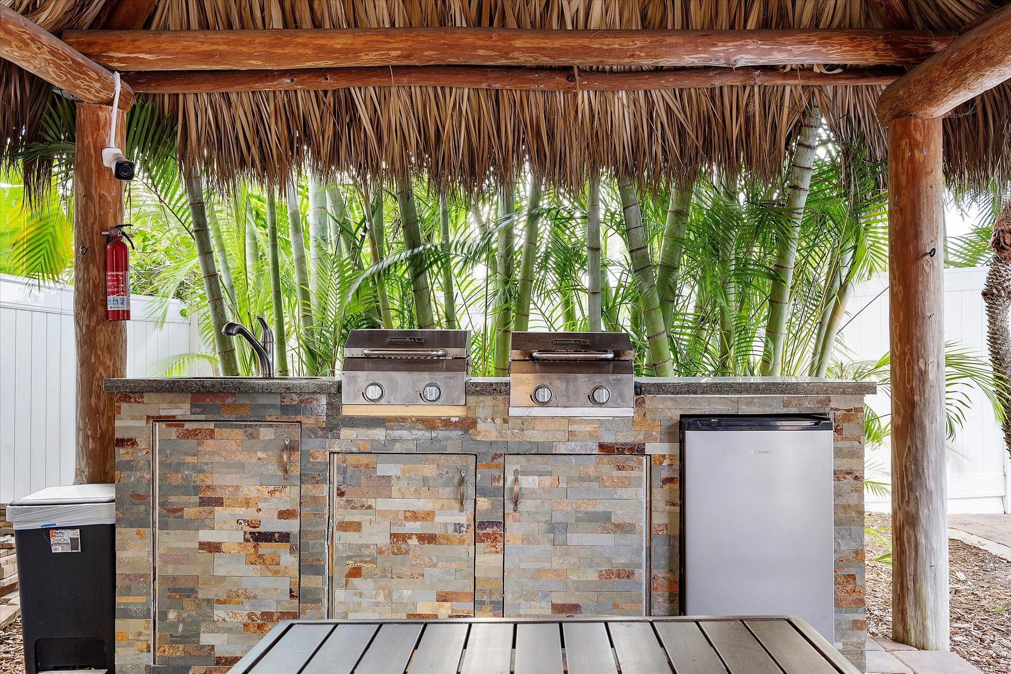 Step into a world of sophistication in this exquisitely furnished upgraded home. Every detail has been meticulously curated from a magnificent Tiki Hut with outdoor kitchen, TV, Audio and beautiful heated salt water pool w fully fenced backyard, serene lighting for entertainment w optimal privacy. Beautifully renovated with furniture included in this magical 3/2 home w spacious mast bedrm, dbl sliding doors facing the pool, open kitchen/living area concept w view of the pool and backyard, tile throughout home. Separate utility rm with upgraded appliances. High Impact tented windows and doors. This home offers unparrelled luxury, peace of mind w fully installed cameras, motion detectors and video for 24/7 surveillance. A truly entertainers home for one's dream vacation or family living.