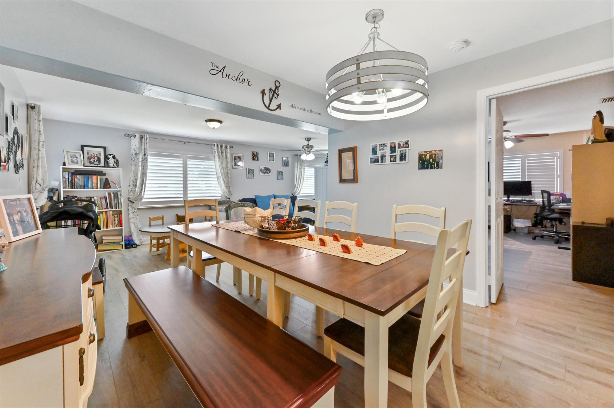 Welcome to this beautifully updated 3-bedroom, 2-bathroom home that combines comfort, style, and peace of mind. Situated in a desirable neighborhood, this home boasts a range of recent upgrades that make it truly exceptional. Key Features: Hurricane-Ready: Equipped with impact-resistant hurricane windows and doors (2018) and wind mitigation toenail straps for added protection during storm season. New A/C (2023): Enjoy year-round comfort with a recently installed energy-efficient air conditioning system. Updated Kitchen (2023): The newly remodeled kitchen features modern appliances, including a brand-new electric smart stove (2022) and a new refrigerator (2018), perfect for the home chef. Beautiful Flooring: The entire home was outfitted with new flooring in 2021, creating a fresh and