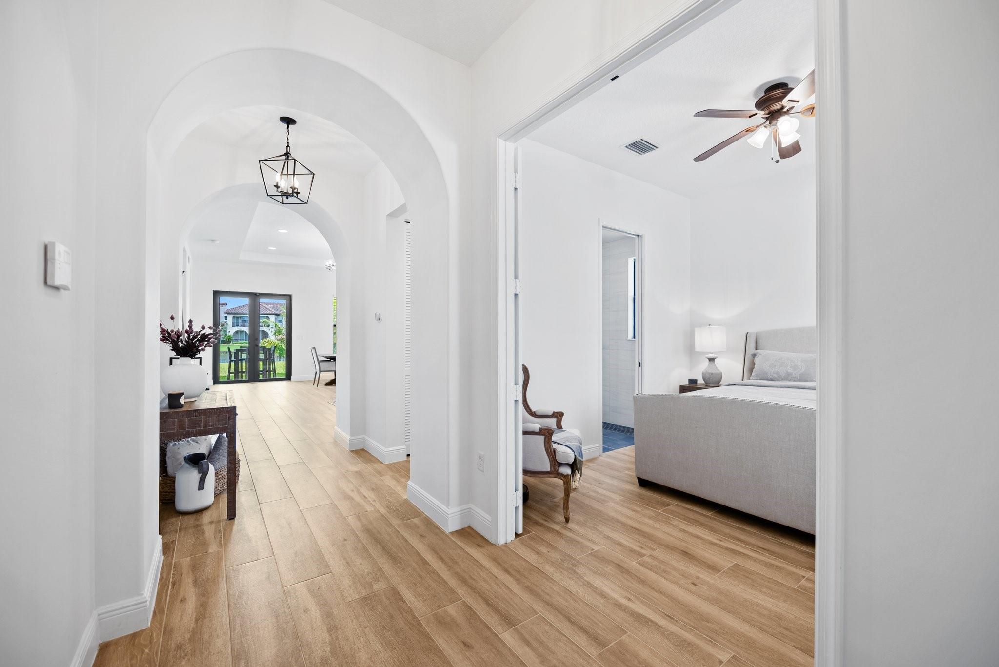 Rarely available private waterfront two story Estate home in the most Exclusive & Desired Guard Gated community Monterra overlooks a serene lake where you can enjoy extra privacy and tranquility all day long. This bright Montecito model features an open floorplan with sweeping 11 FT ceilings, a formal entry living & dining room, Guest Suite, brand new Chef's Kitchen & Family room on the first floor. Huge Owner's Suite with custom walk-in closets, generous sized bedrooms & convenient laundry room upstairs. Refer to feature list for $100k upgrades. Resort style amenities including 10,000 sq FT Clubhouse w/pool, walking trails, tennis, basketball courts, fitness centre, playgrounds, dog parks etc. HOA's only $175/year. Best Public schools (A+) in County.
