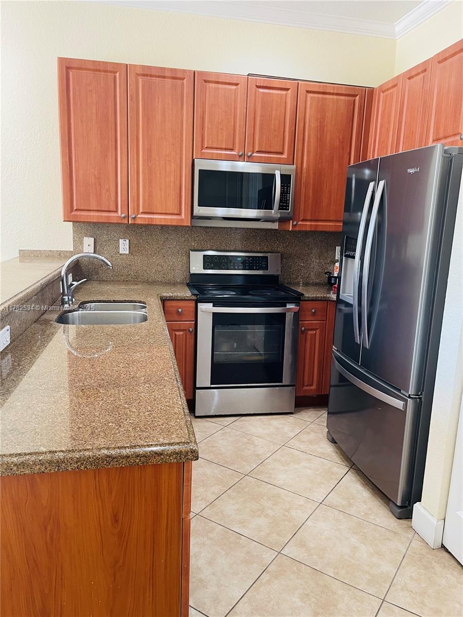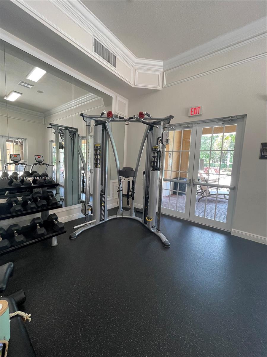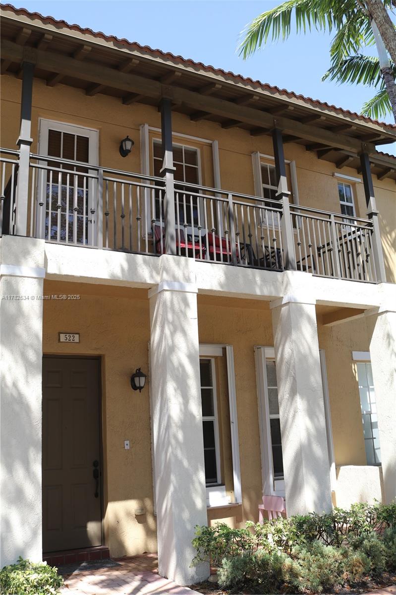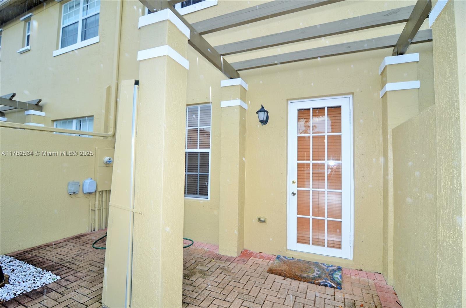 Don’t miss this incredible opportunity! This beautifully maintained 2-bedroom, 2.5-bathroom townhouse is located in the highly desirable Cobblestone community. Featuring tile and wood flooring throughout, this home offers both front and patio access, filled with natural light. The spacious bedrooms include a master suite with walk-in closet and balcony , while elegant crown moldings enhance its charm. The kitchen is beautifully designed with stainless steel appliances, granite countertops, and ample cabinetry. Plus, the home has been upgraded with hurricane shutters. Two Parking spaces. HOA covers basic cable, internet, roofs and much more. Enjoy resort-style amenities: 24/7 gated security, pool, gym, clubhouse, play areas. Close to I-75, Costco, Whole Foods and many restaurants.