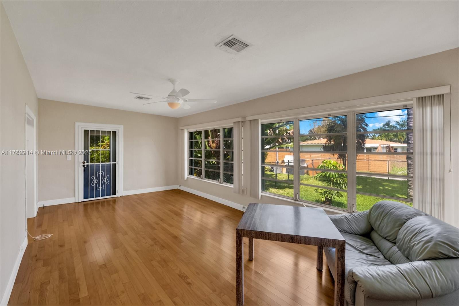 3 bedrooms and 2 full baths on a quiet street in Miami Shores. 10,200 sq ft lot with room for a pool, expansion, or both. Attached is one car carport and storage room. Wood floors, high ceilings, open floor plan. Big Florida room overlooking the yard. Great price for Miami Shores.