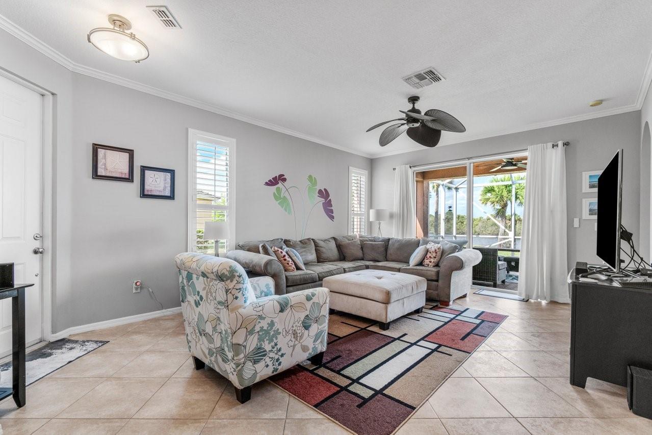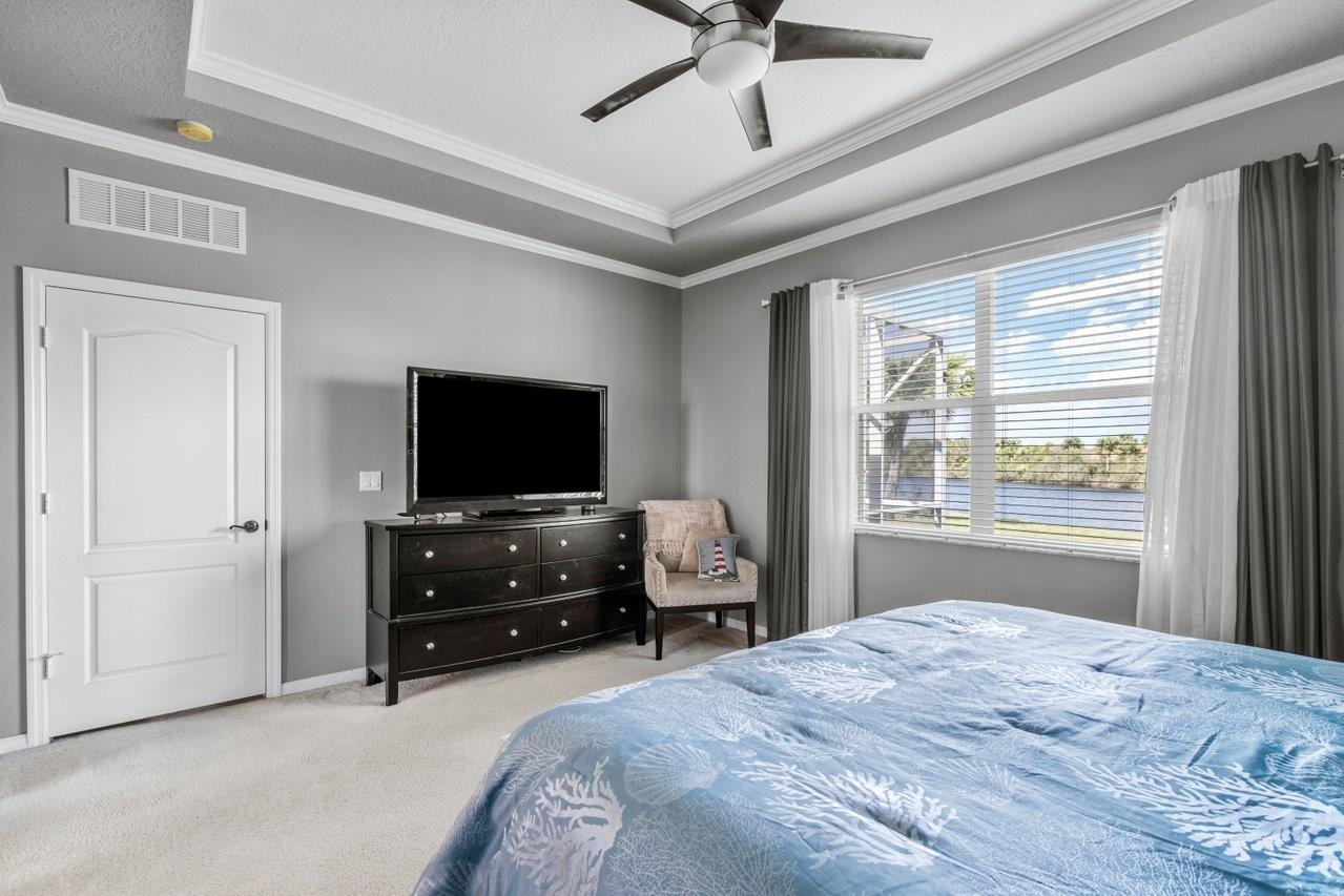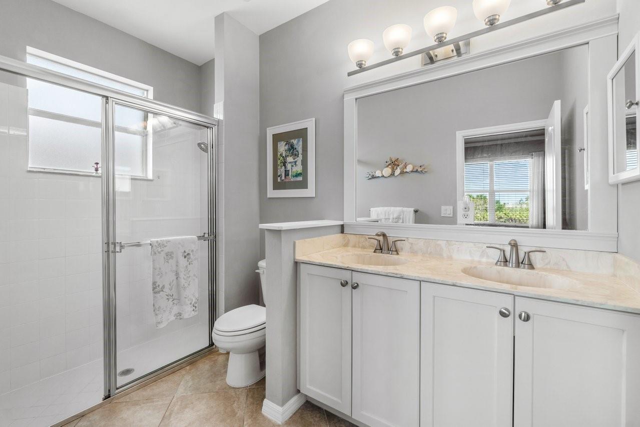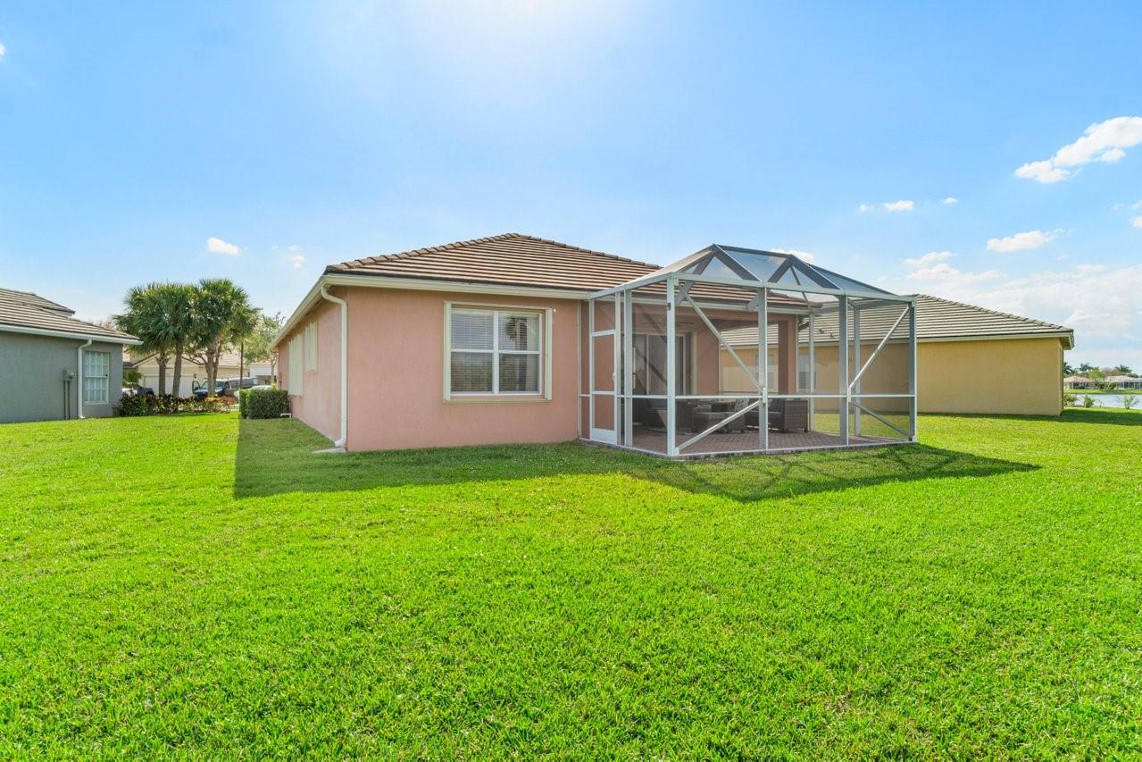 Welcome to the" Twins Waters Preserve" Heritage Oaks 3bed 2bath home nestled in the much sought after guard-gated Tradition. First floor entry leads to a spacious living room overlooking tranquil waters and unblocked preserve. With enough room for a pool the backyard can be enjoyed from the spacious screened in oversized patio. Granite counter tops and a breakfast nook complements a kitchen full of storage space and a separate laundry room. The spacious master bedroom overlooks the water and preserve has a walk-in closet and a double sink bathroom. Plantation shutters through out. Low HOA includes lawn maintenance, pest control, basic cable, high speed internet, a pool, fitness center and a fully kitchen gathering lounge completes this all ages, pet friendly community.