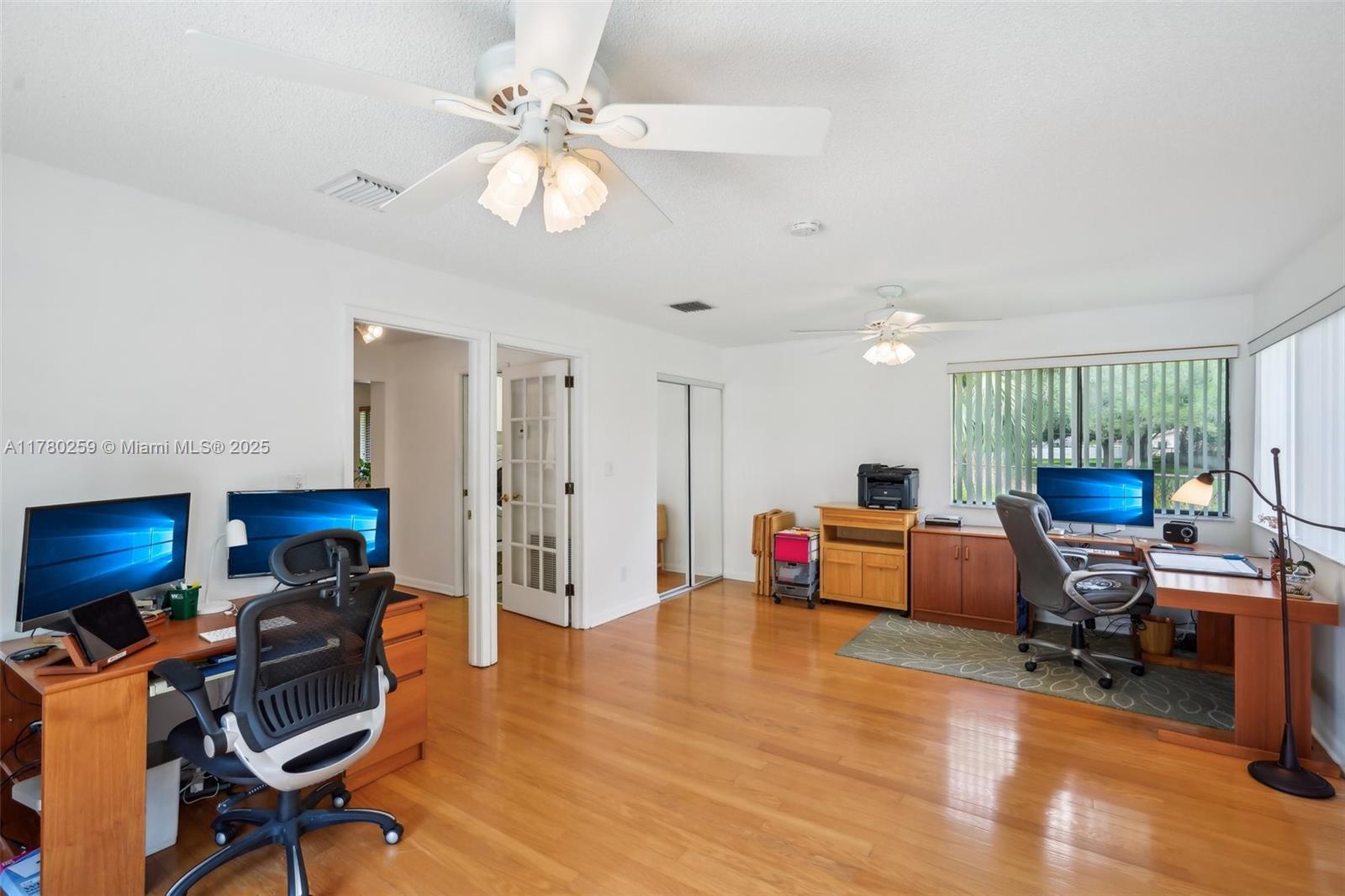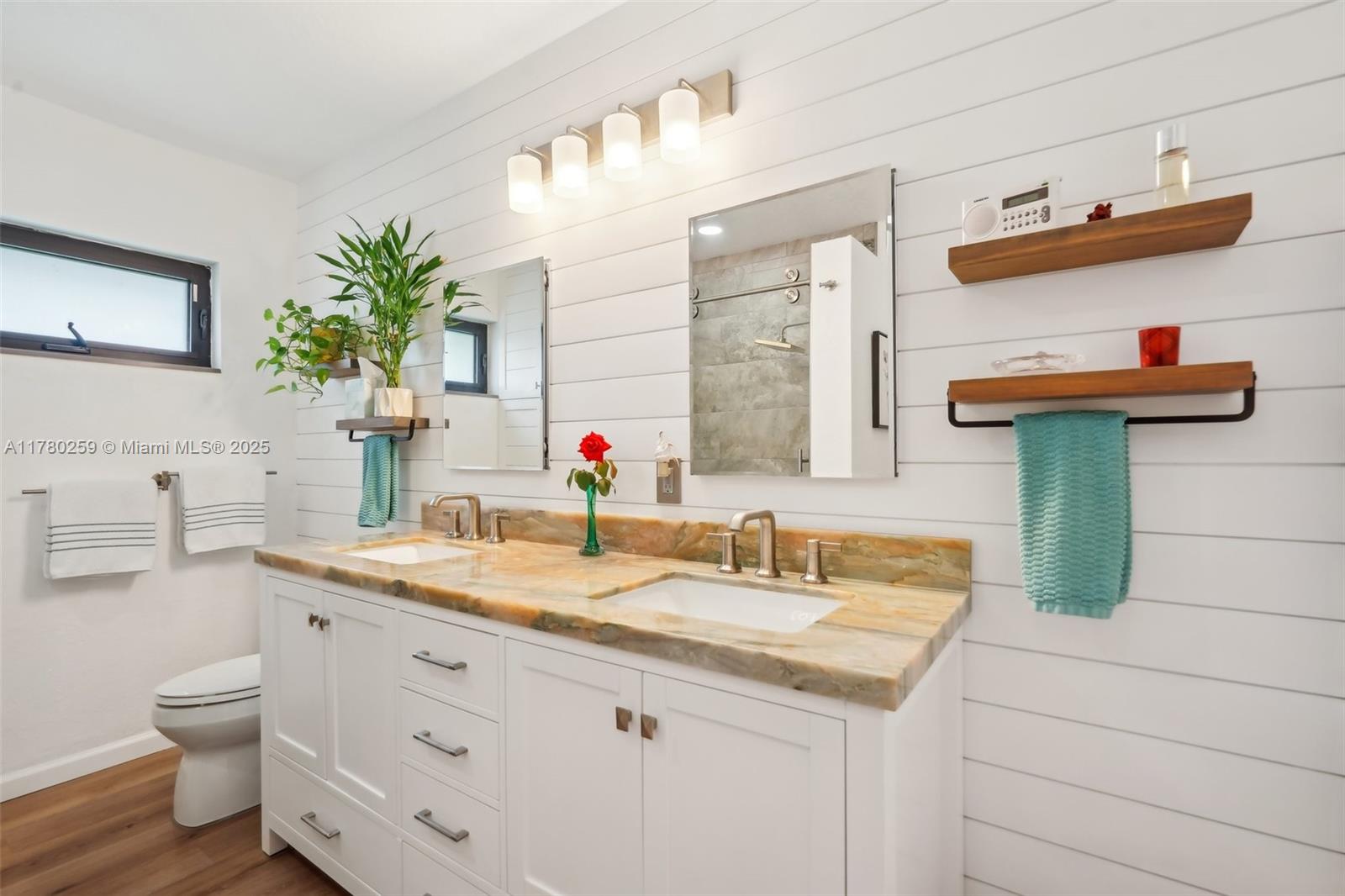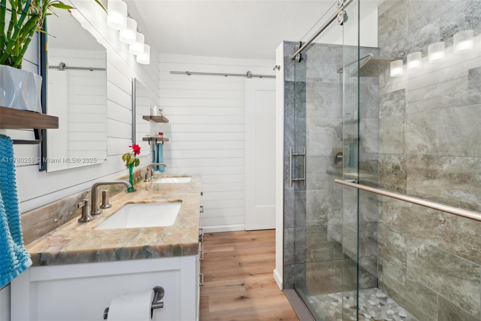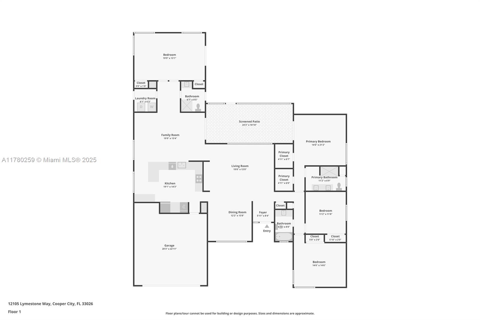 This lovely 4-bed, 3-bath pool home is located on a 1/3 acre lot in a quiet cul-de-sac in the desirable Rock Creek community. The ROOF WAS REPLACED IN MARCH 2025, and the home has IMPACT WINDOWS throughout except three windows which have panels. Inside, the updated kitchen features wood shaker cabinets, granite countertops with seating and an open layout that flows into the family room. The primary bedroom offers 2 walk-in closets & a remodeled, modern bathroom. The backyard is an entertainer's paradise with an enclosed patio, large pool, lighting, shower and privacy provided by a greenbelt area behind the property. The addition of the fourth bedroom (21x13) and bathroom offers the perfect opportunity to create a private mother-in-law suite or split the room into 2 bedrooms with ease.