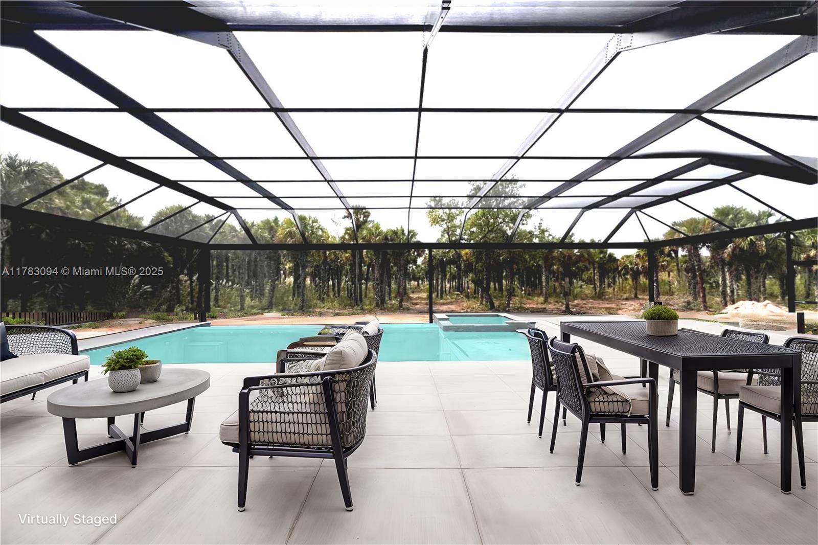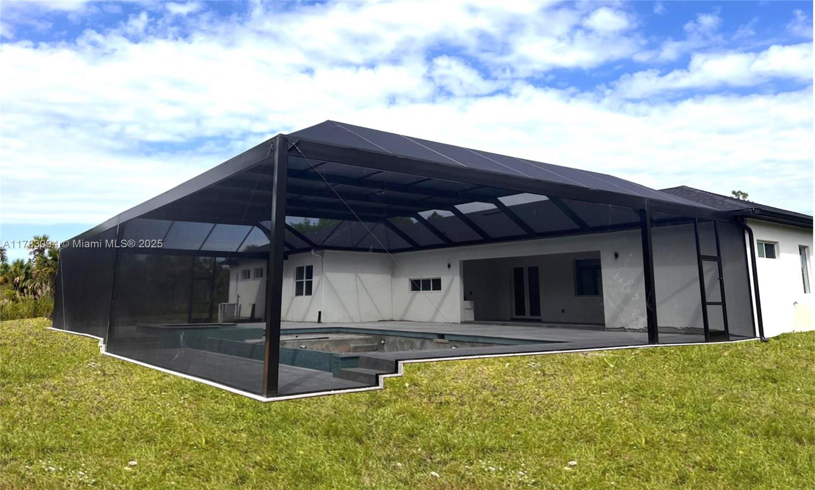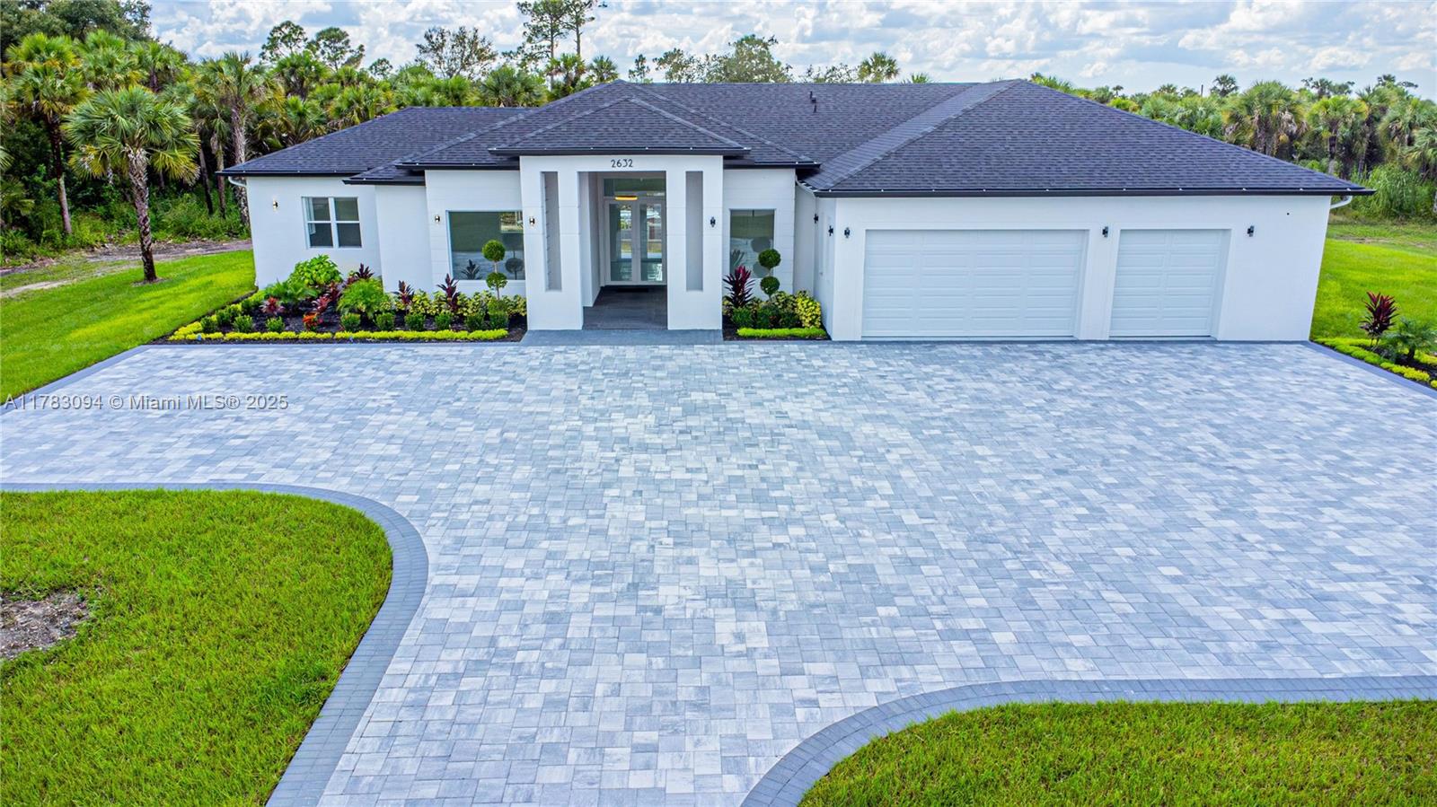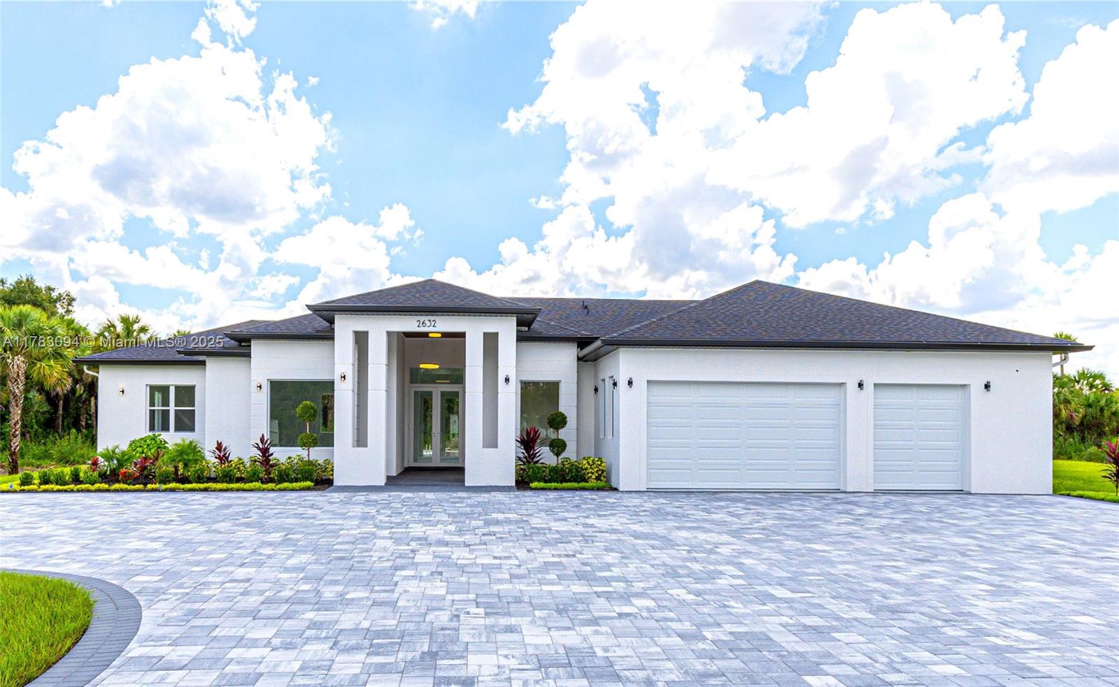 This impressive NEW property in Golden Gate Estates, Naples Florida, Total 4,073 sq.ft. Living 2,924 sq.ft. on a 2.73-acre lot, offering a finest lifestyle connected to nature. Foyer, Den, Wardrobe, Powder, European Kitchen, oven tower, pantry, wine cooler and central island. Family room, guest room and two suites with private bathrooms. Master bedroom, two walk-in closets, luxurious bathroom, double vanities, 2 showers and freestanding tub. Covered POOL with a GREAT CAGE enclosure and lanai. Laundry room, a 3-car garage with an electric car outlet, low-voltage, efficient linear diffusers, and a reverse osmosis water system. No HOA restrictions and the potential to build a guest house or secondary structure. A unique property promising long-term value appreciation. Visit to experience you!
