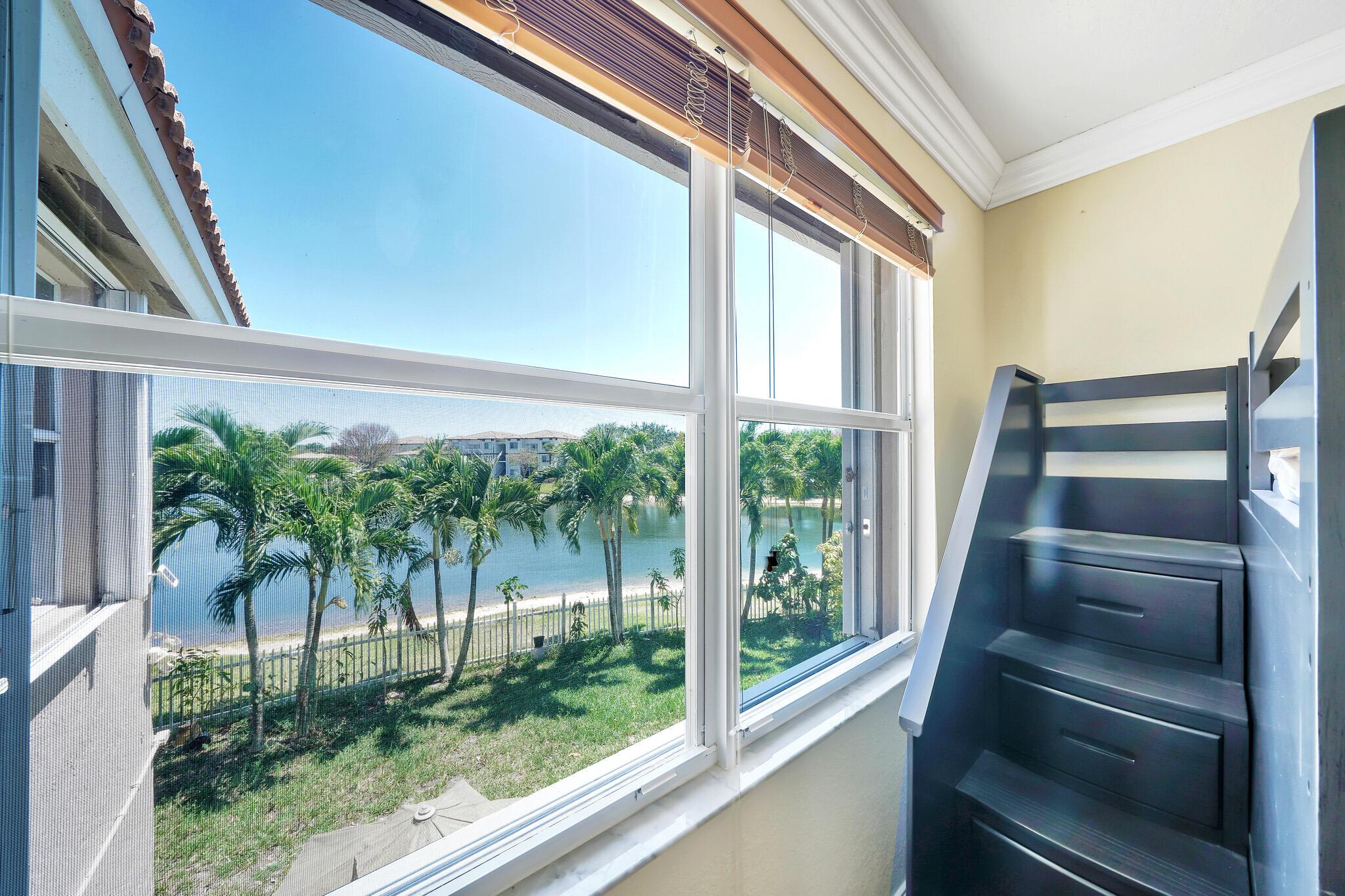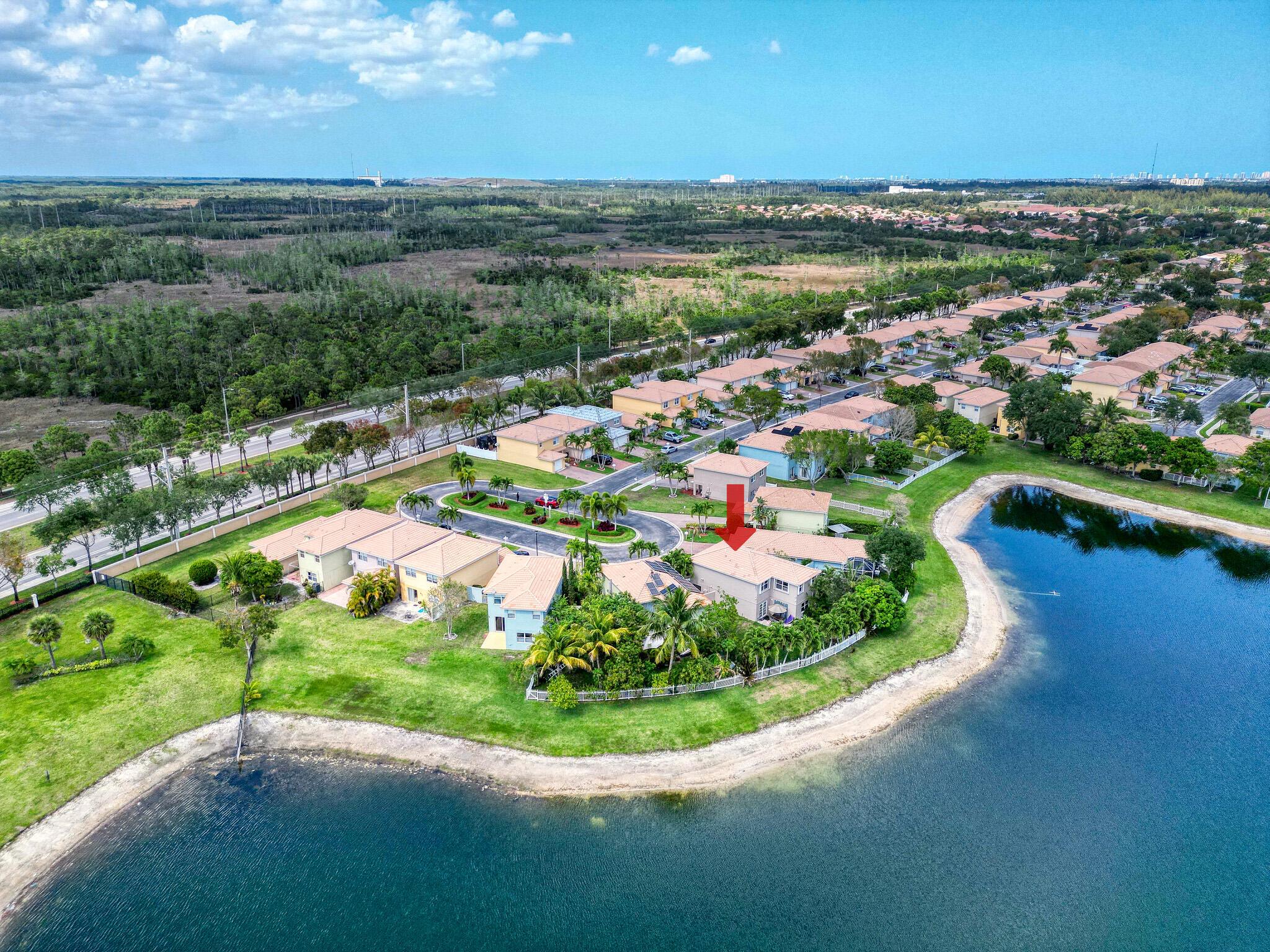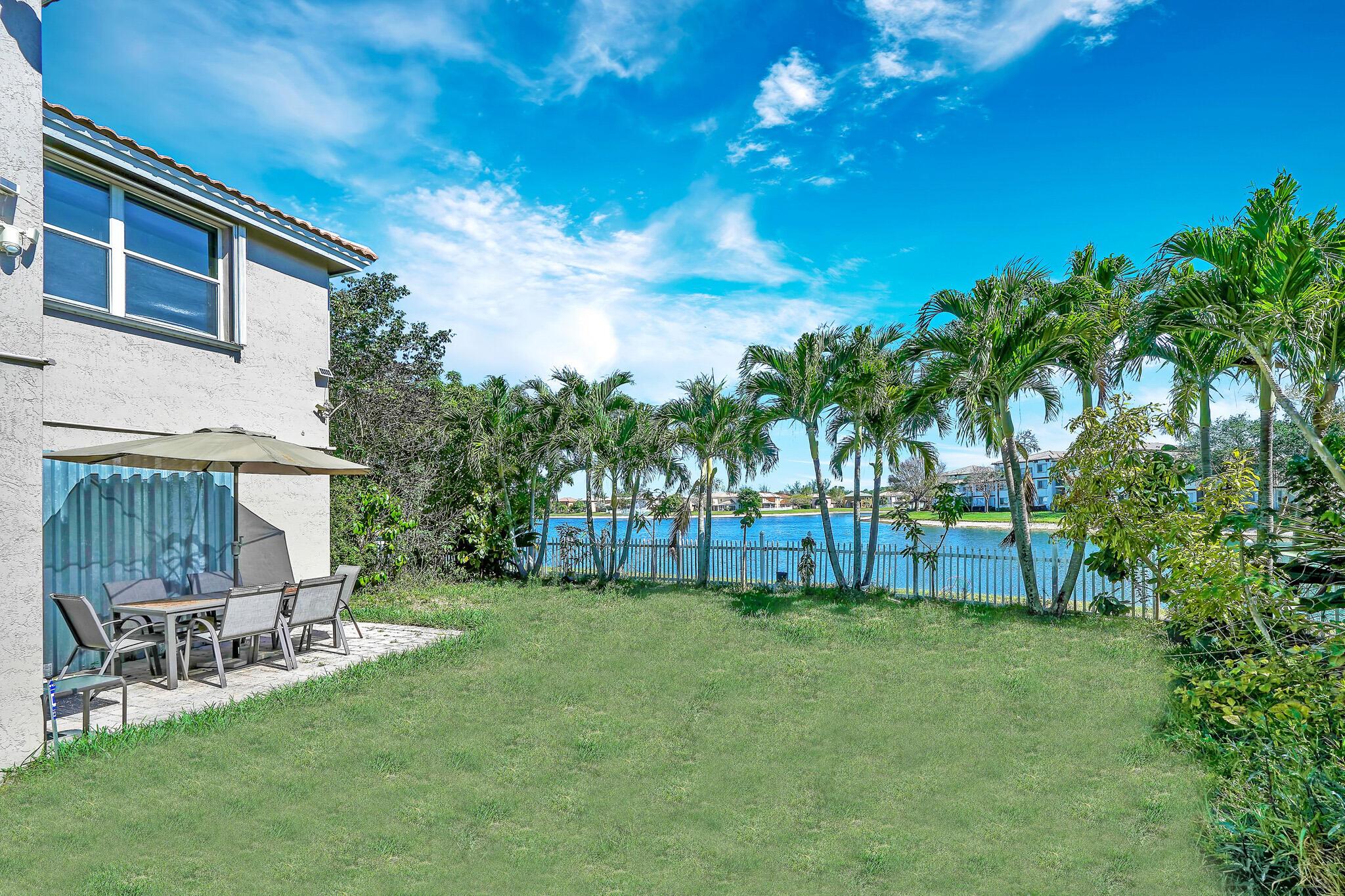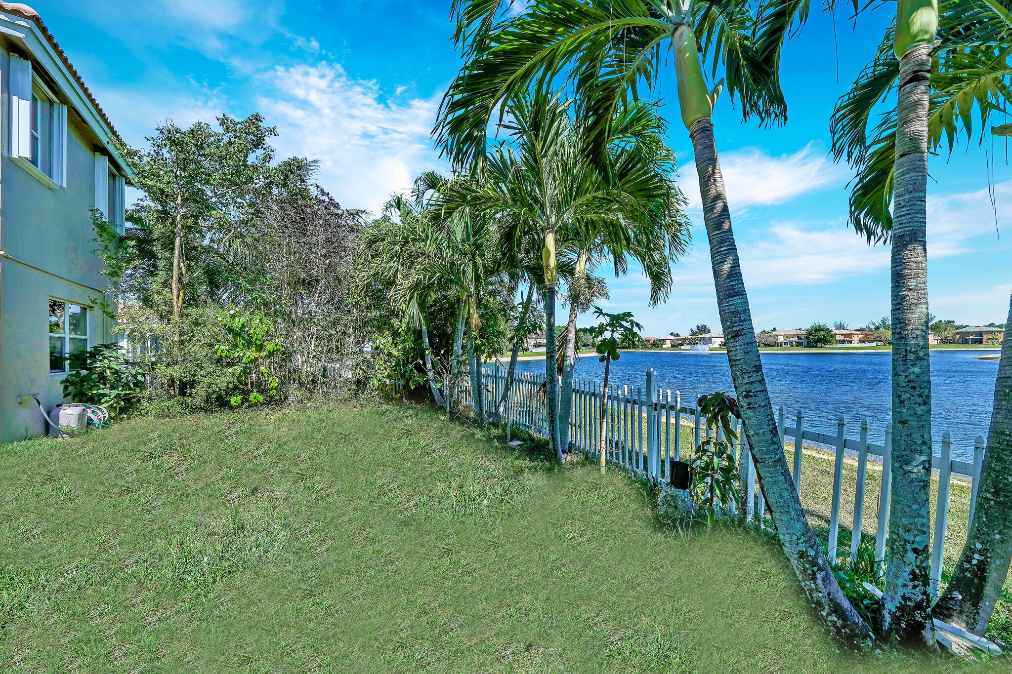 Beautiful lakeside home with large backyard off a private cul-de-sac. Fully fenced for privacy to enjoy the spacious grounds and tranquil lake! Lucious palm trees add to the tropical paradise, while the delicious fruit trees add flavor that include avocado, banana, mango, and more! 3 Bedrooms plus an upstairs loft, 2.5 bathrooms, and a 2-car garage. Rich laminate flooring upstairs and downstairs with tiled bathrooms. The large loft provides the perfect blend of functionality and entertainment options for a productive home office or thrilling home theater! Feel the inviting cool natural breezes in the 2nd floor master bedroom, while you enjoy the panoramic views of the lake! The walk-in closet makes organization and access a dream!