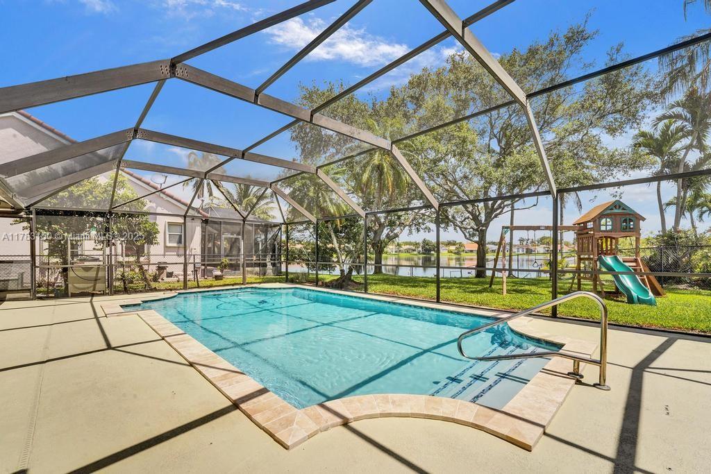 Welcome to your dream home in the highly desirable Forest Ridge Community in Davie! This stunning 3-bedroom, 2-bathroom pool home sits on an oversized lakefront lot offering breathtaking views & serene living in one of Davie’s most sought-after neighborhoods. Step inside to find vaulted ceilings, spacious open-concept living & dining area & beautiful tile flooring throughout. The gourmet kitchen is a chef’s delight with double ovens, ample storage, & clear views of the lake. Enjoy tranquil water views from the family room, kitchen & primary suite—a perfect backdrop for everyday living. The expansive master suite features walk-in closets & a spa-like ensuite bath. Step outside to your private backyard oasis with a sparkling pool & unobstructed lake views! **NO POLLY PIPES** POOL REDONE**